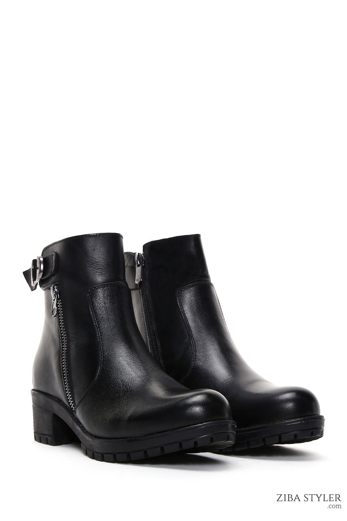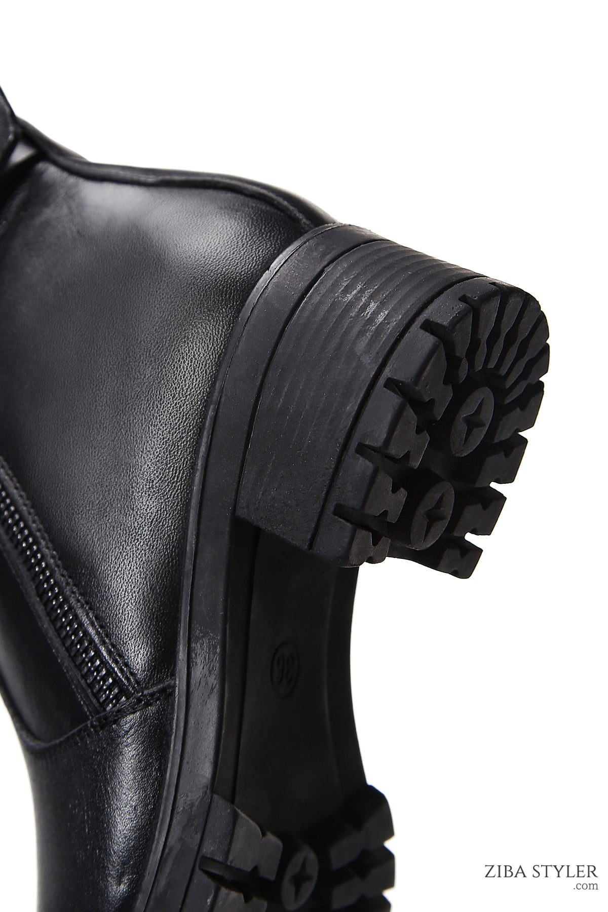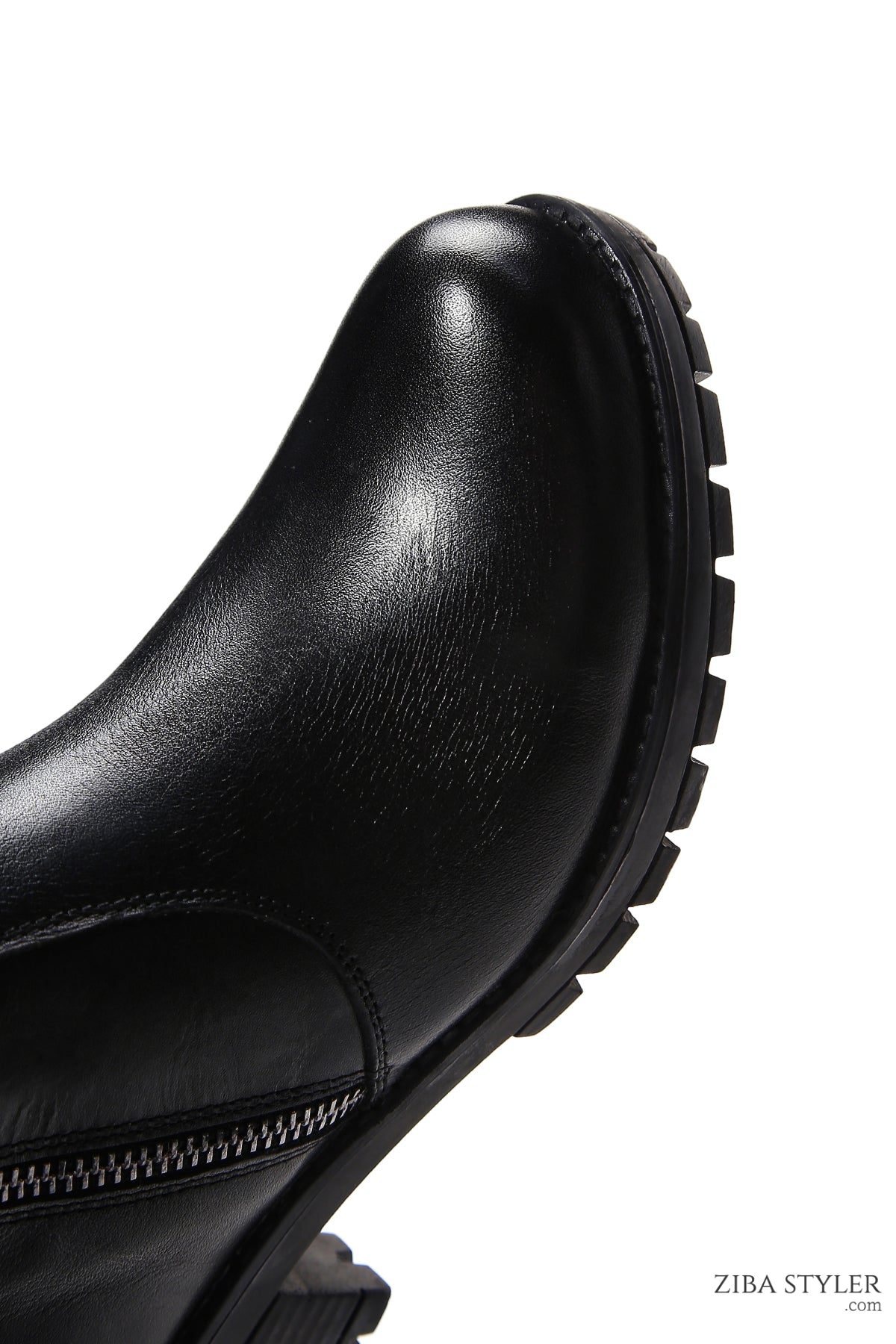 بوت زنانه چرمی مشکی زیپ دار کژوال دری مد