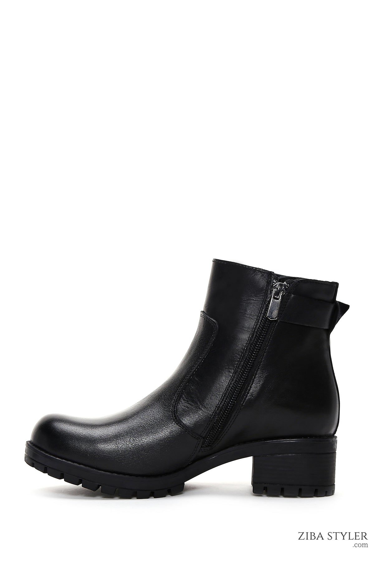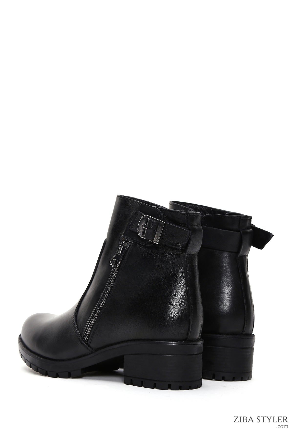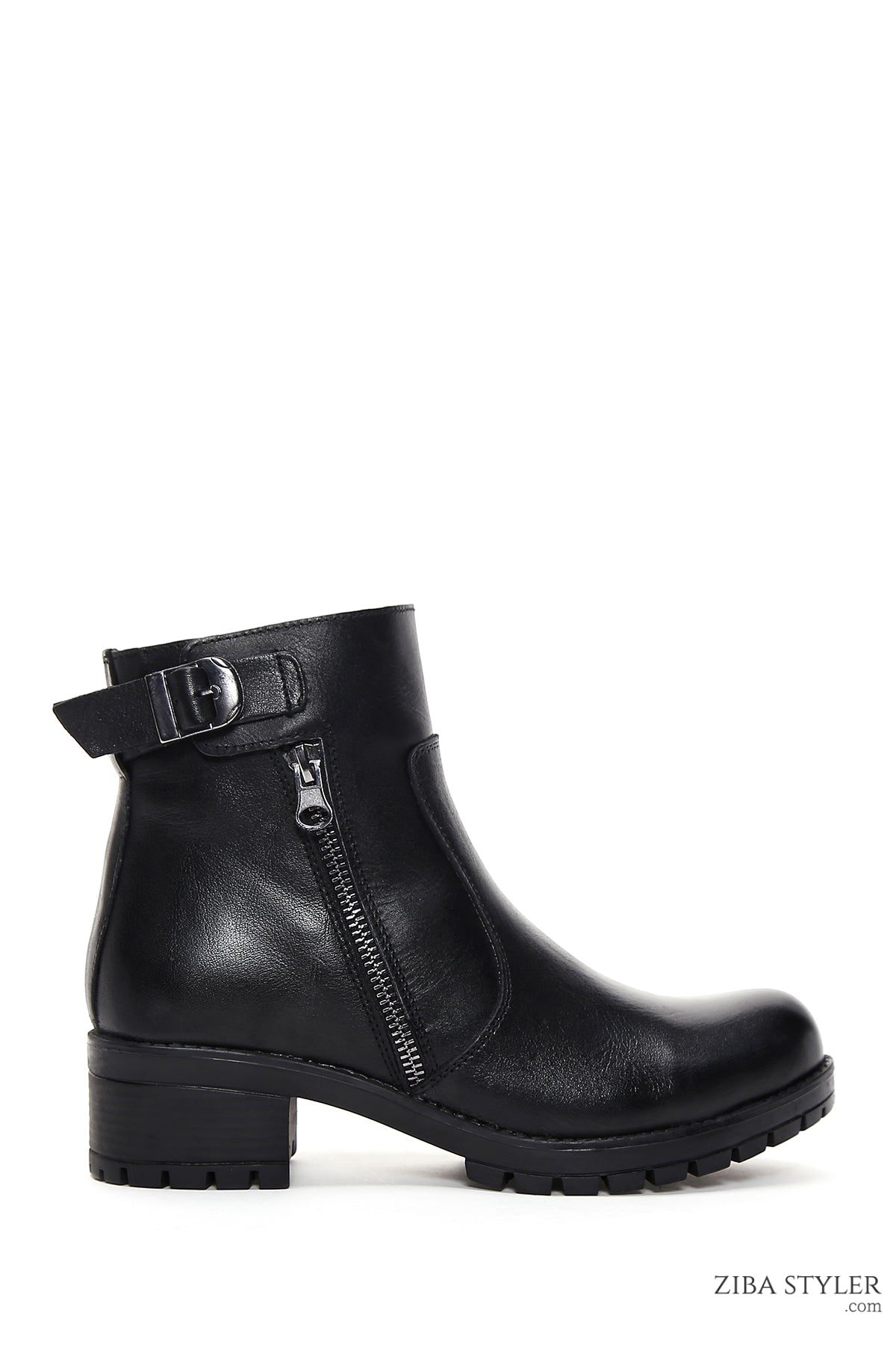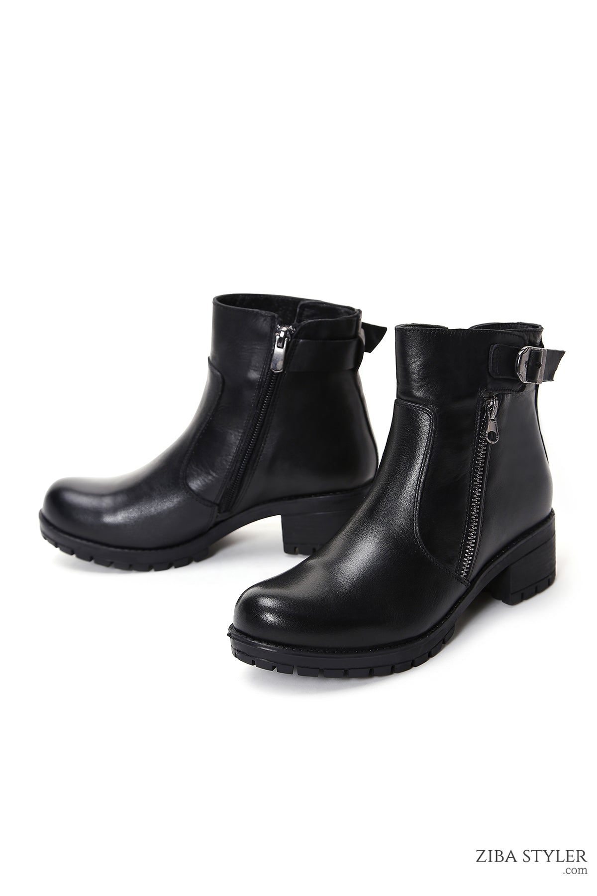 بوت زنانه چرمی مشکی زیپ دار کژوال دری مد