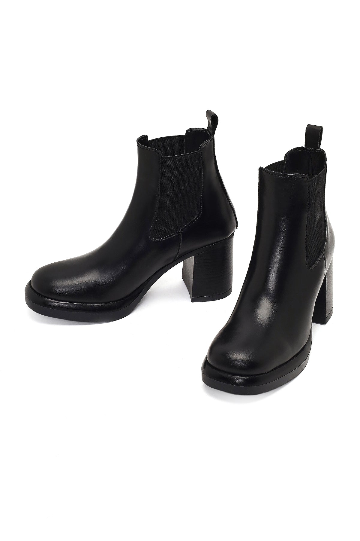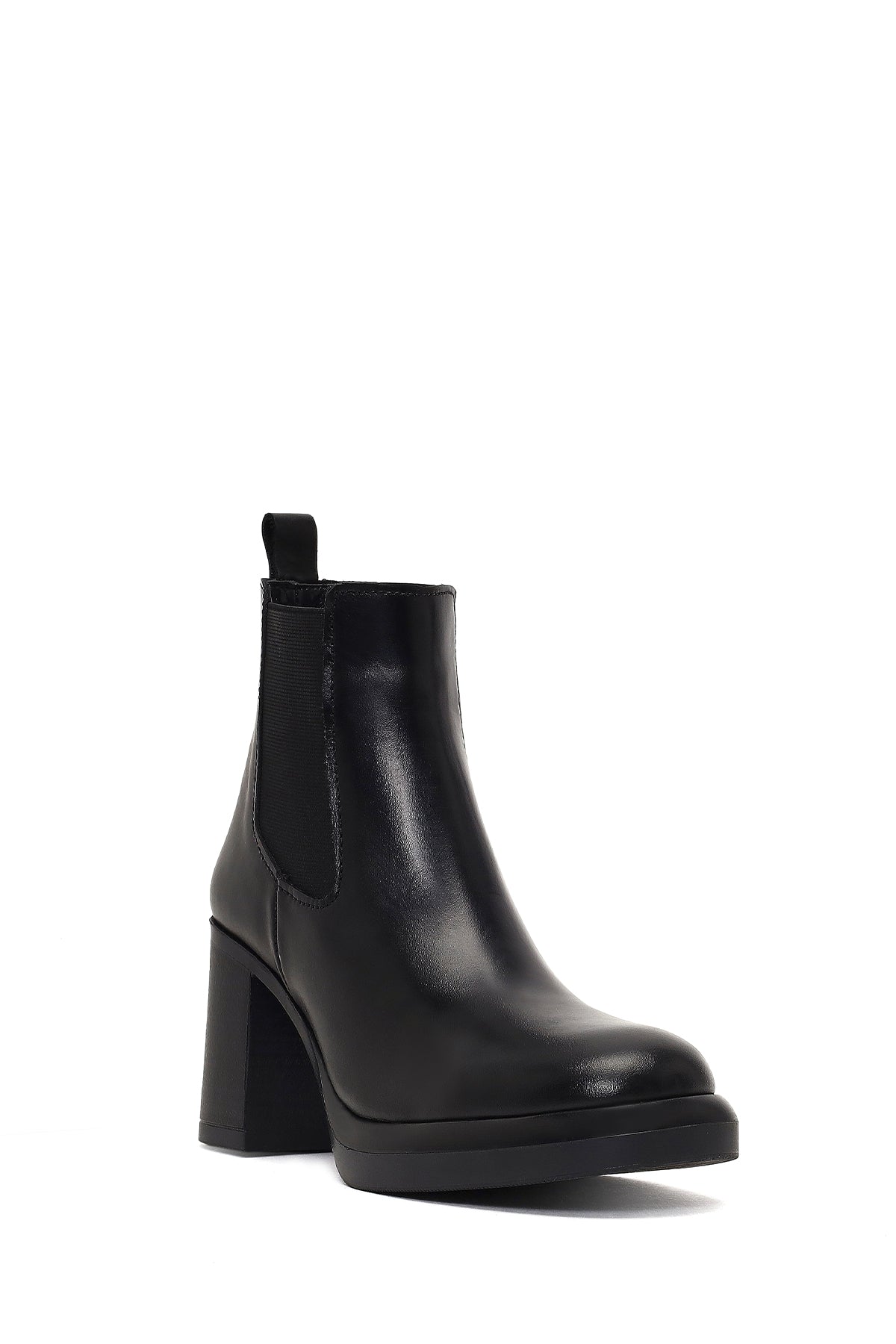 Kadın Siyah Kalın Topuklu Deri Chelsea Bot