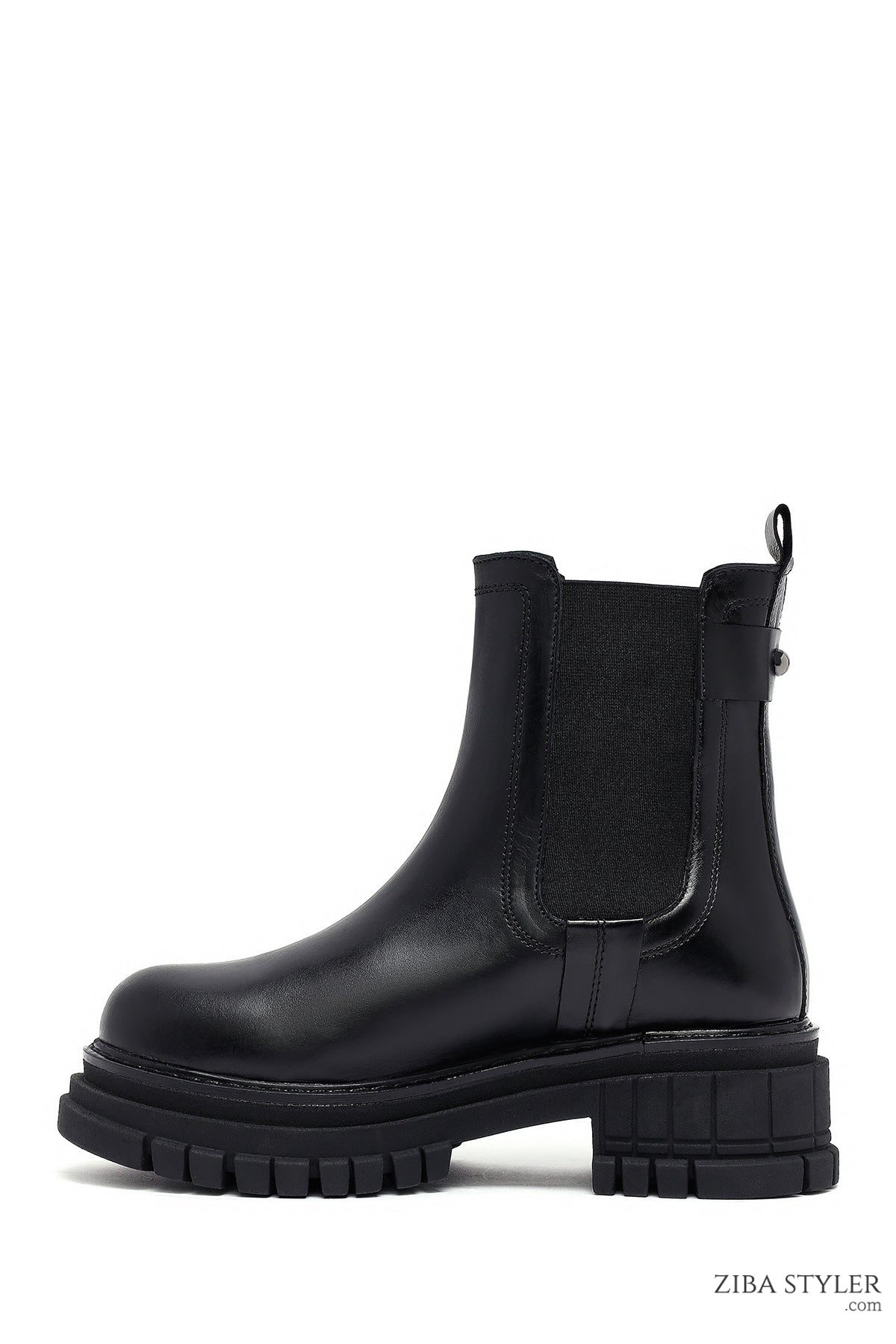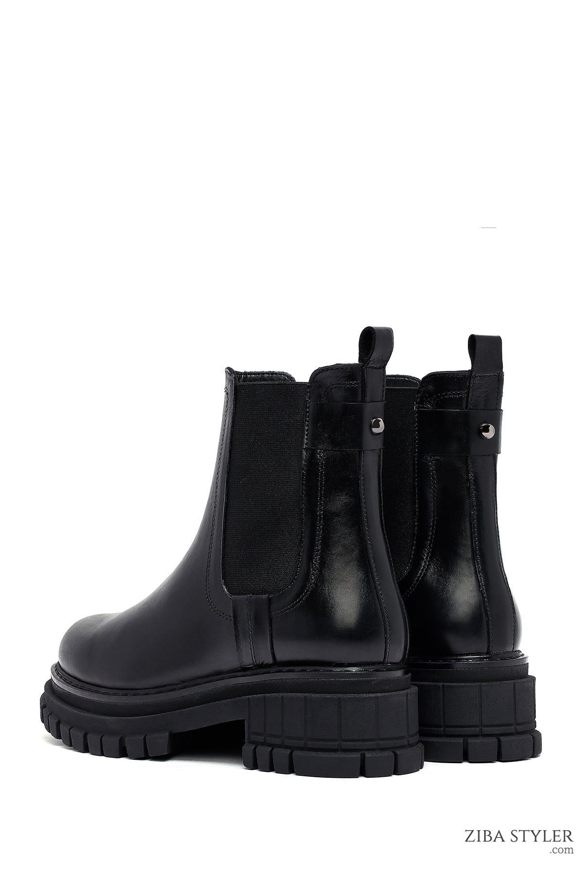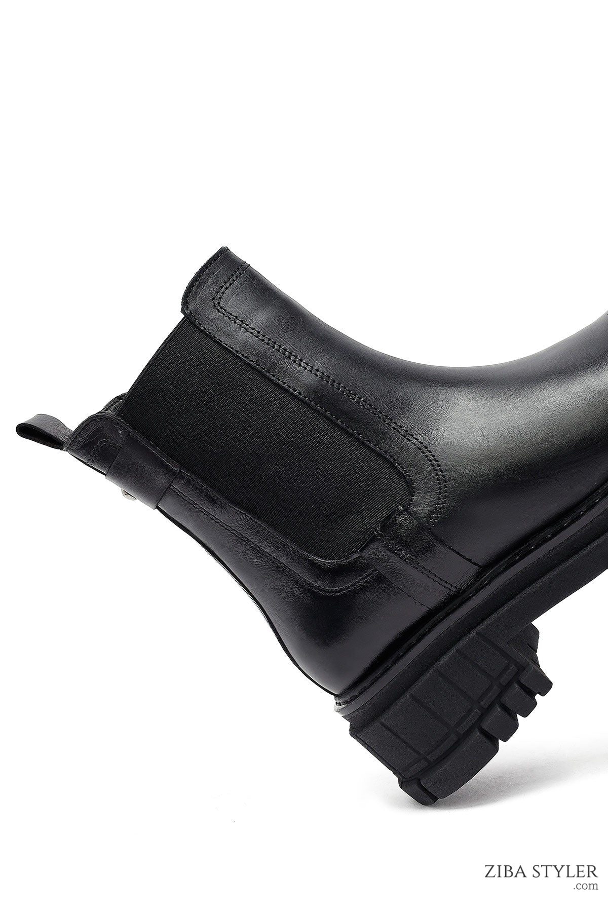 بوت چلسی زنانه چرمی مشکی زیرهضخیم دری مد