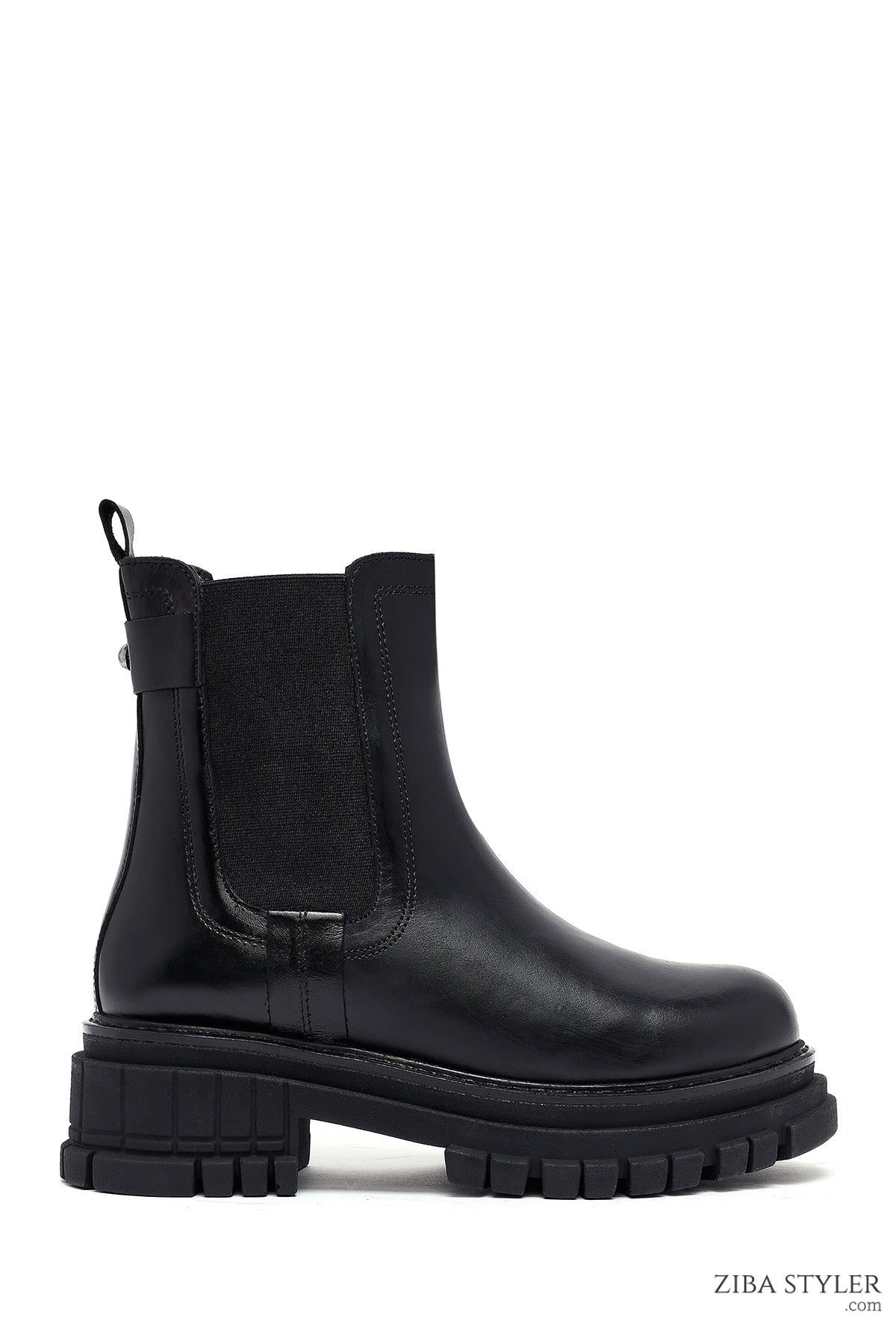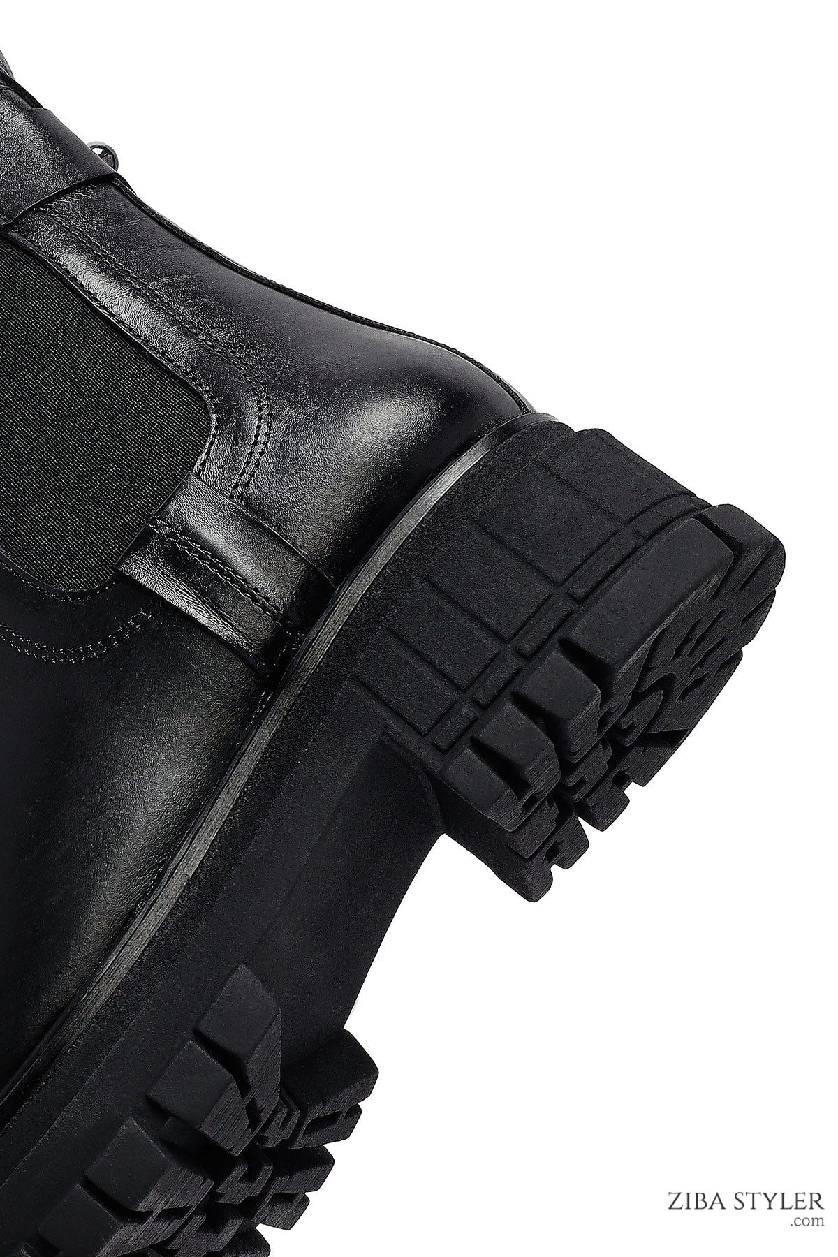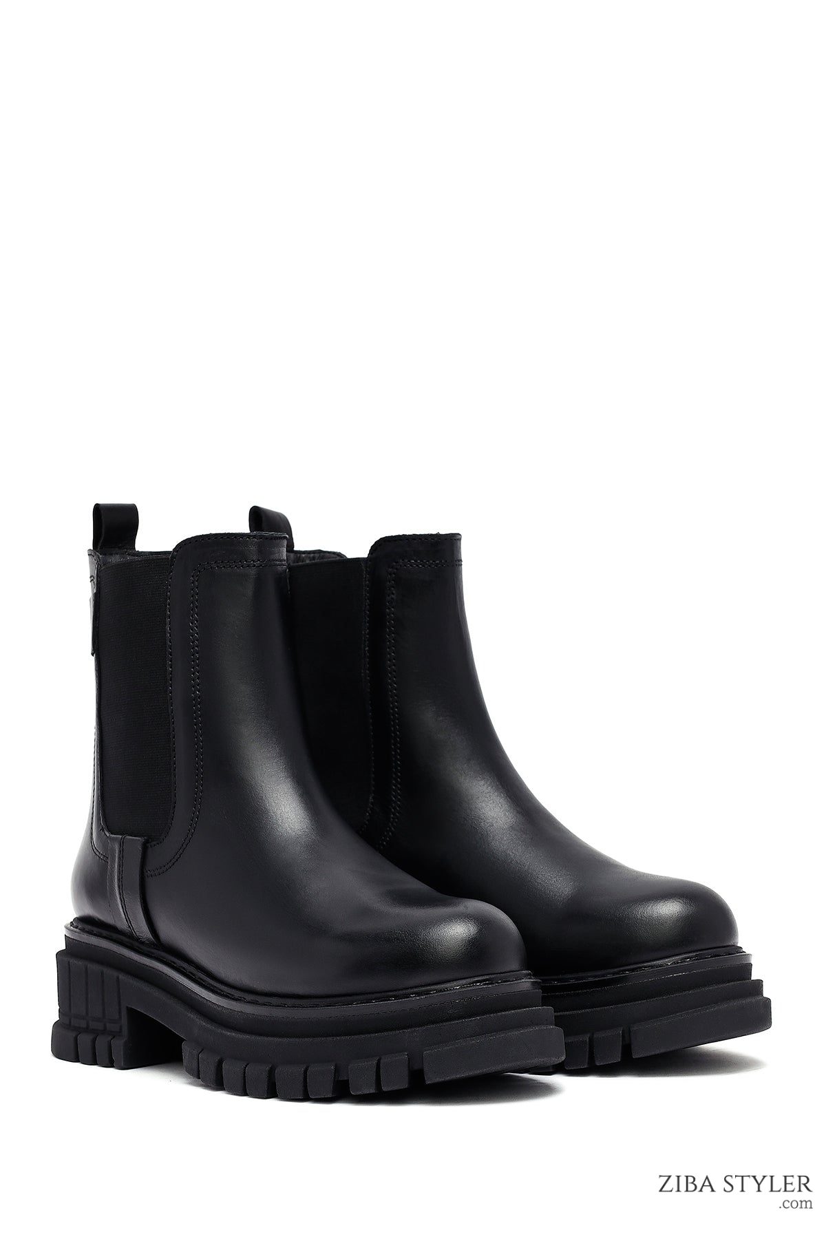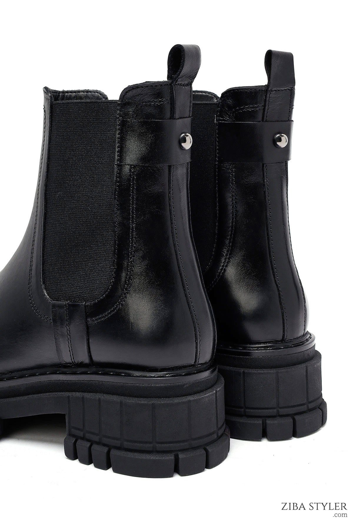 بوت چلسی زنانه چرمی مشکی زیرهضخیم دری مد