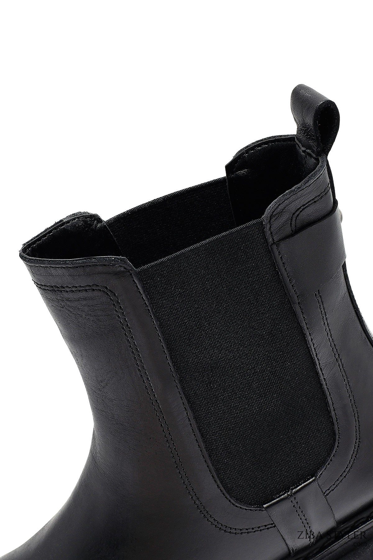 Kadın Siyah Kalın Tabanlı Deri Chelsea Bot