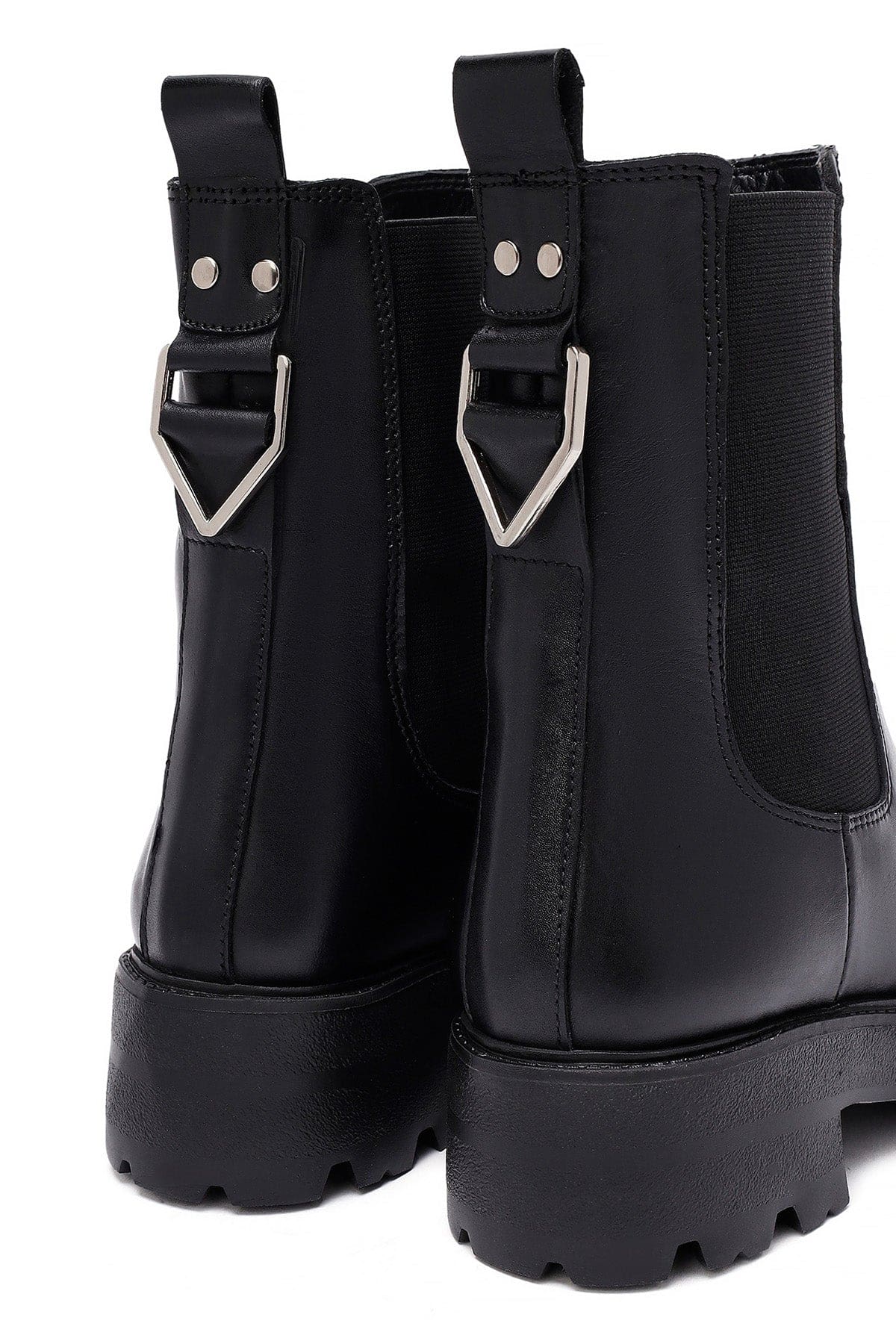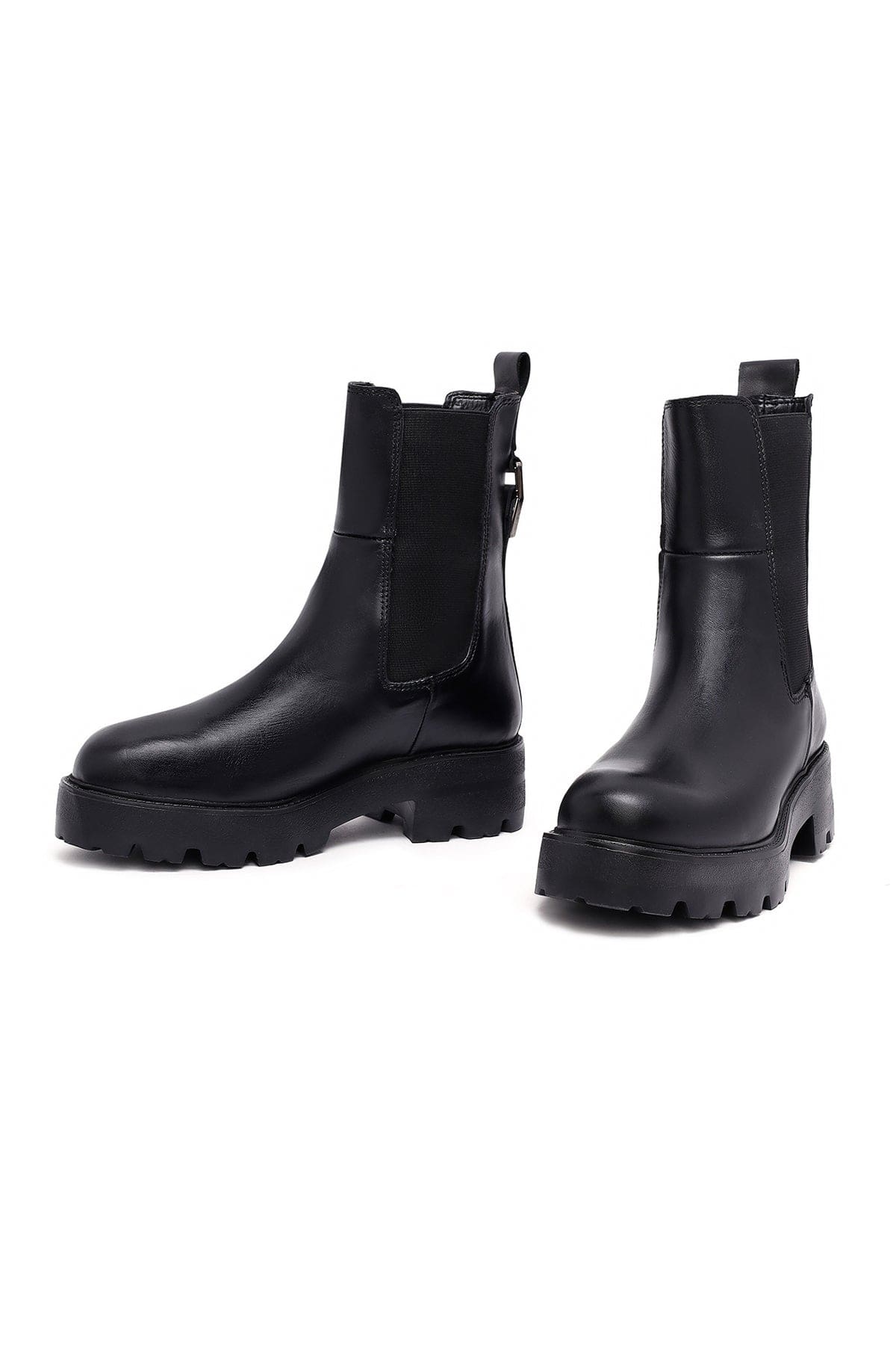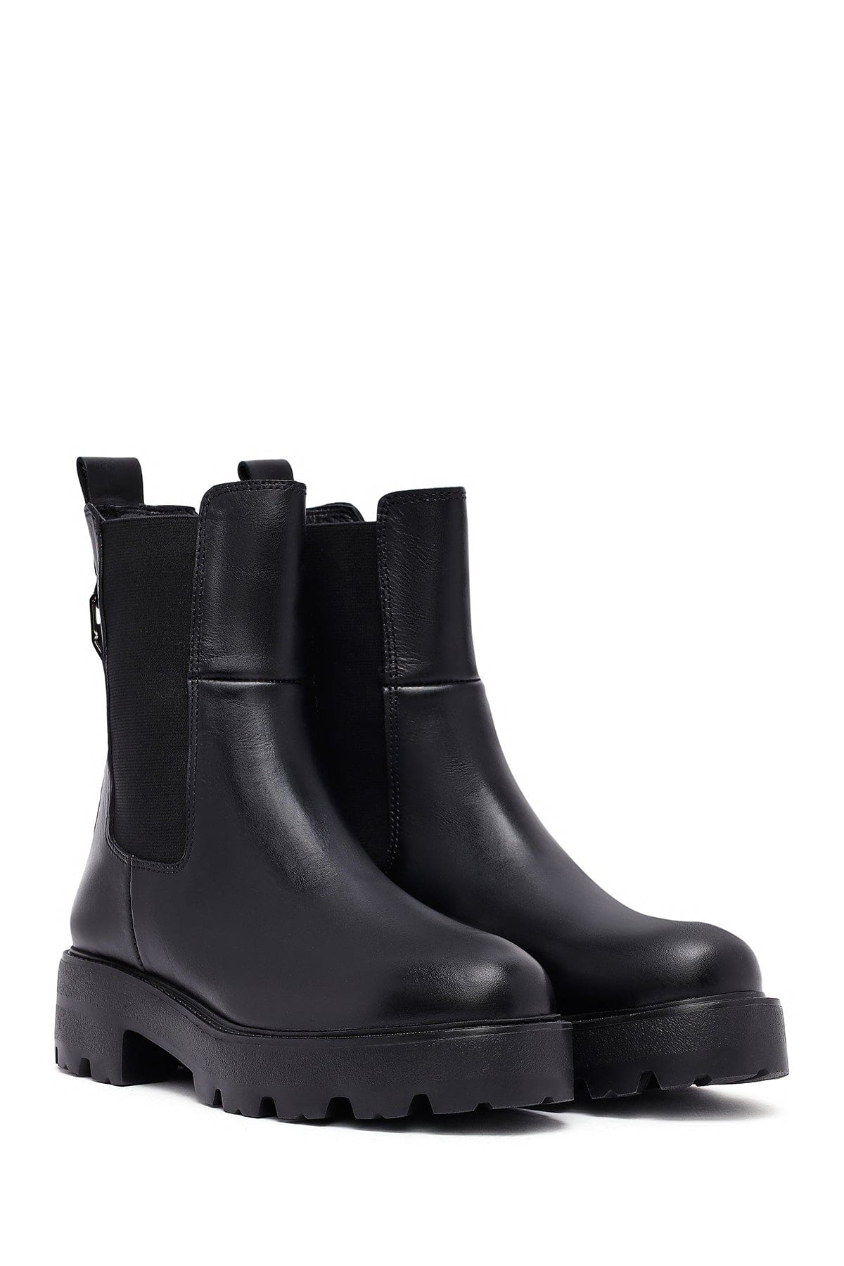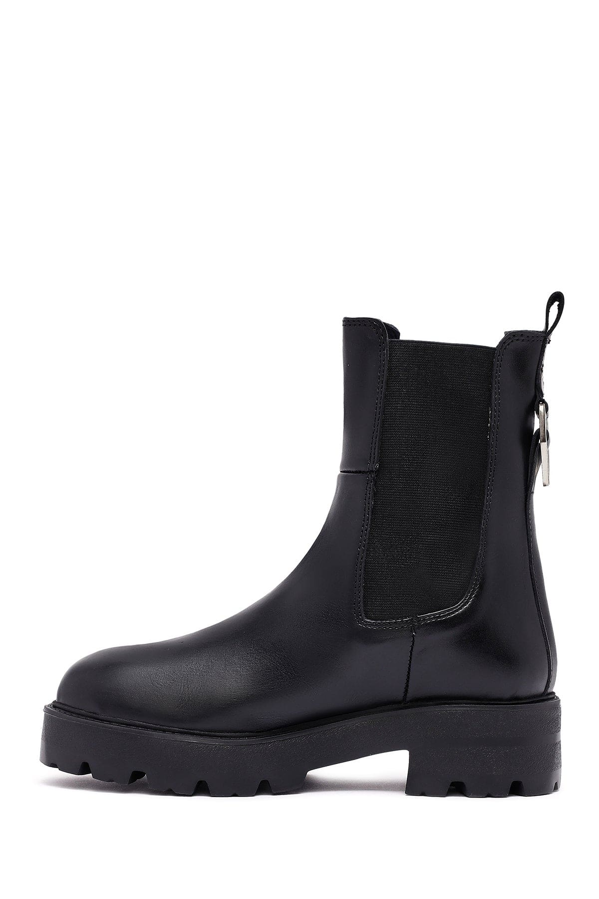 Kadın Siyah Kalın Tabanlı Deri Chelsea Bot