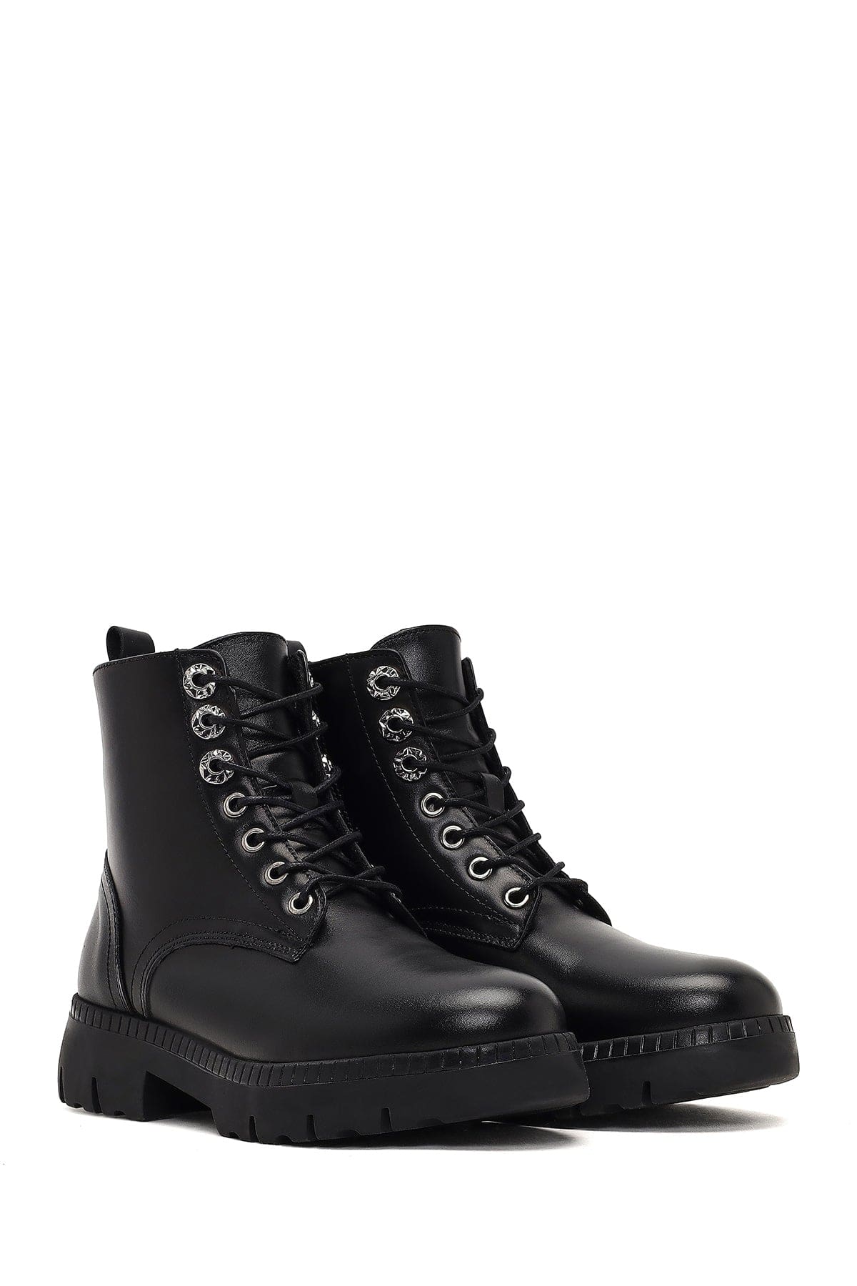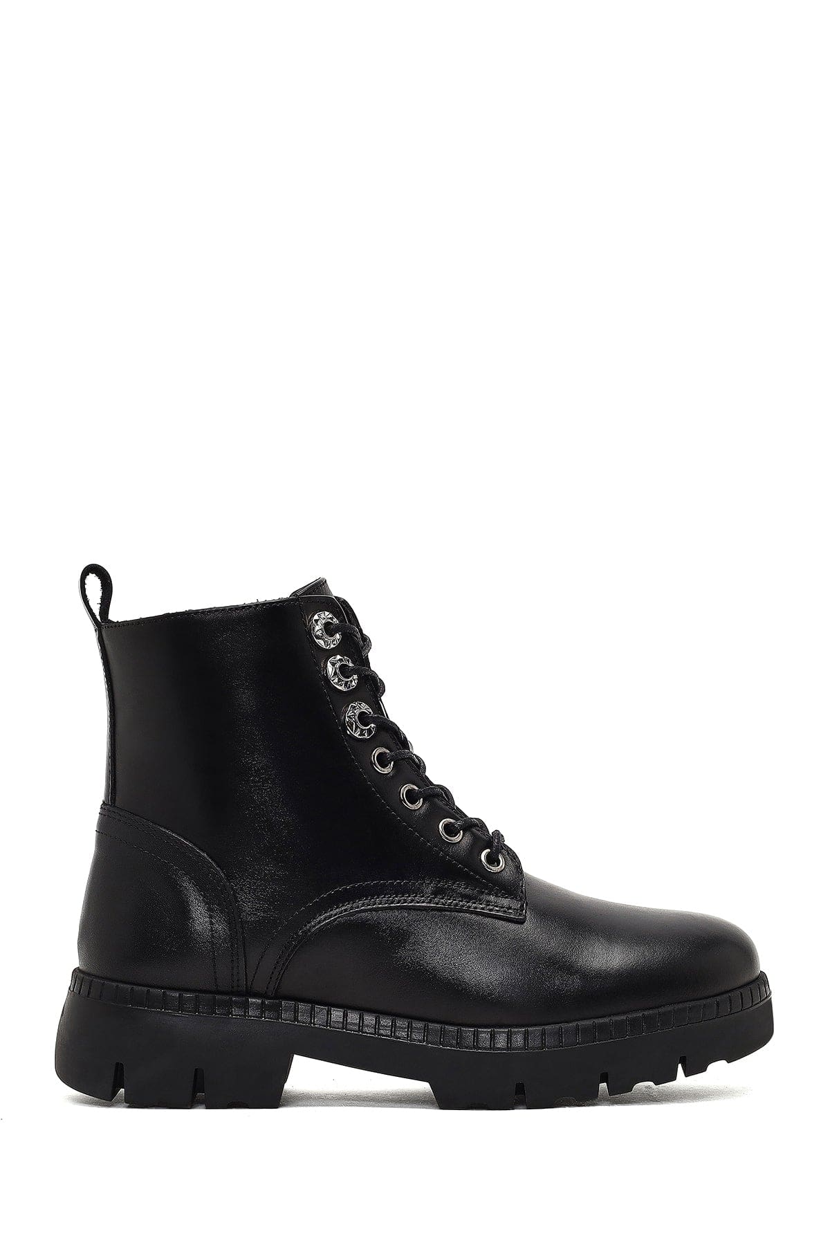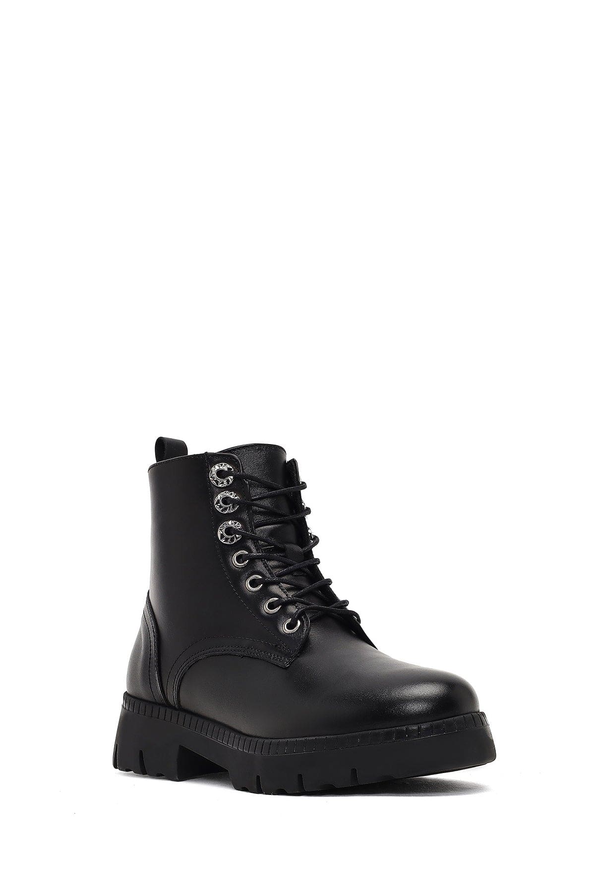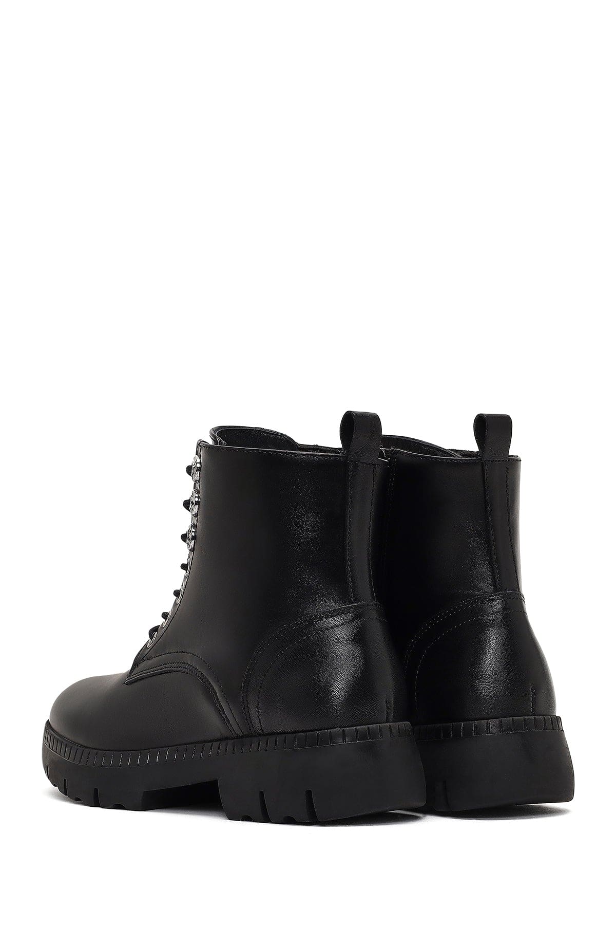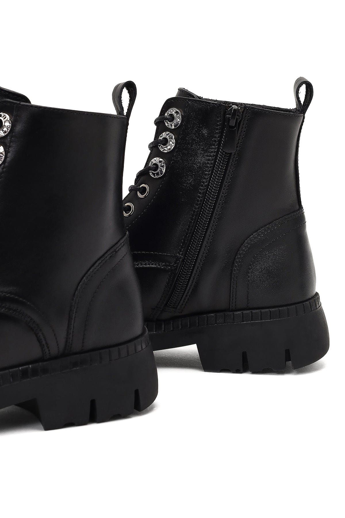 Kadın Siyah Fermuarlı Kalın Tabanlı Deri Postal Bot