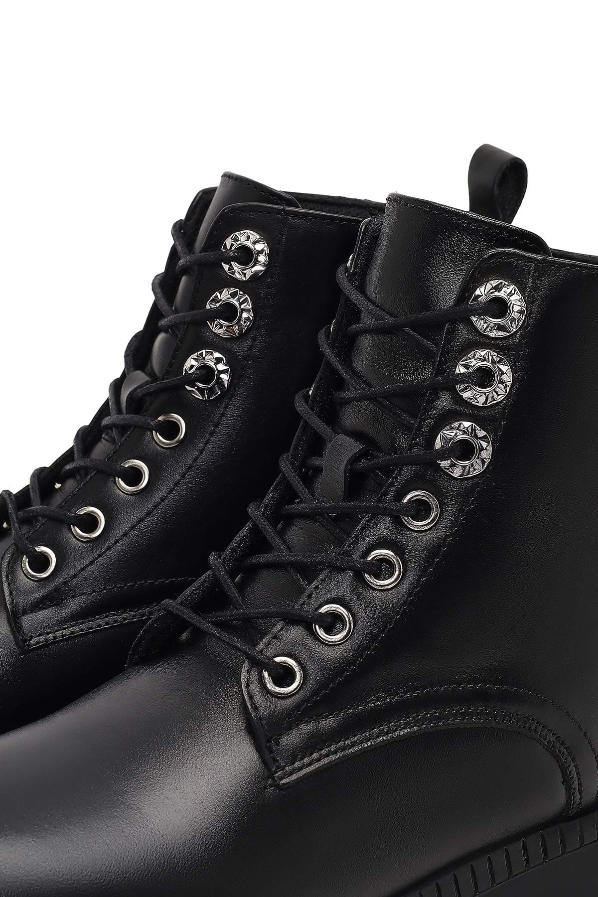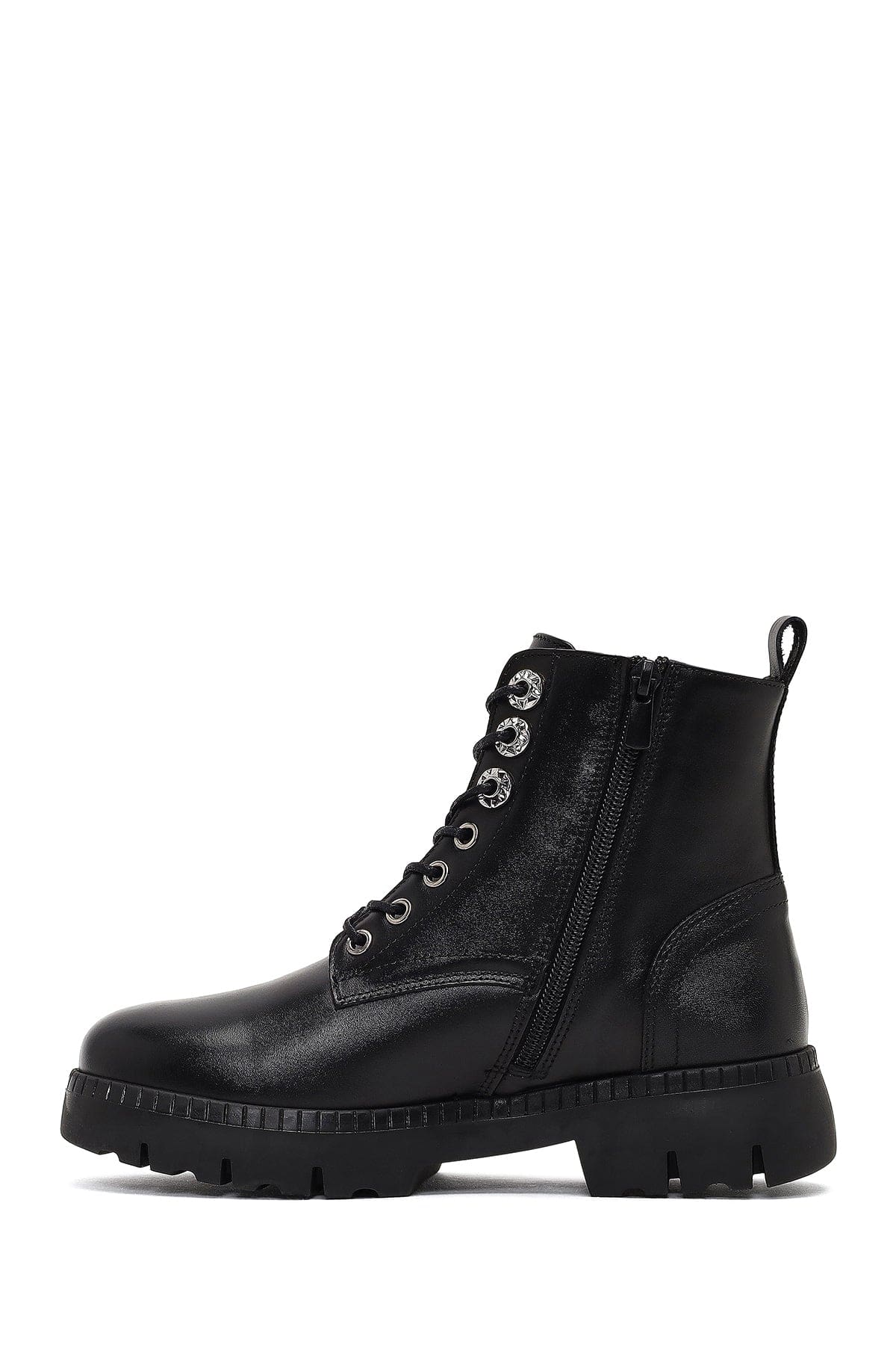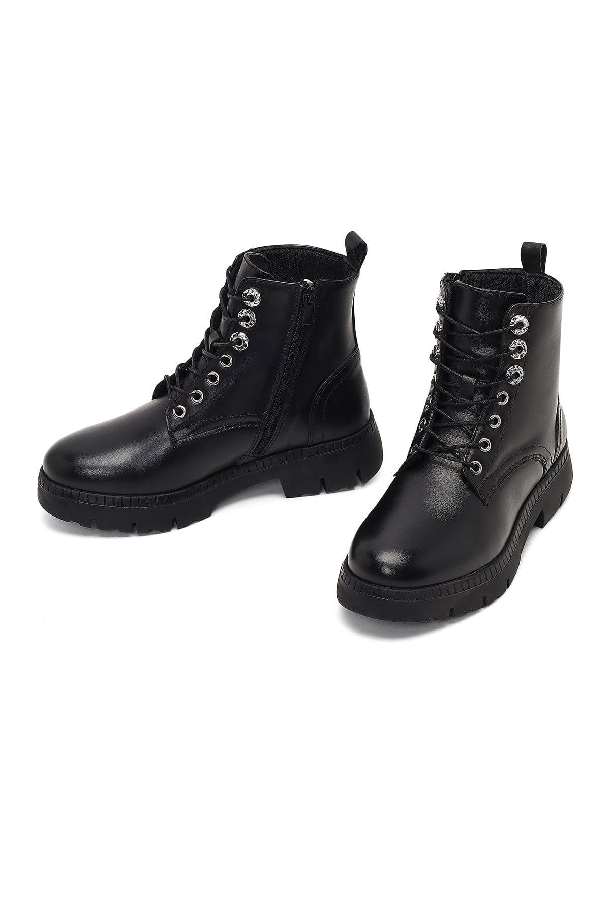 بوت زنانه چرم مشکی زیپدار تختضخیم بنددار دری مد
