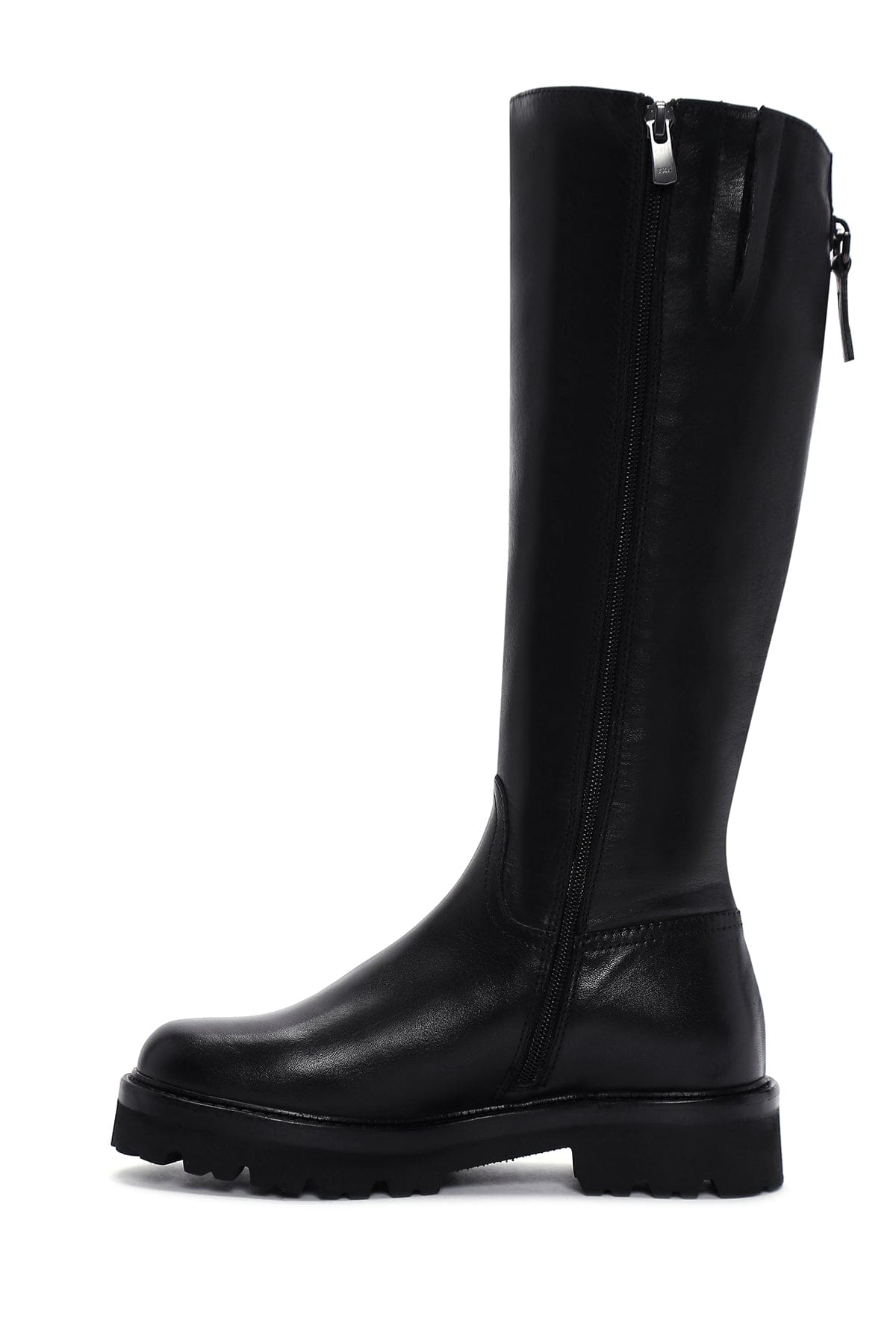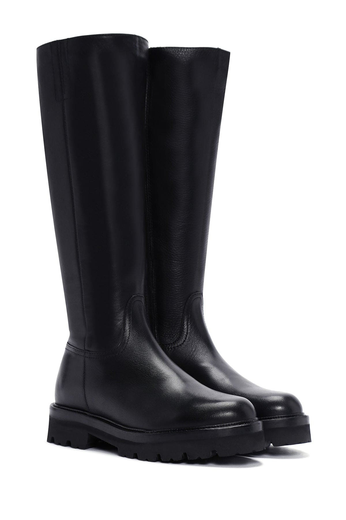 چکمه زنانه مشکی چرمی زیره ضخیم زیپدار دری مد
