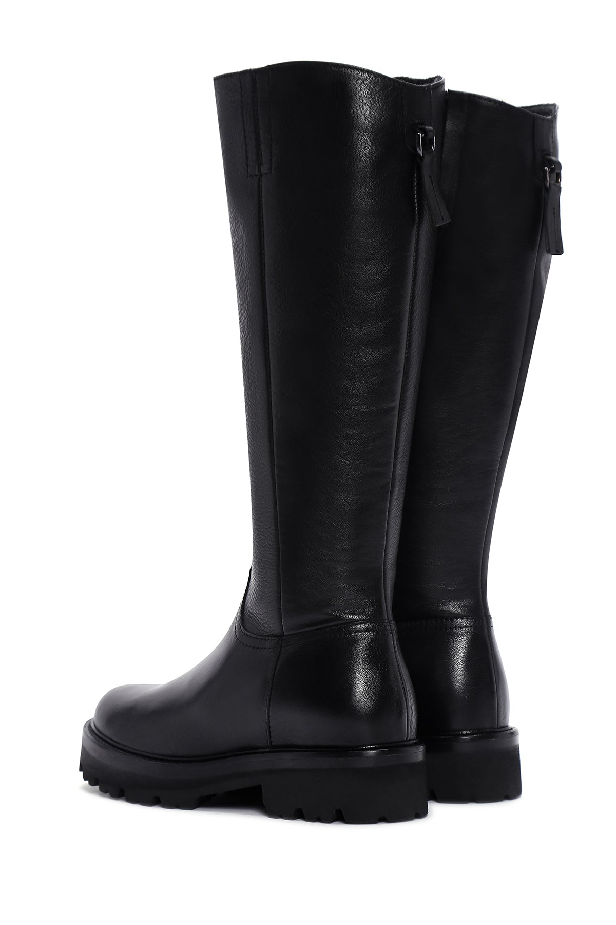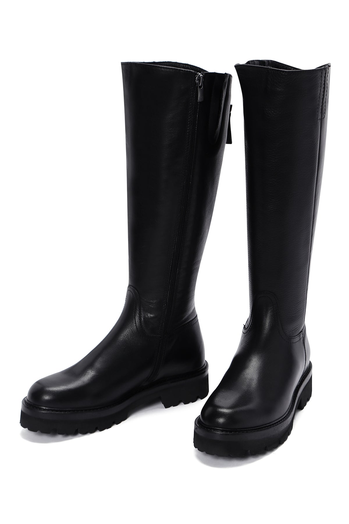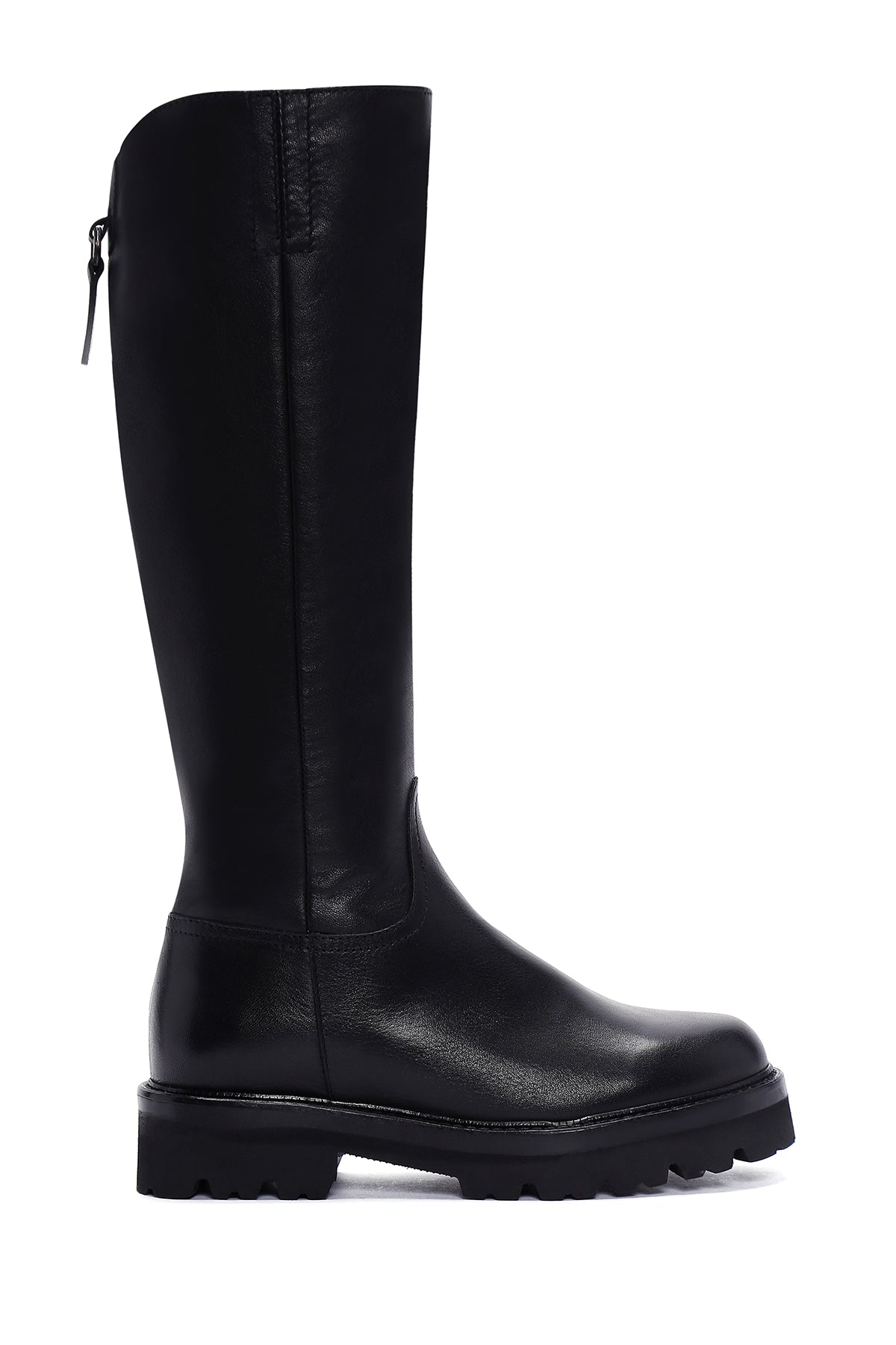 Kadın Siyah Fermuarlı Kalın Tabanlı Deri Çizme