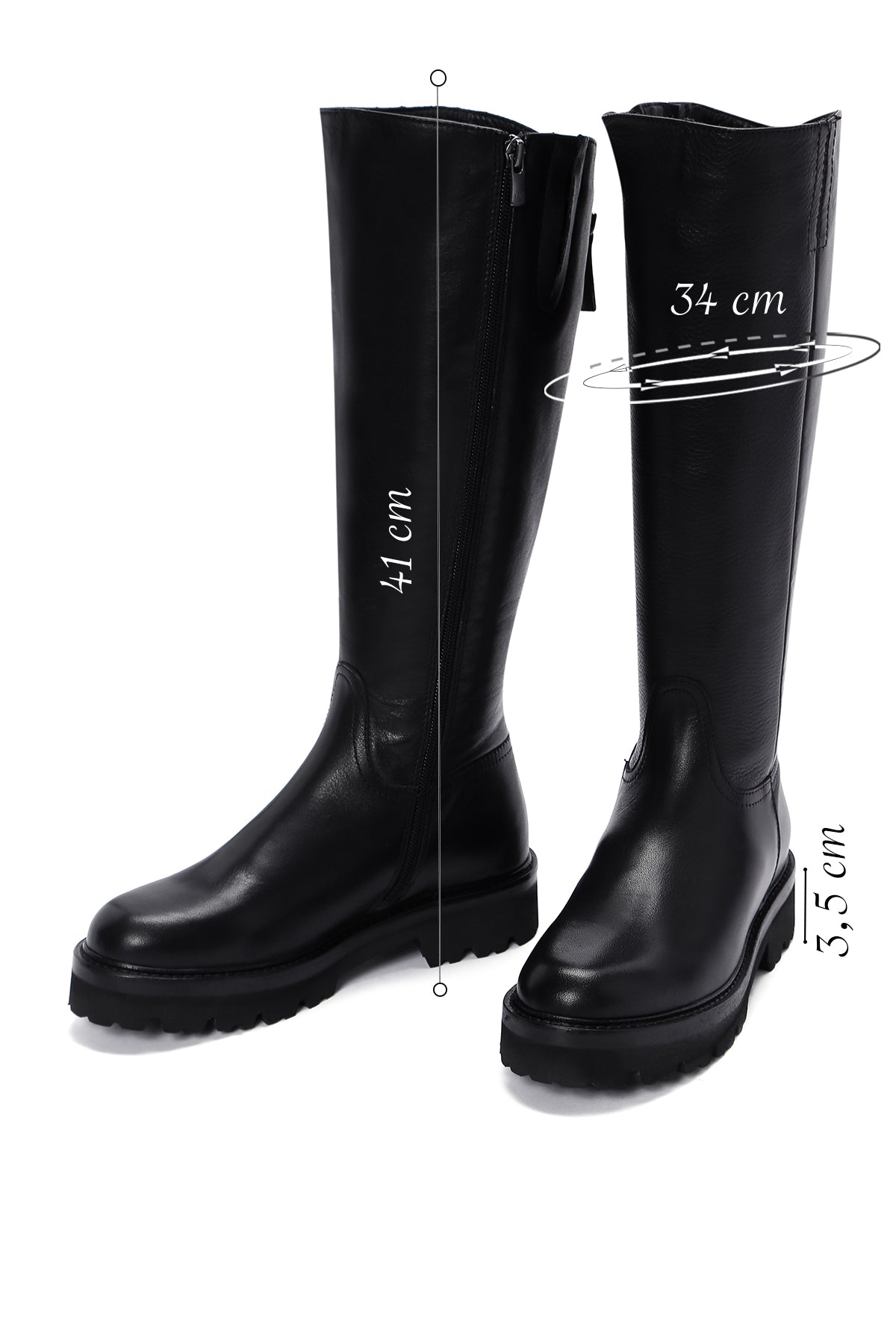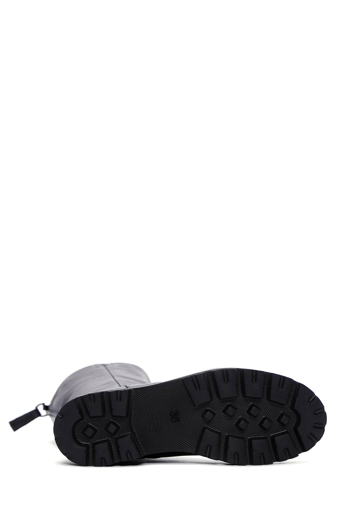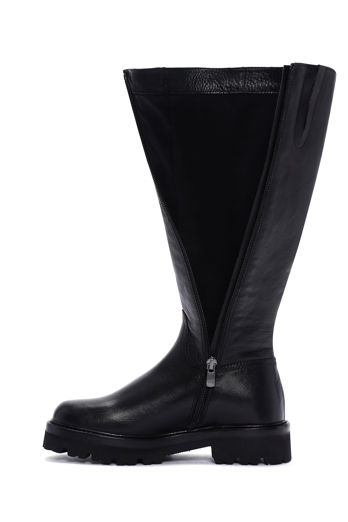 Kadın Siyah Fermuarlı Kalın Tabanlı Deri Çizme