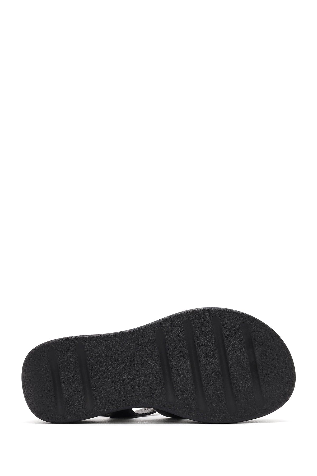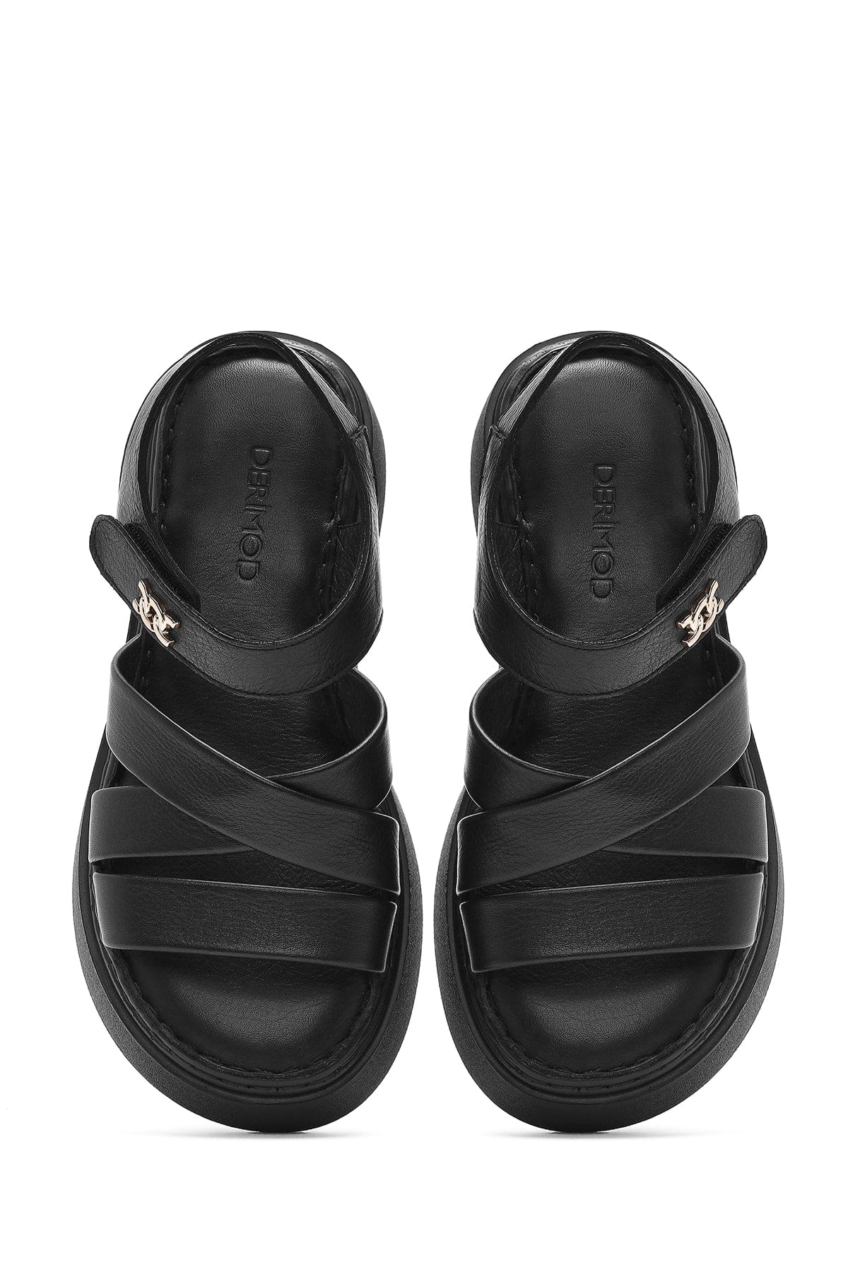 Kadın Siyah Bilekten Bağlamalı Kalın Tabanlı Deri Comfort Sandalet
