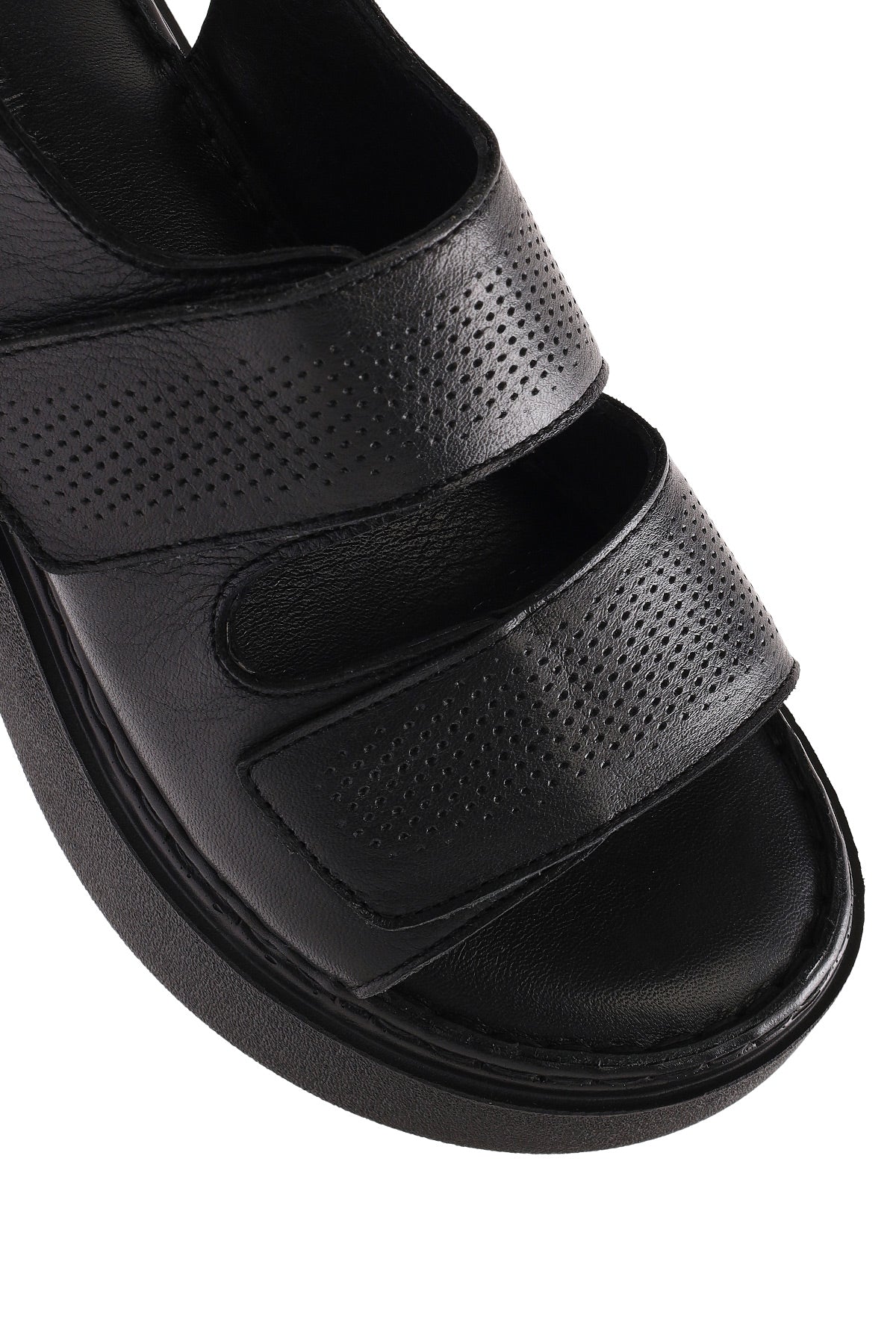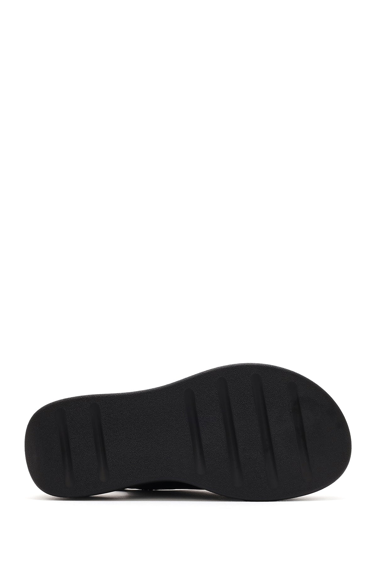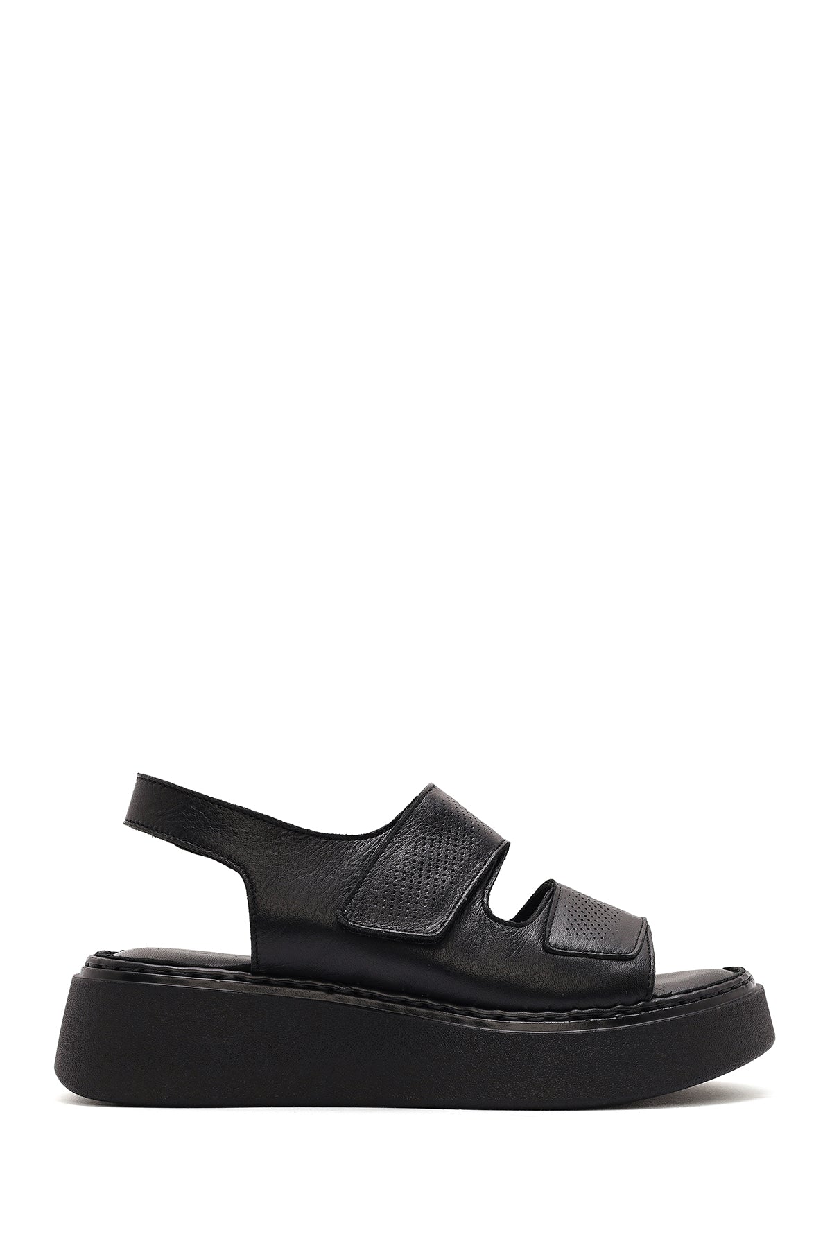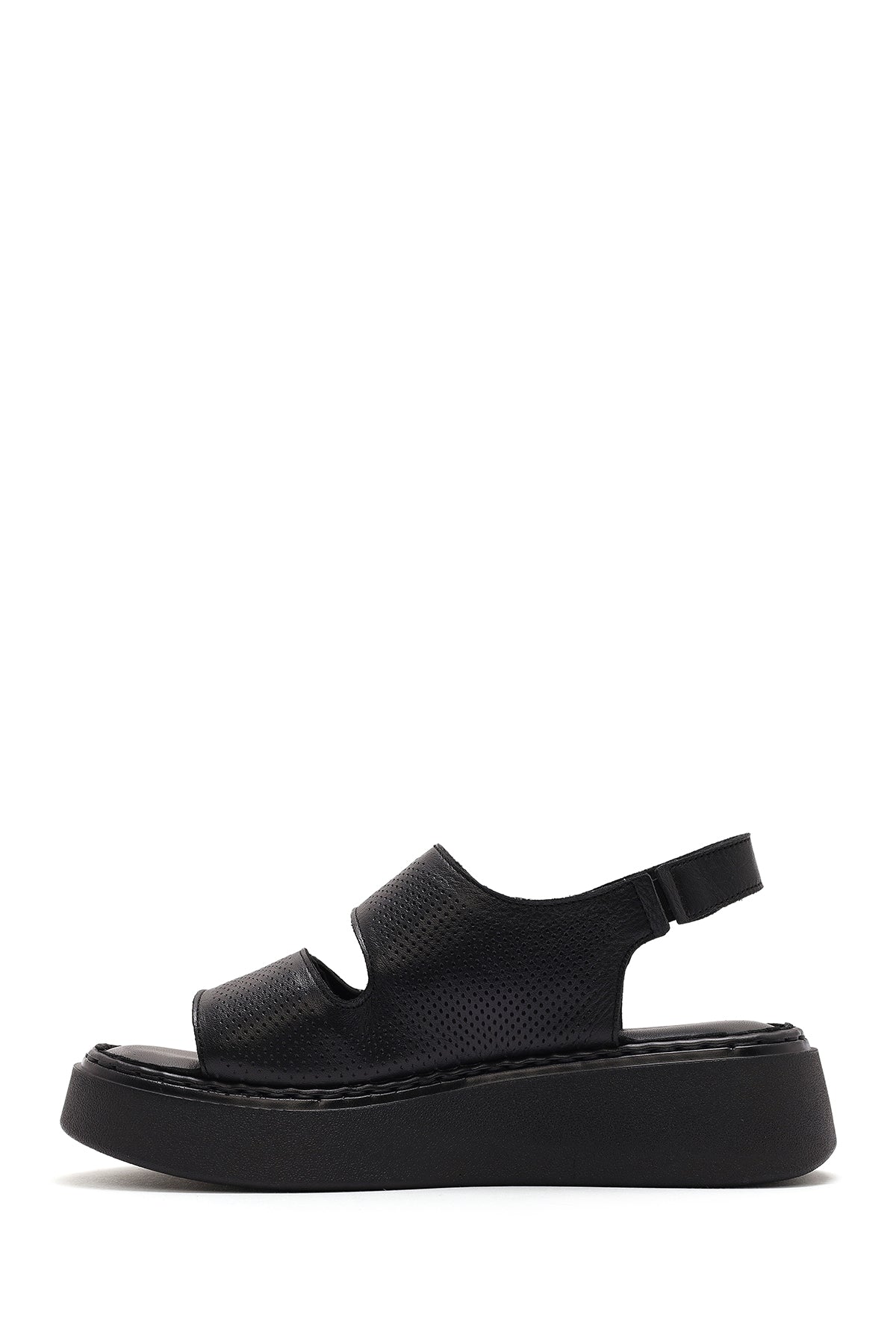 Kadın Siyah Bantlı Kalın Tabanlı Deri Comfort Sandalet