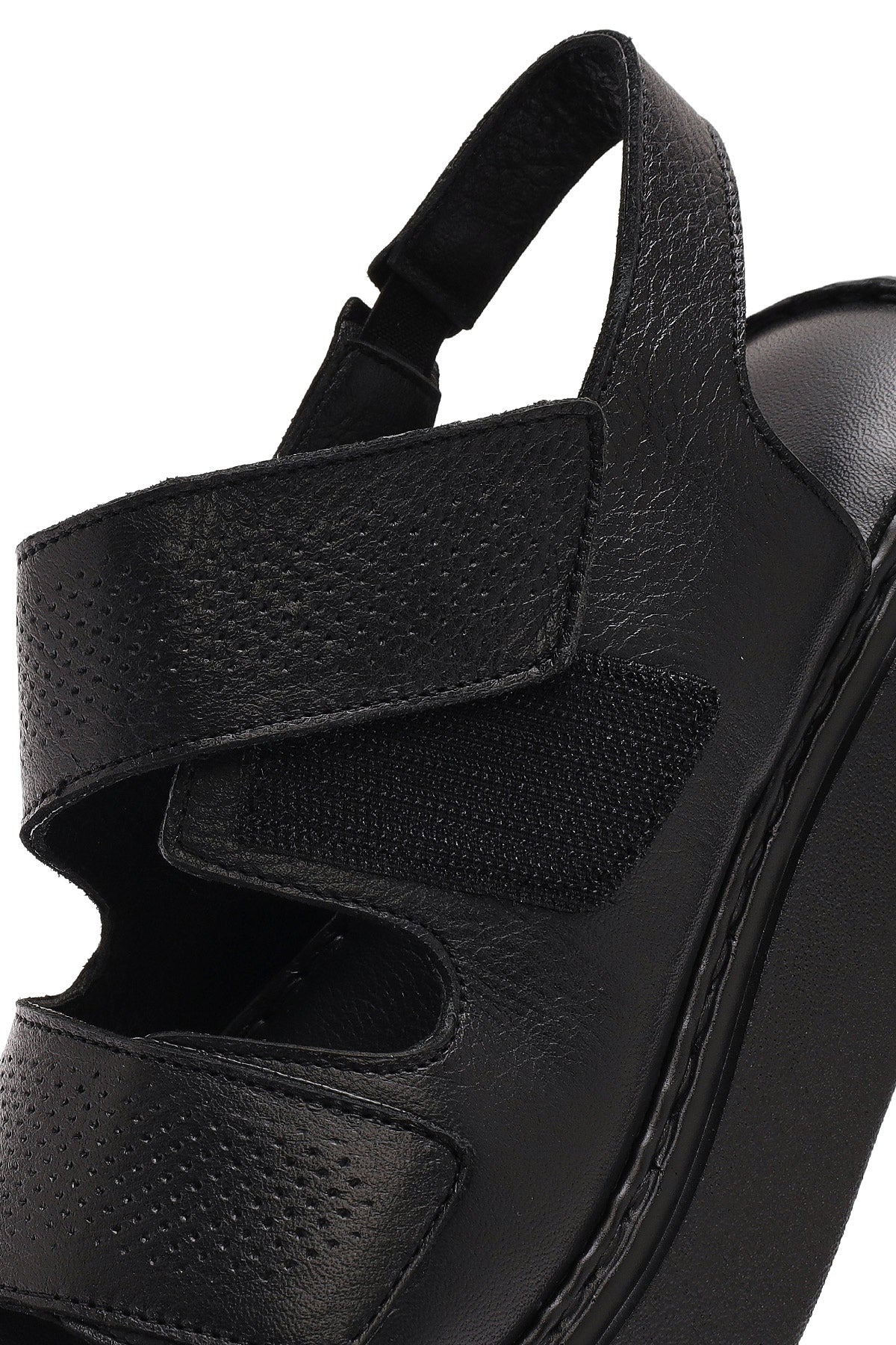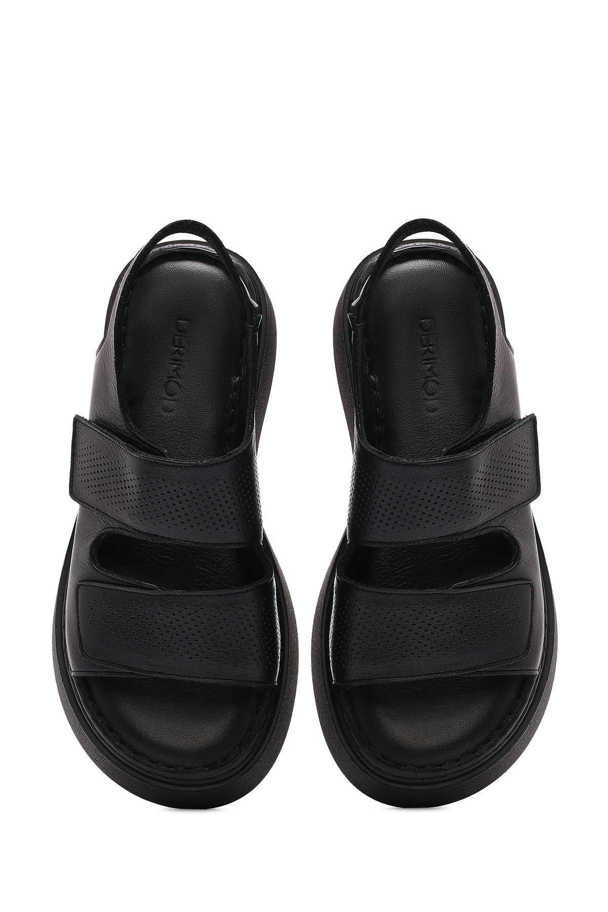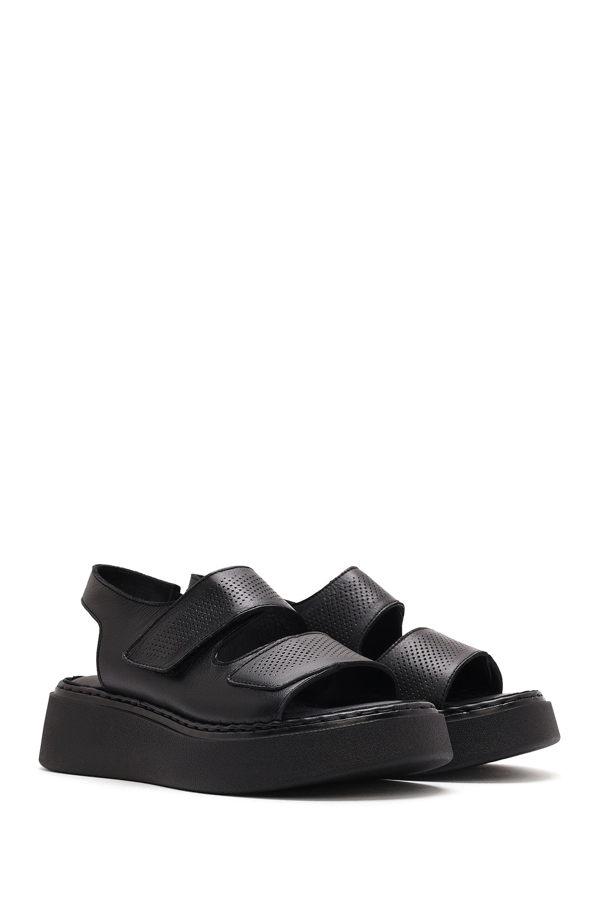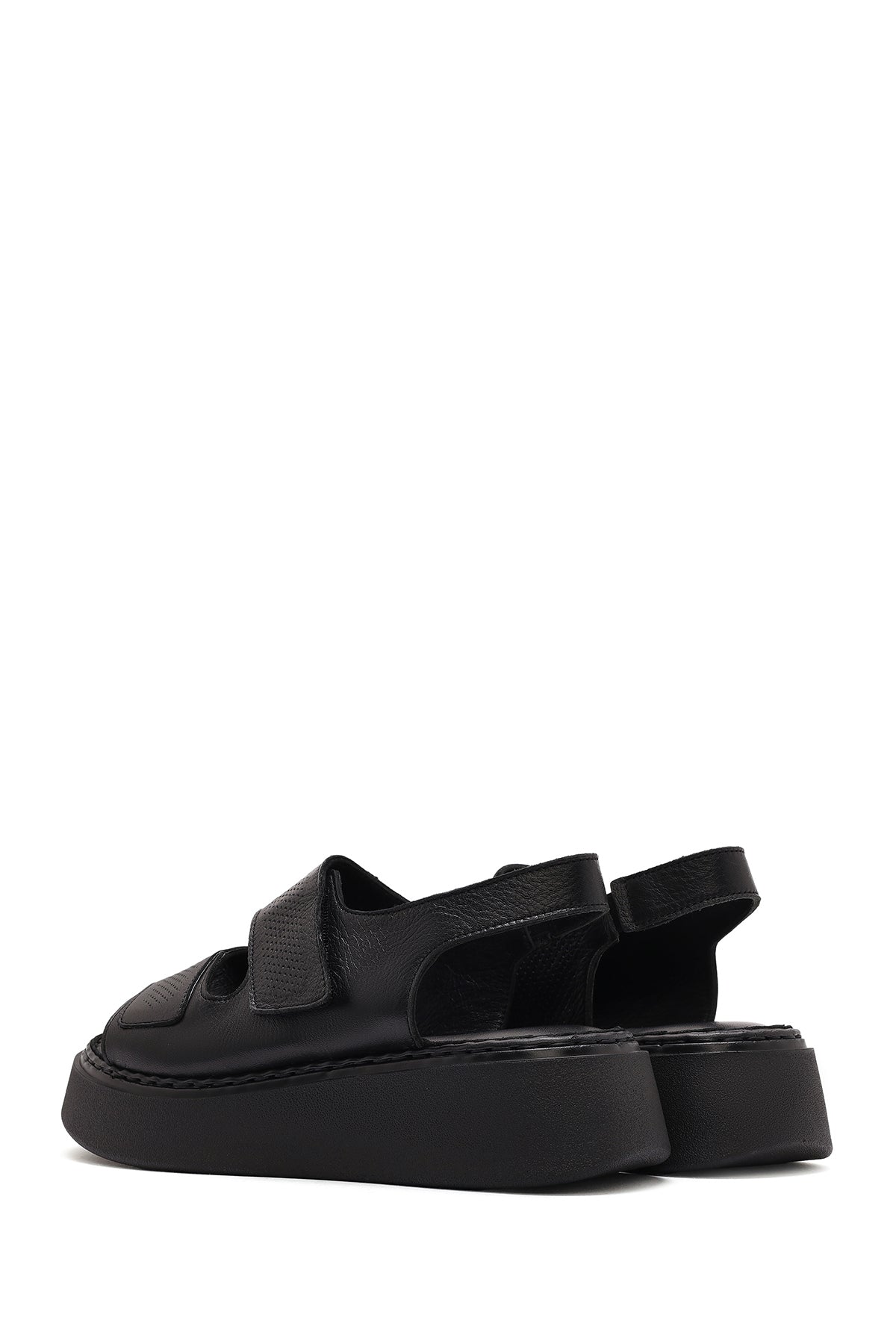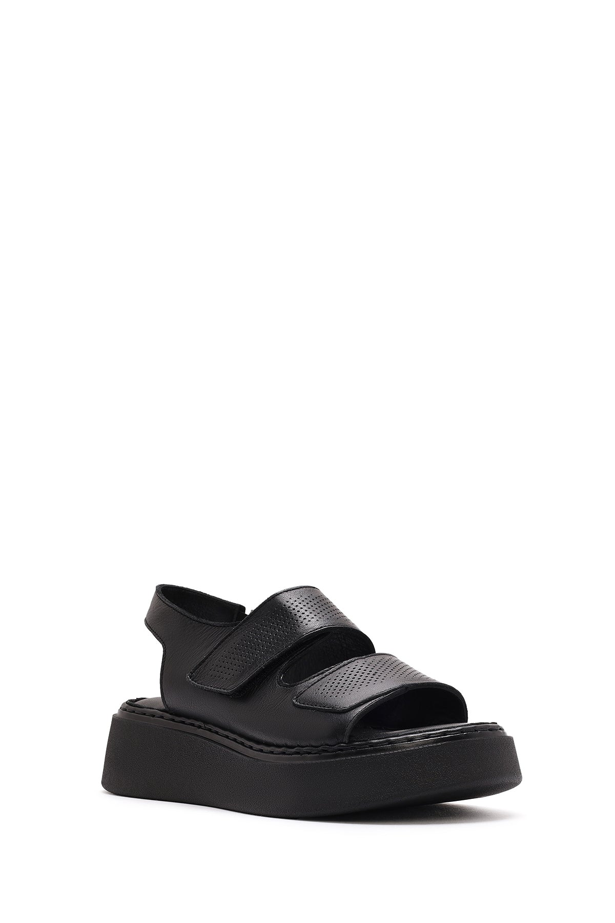 Kadın Siyah Bantlı Kalın Tabanlı Deri Comfort Sandalet