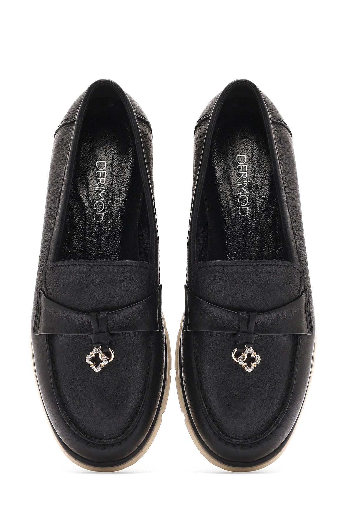 کفش لوفر زنانه چرم مشکی راحتی دری مد