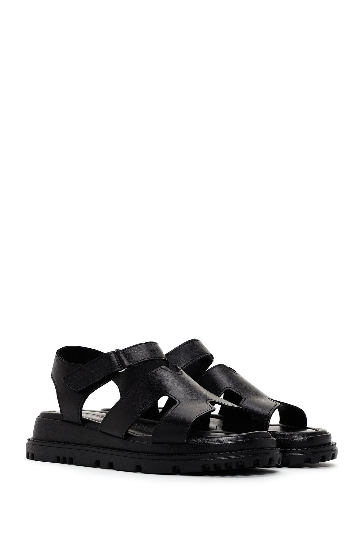 Kadın Siyah Deri Comfort Sandalet
