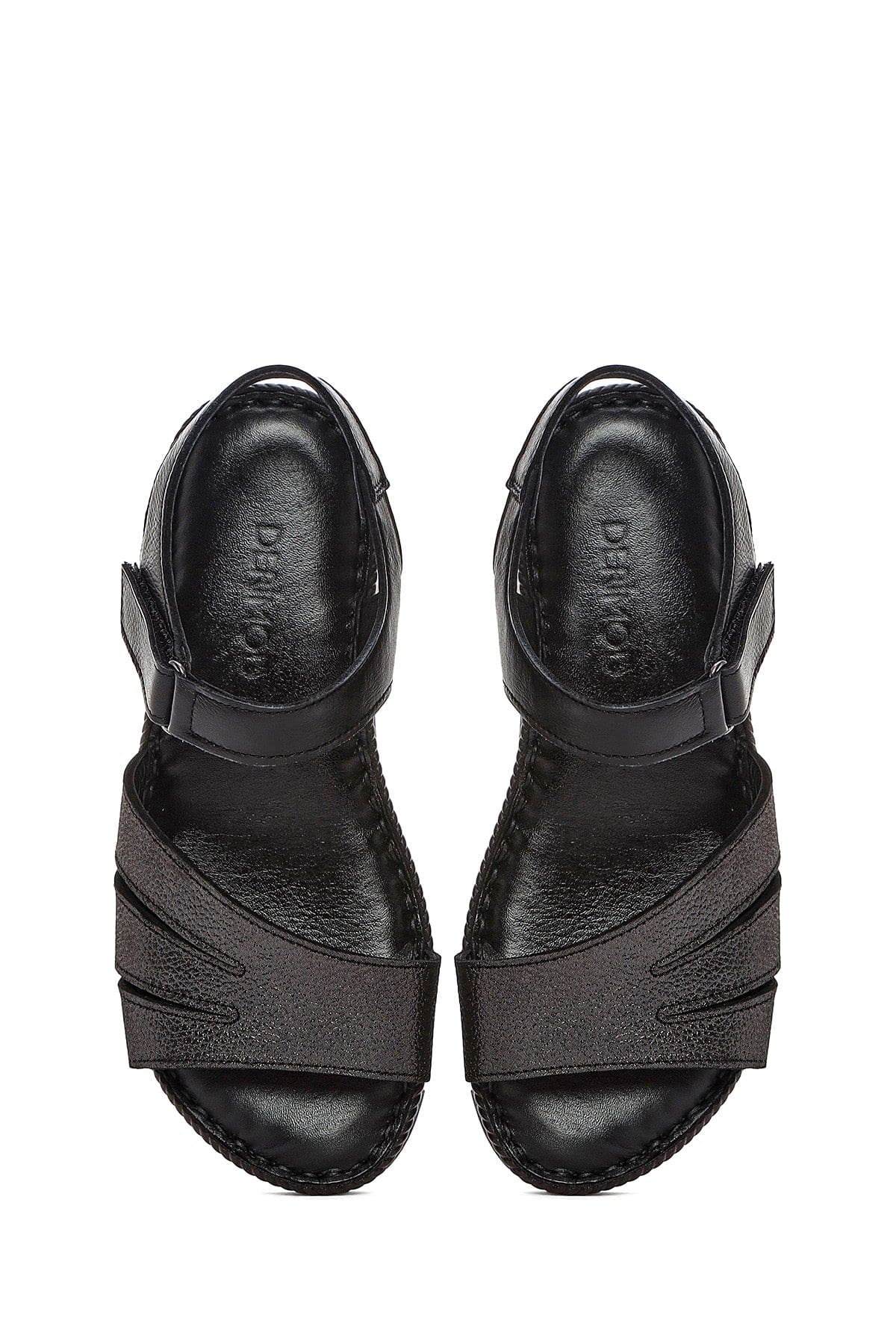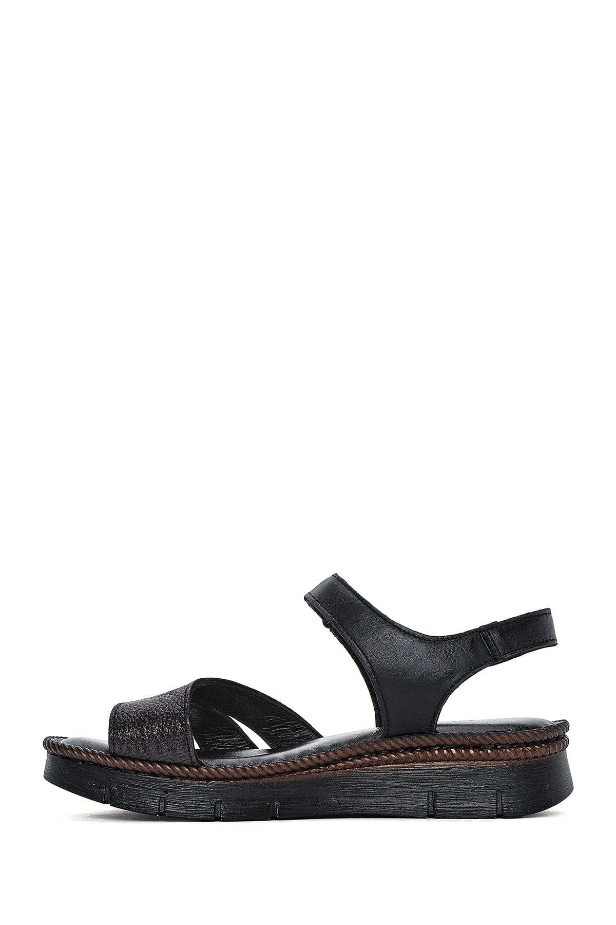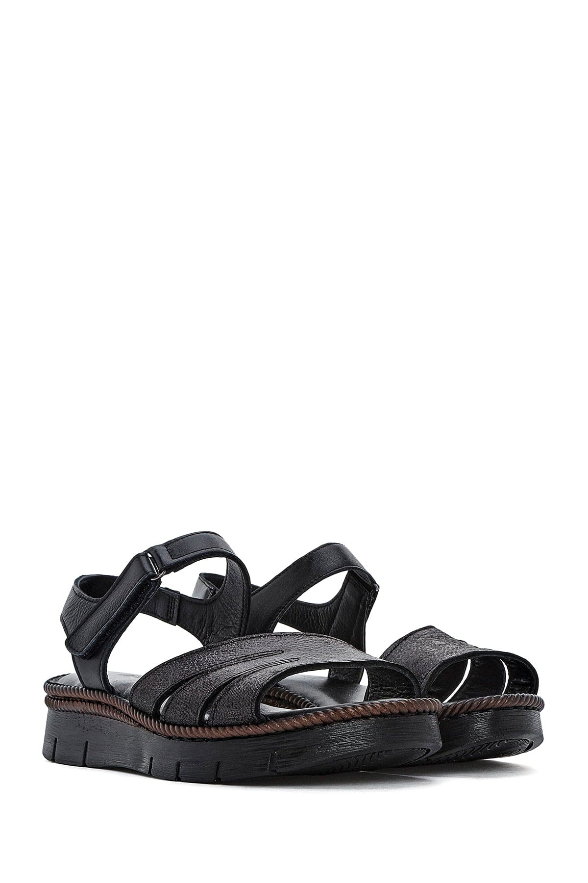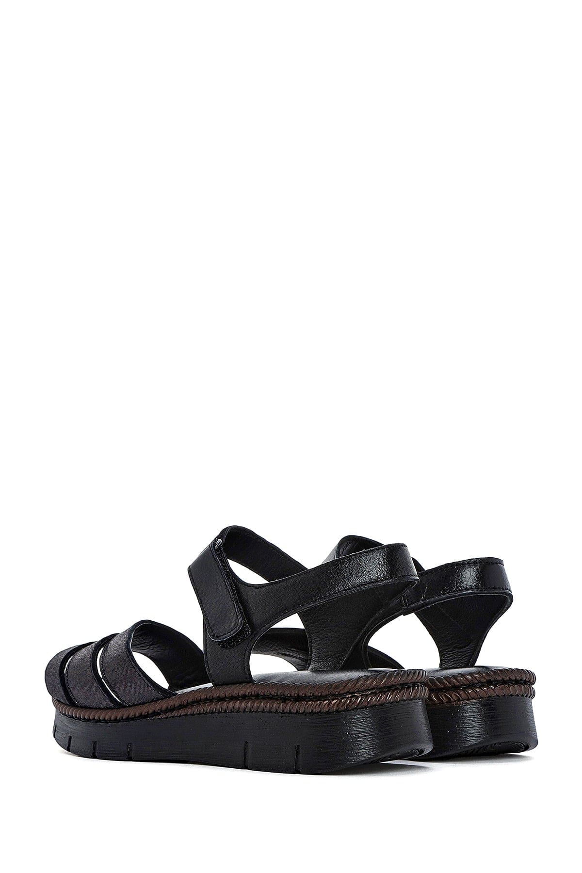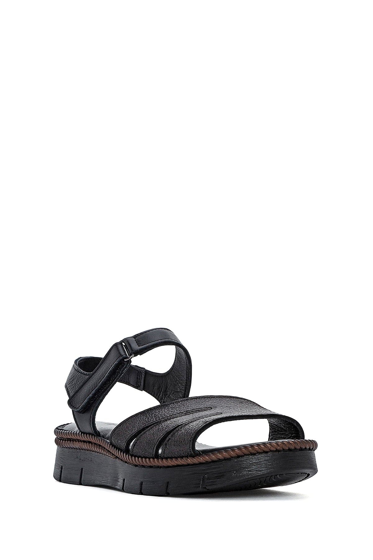 Kadın Siyah Bantlı Deri Comfort Sandalet