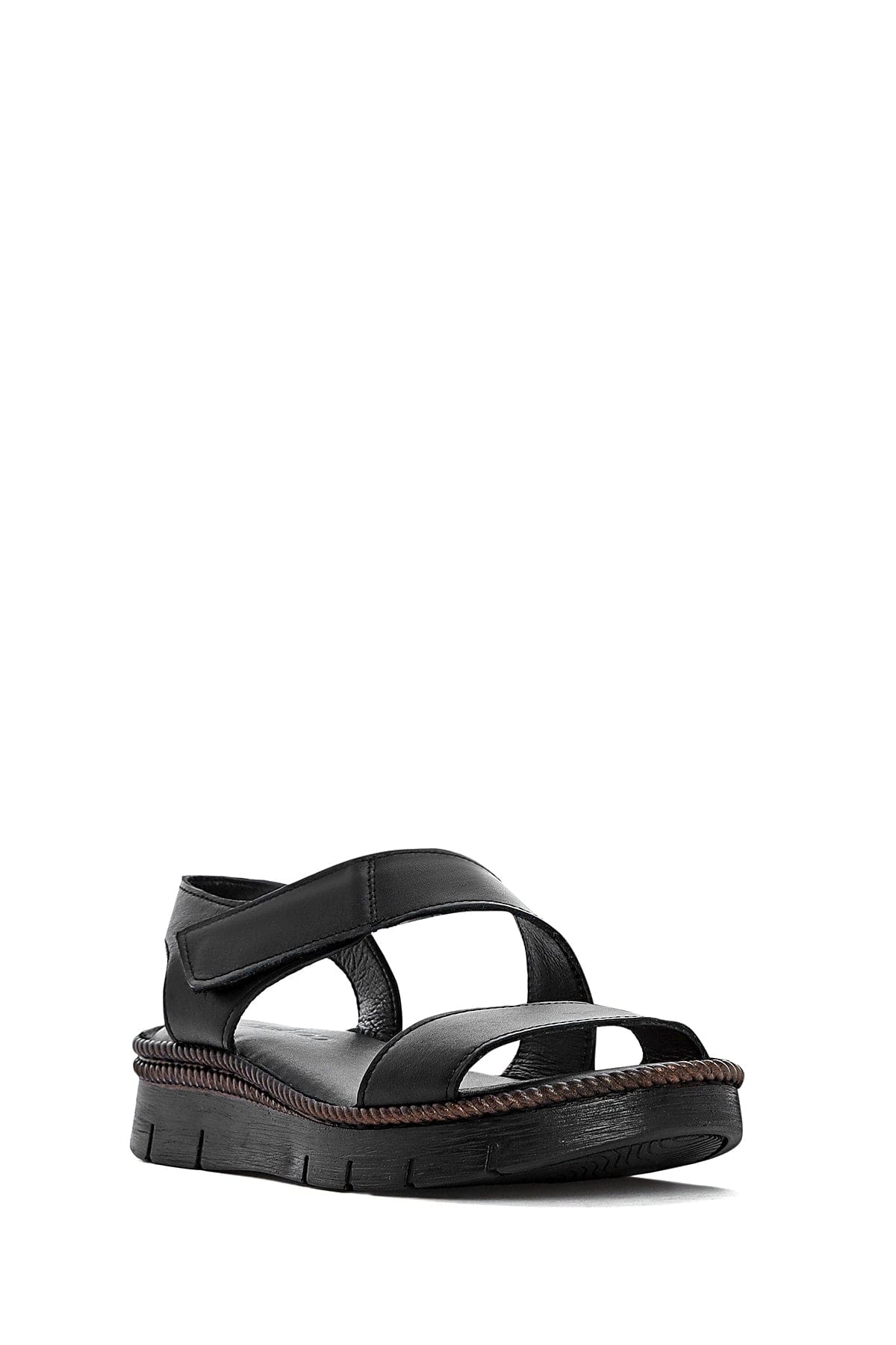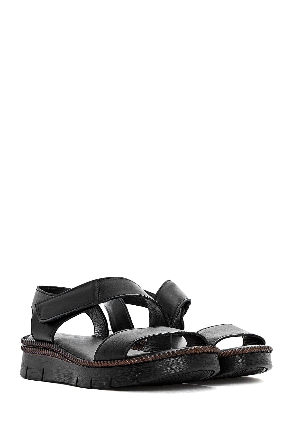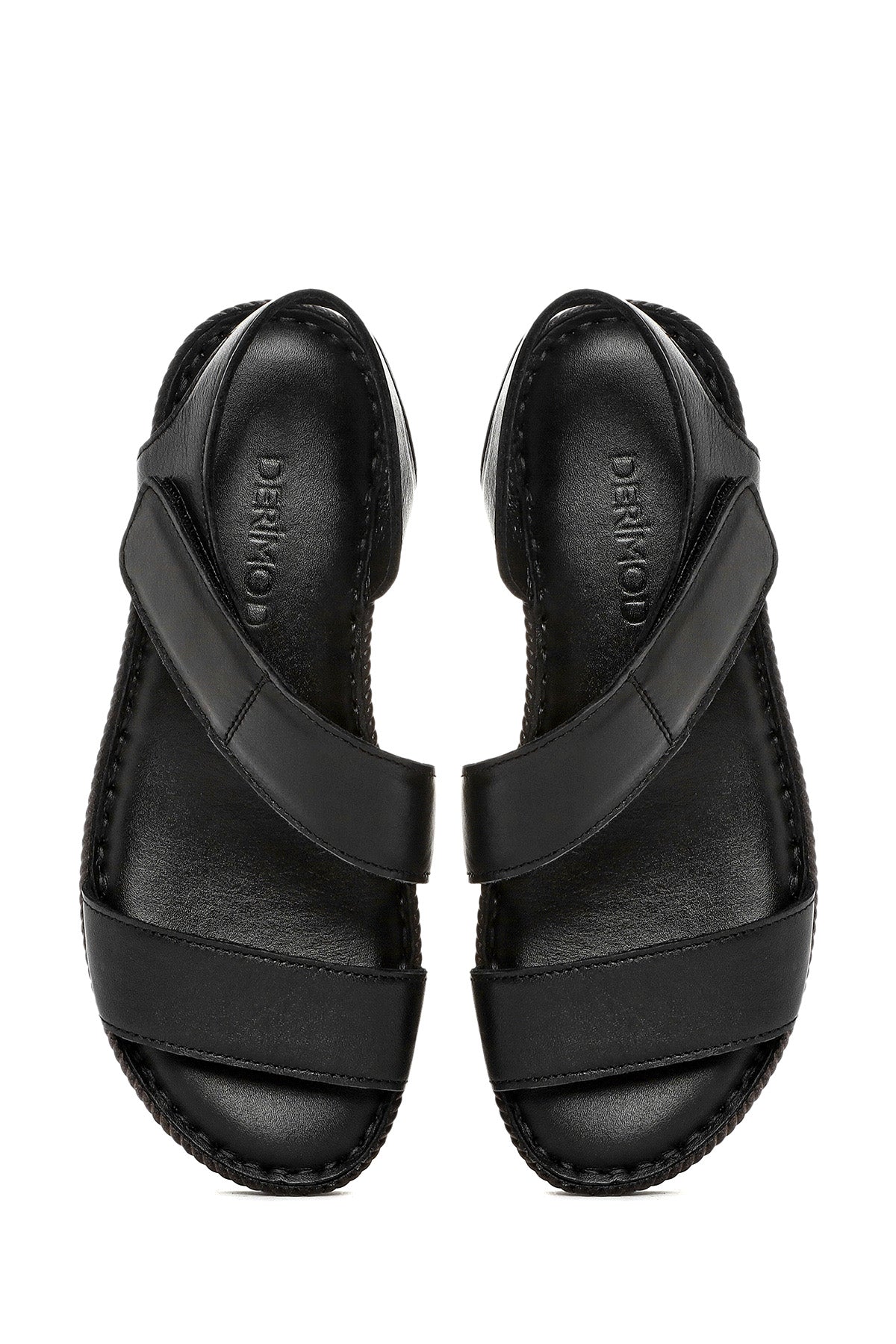 Kadın Siyah Bantlı Deri Comfort Sandalet