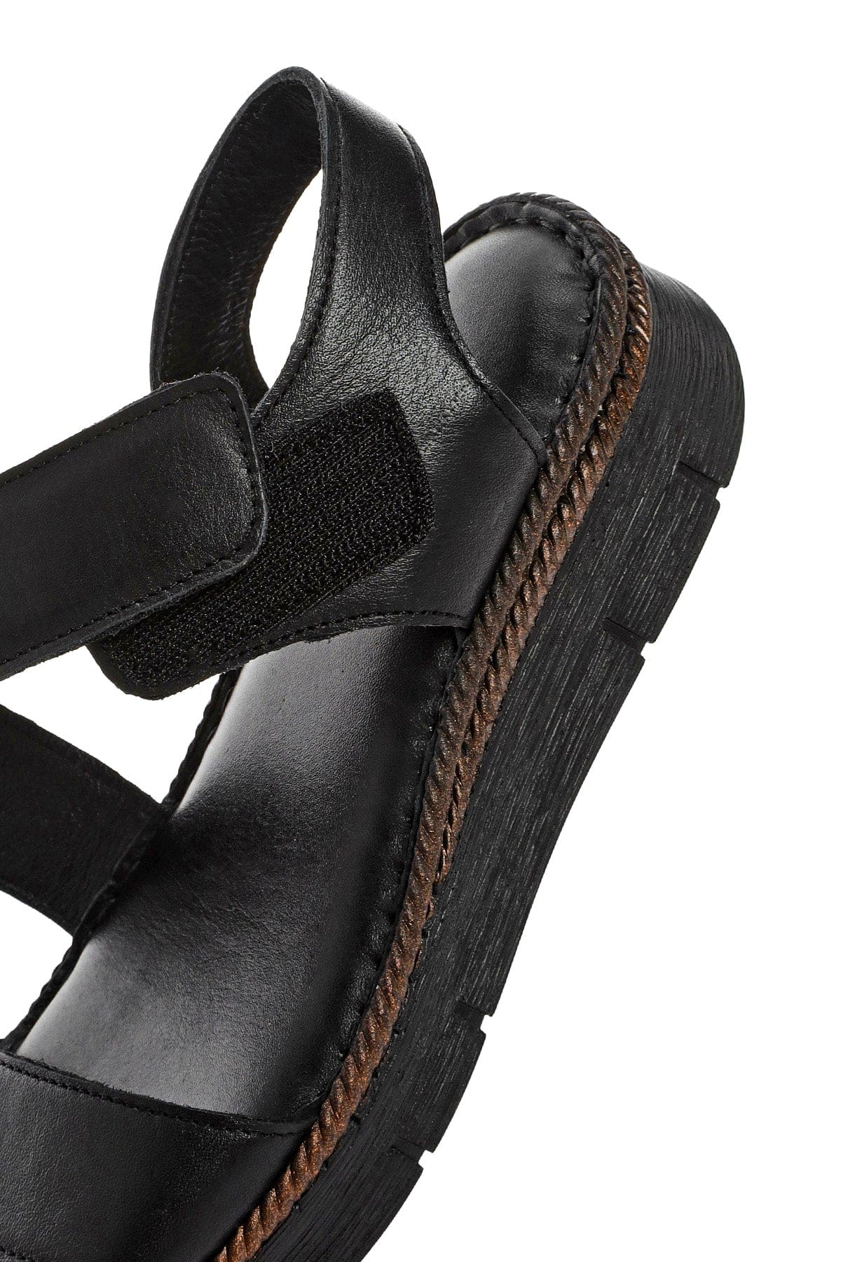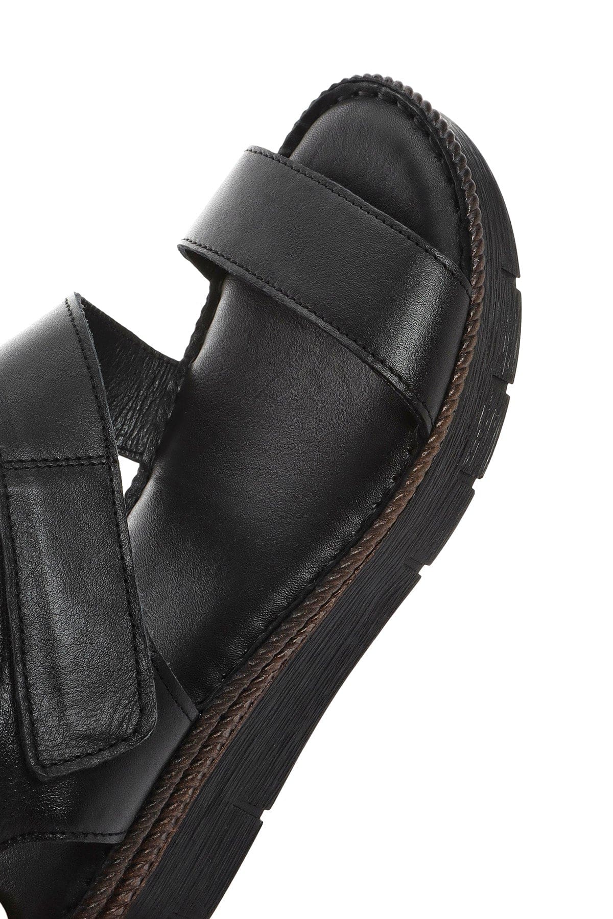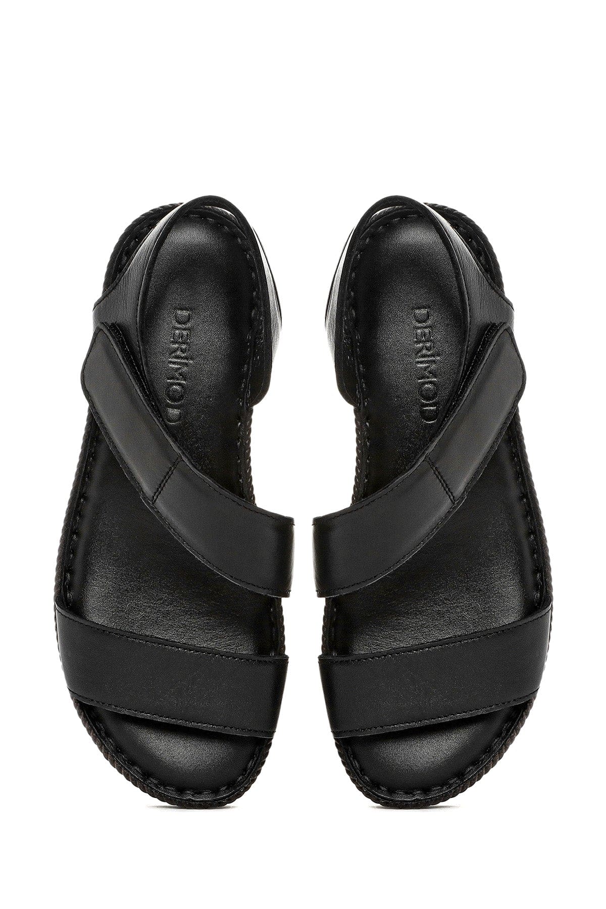 Kadın Siyah Bantlı Deri Comfort Sandalet