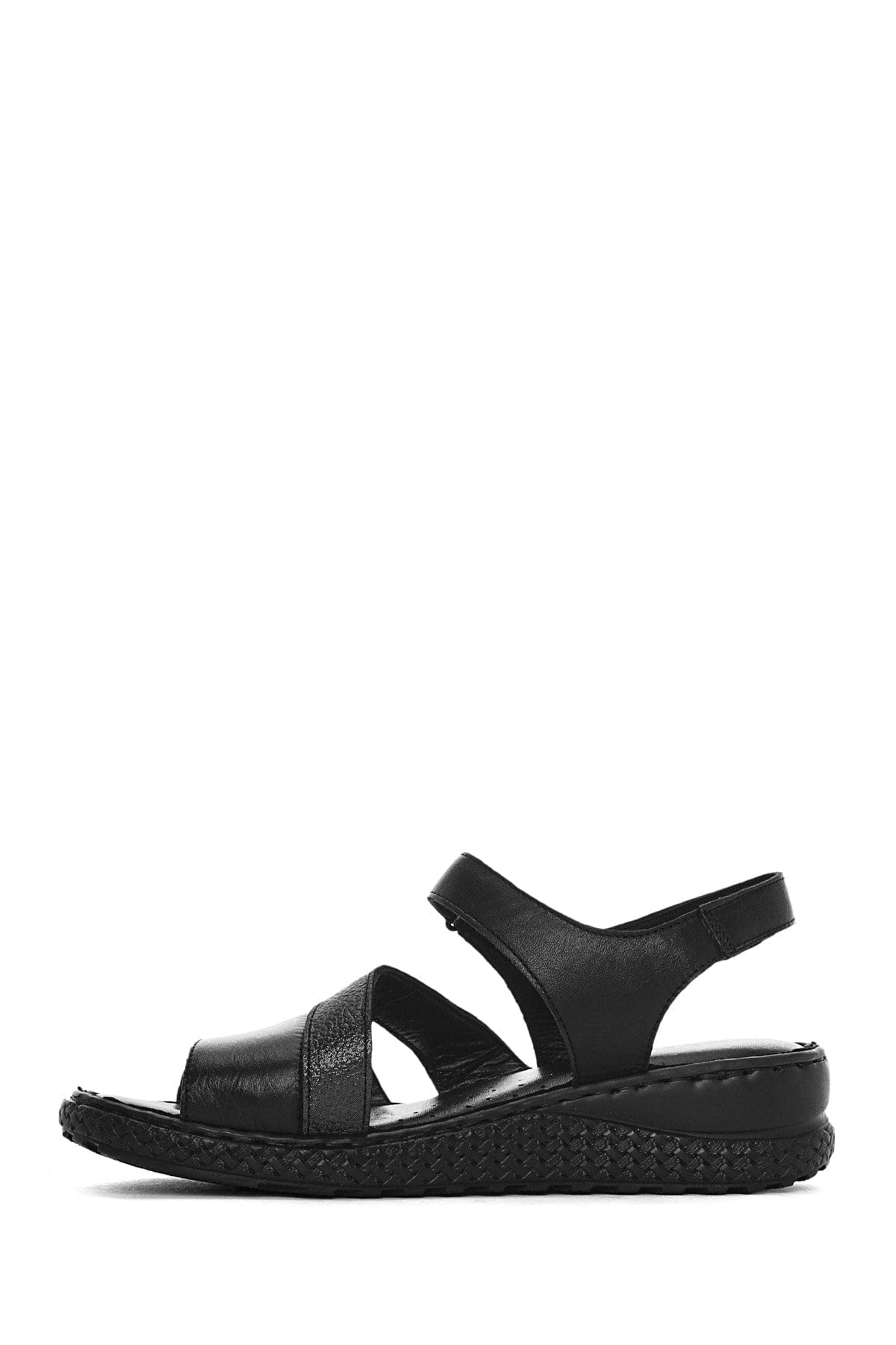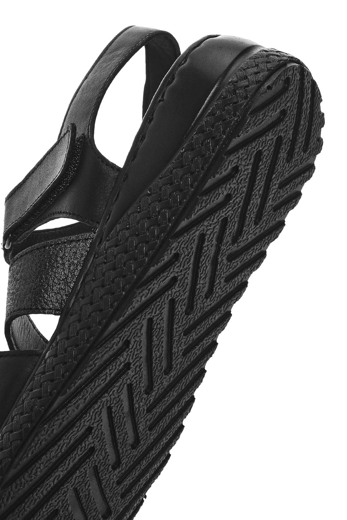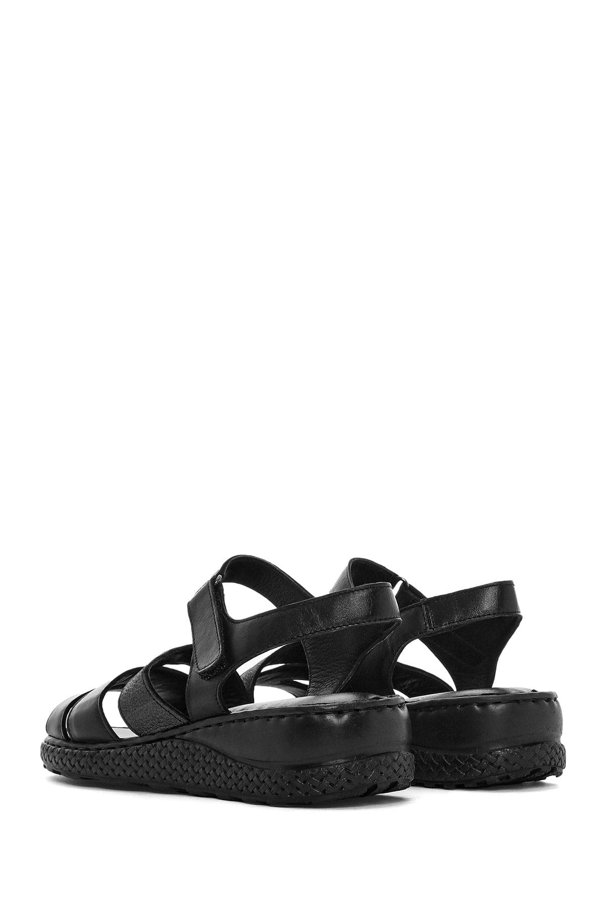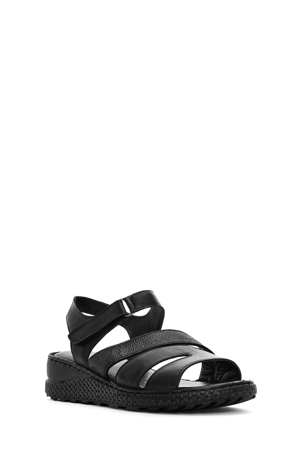 Kadın Siyah Bantlı Deri Comfort Sandalet