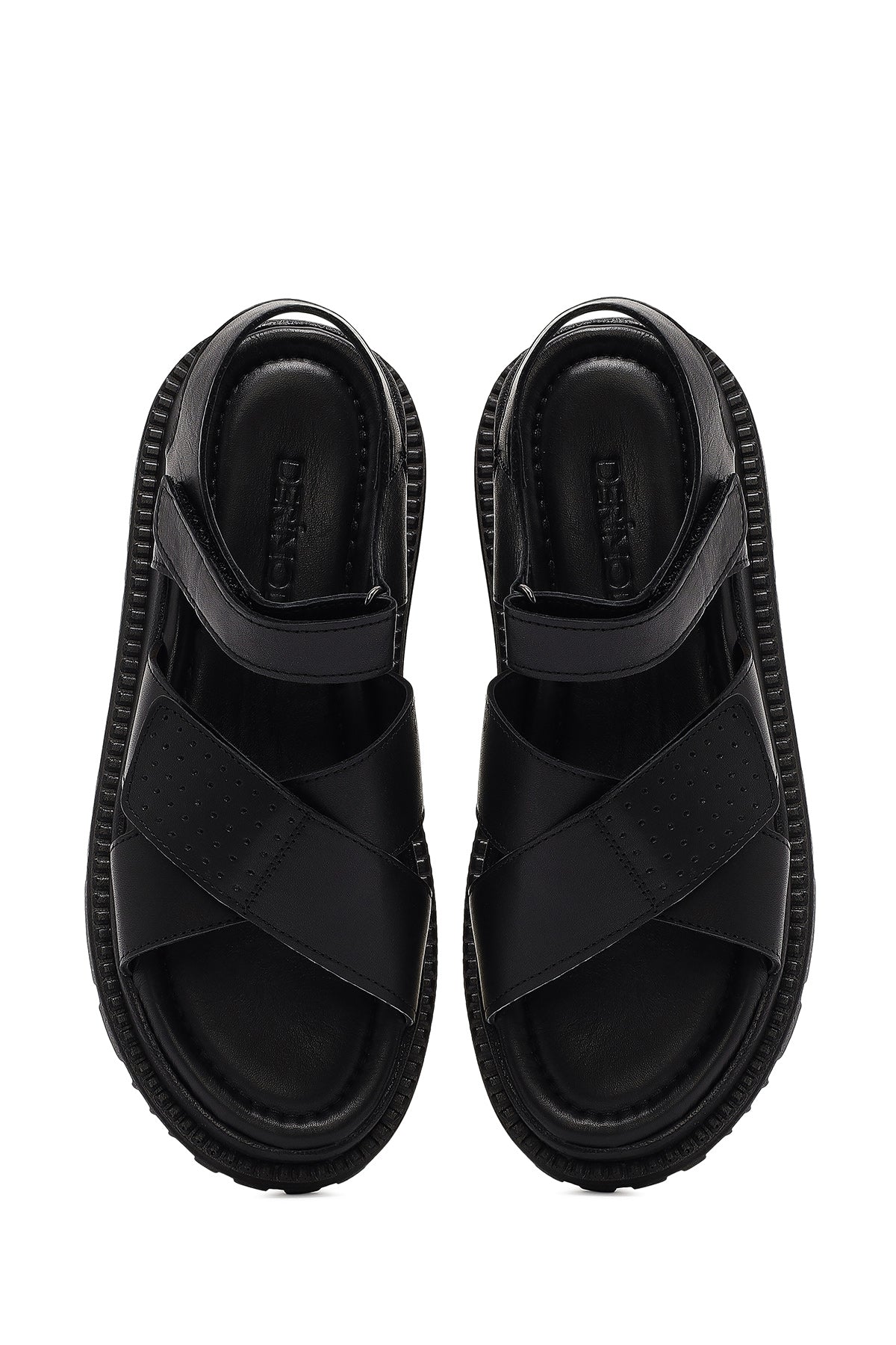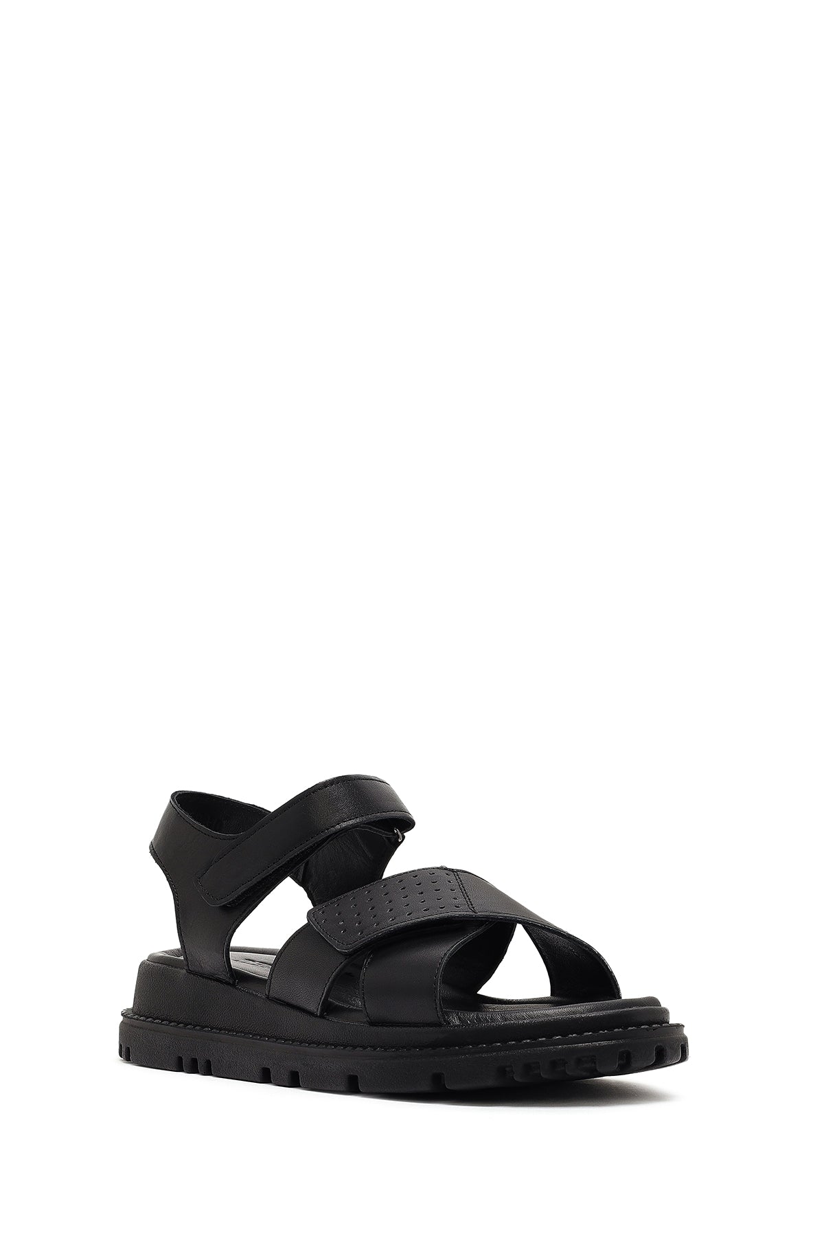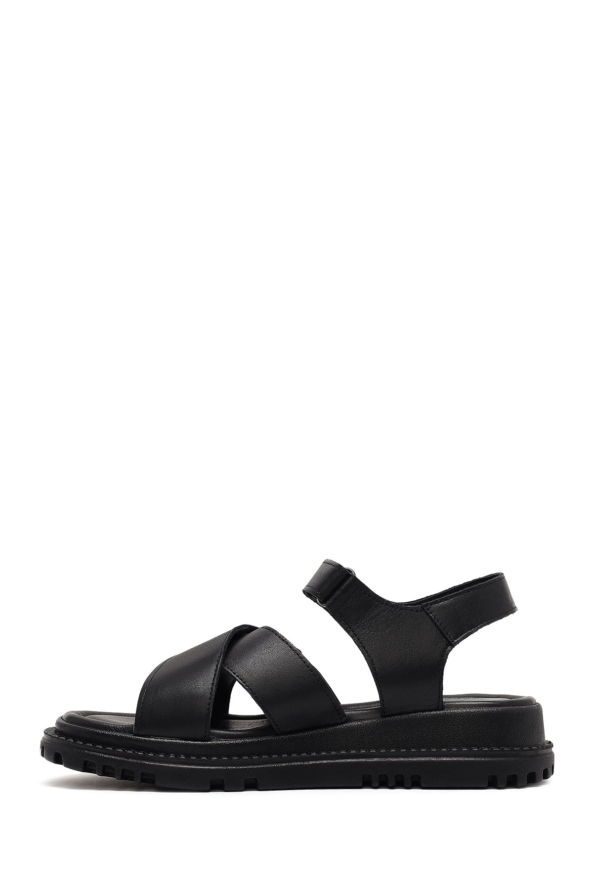 Kadın Siyah Bantlı Kalın Tabanlı Deri Sandalet