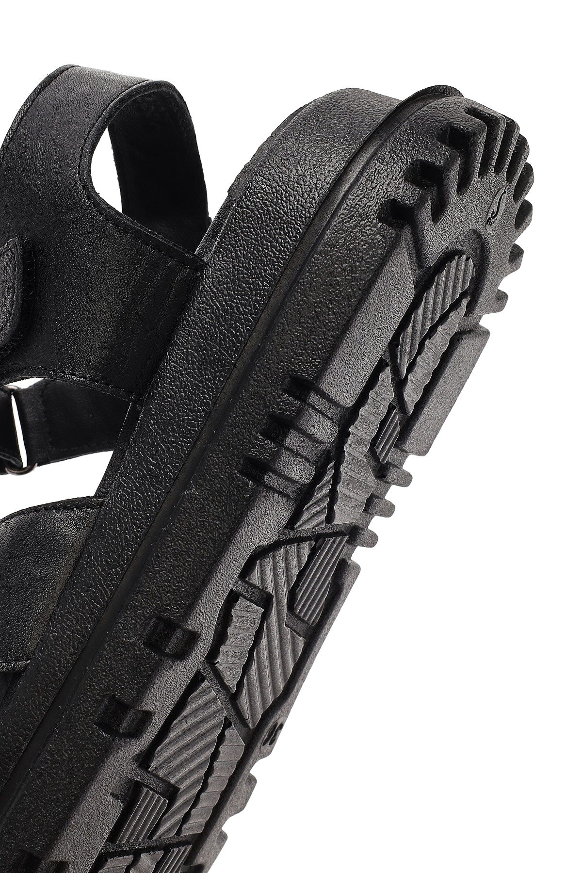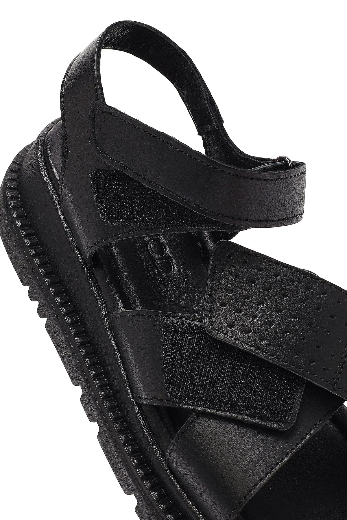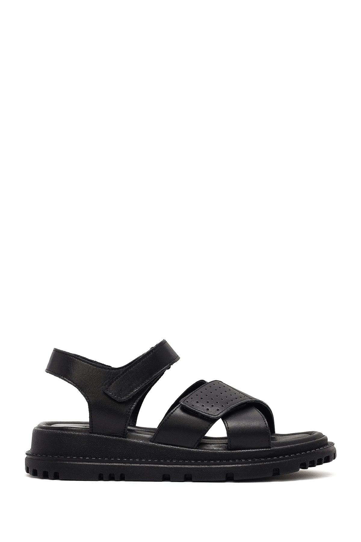 Kadın Siyah Bantlı Kalın Tabanlı Deri Sandalet