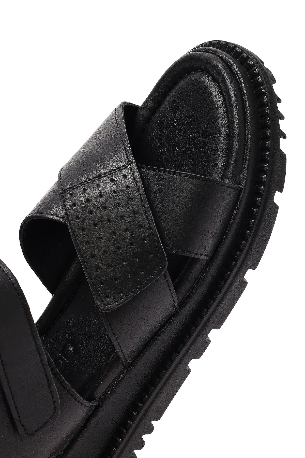 صندل زنانه مشکی چرم تخت بندی دری مد