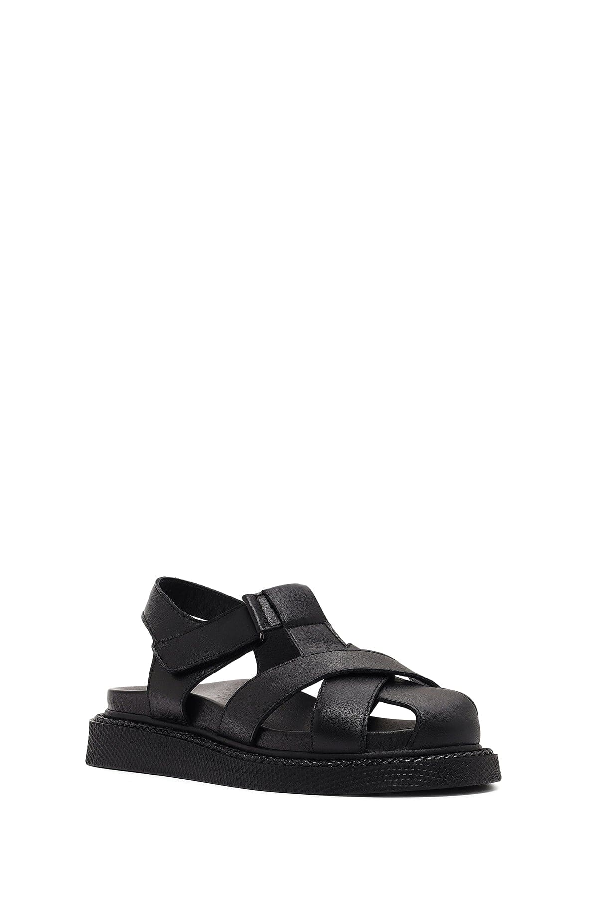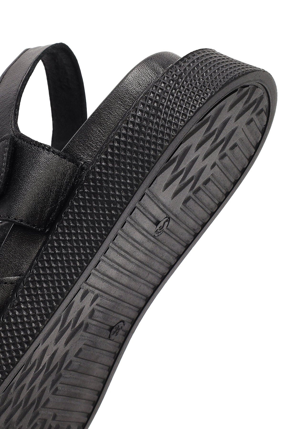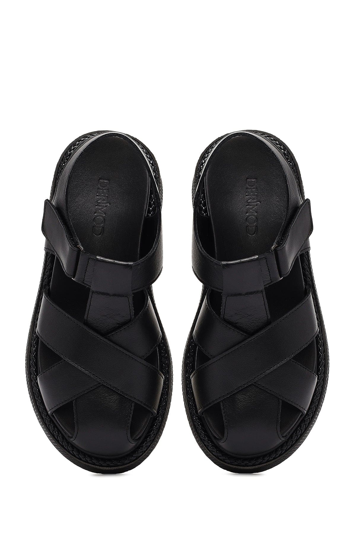 Kadın Siyah Bantlı Kalın Tabanlı Deri Sandalet