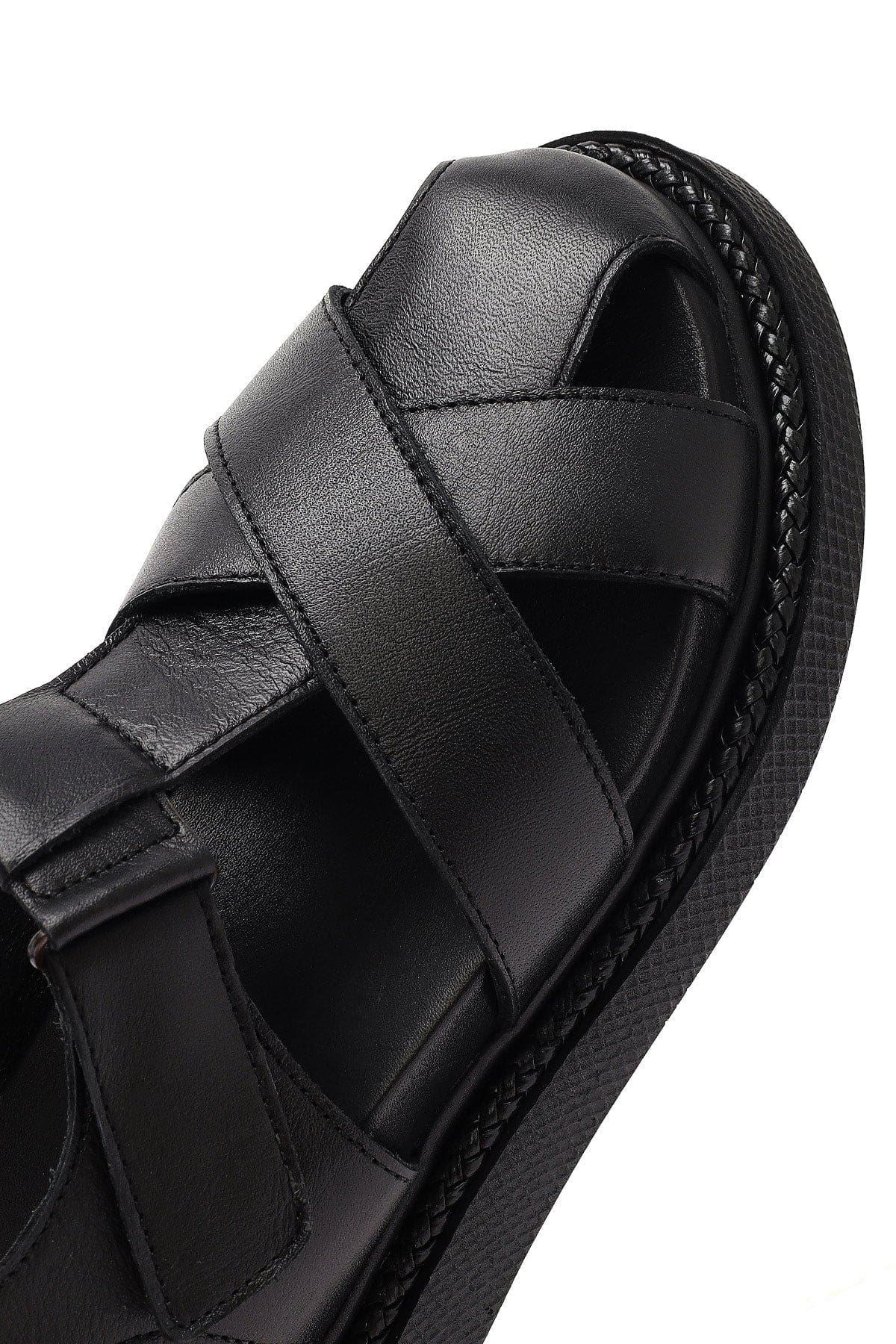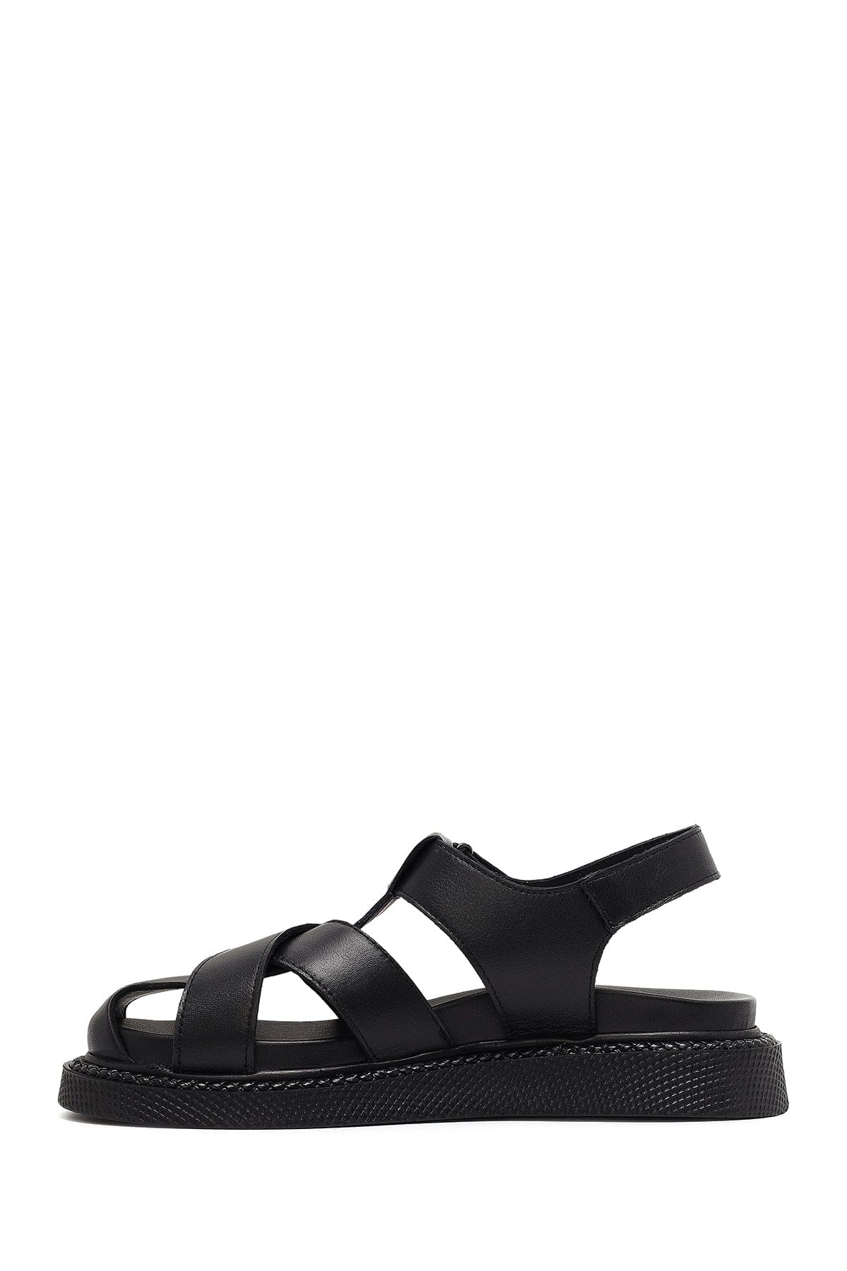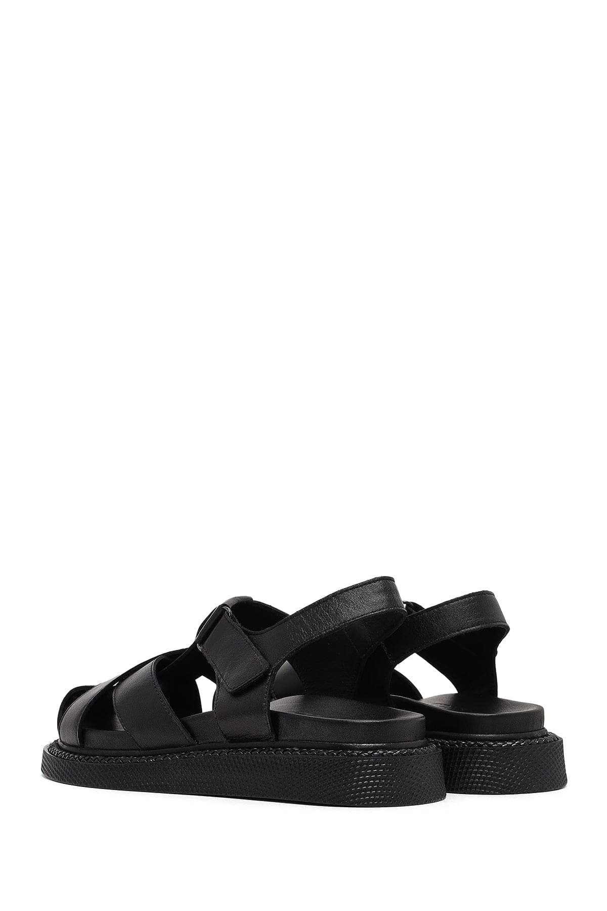 Kadın Siyah Bantlı Kalın Tabanlı Deri Sandalet