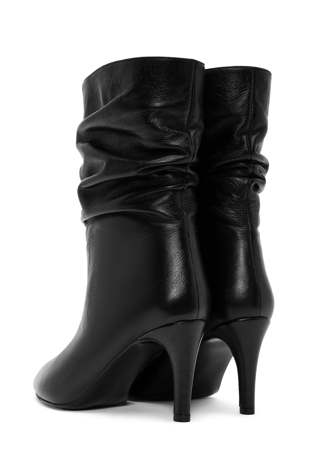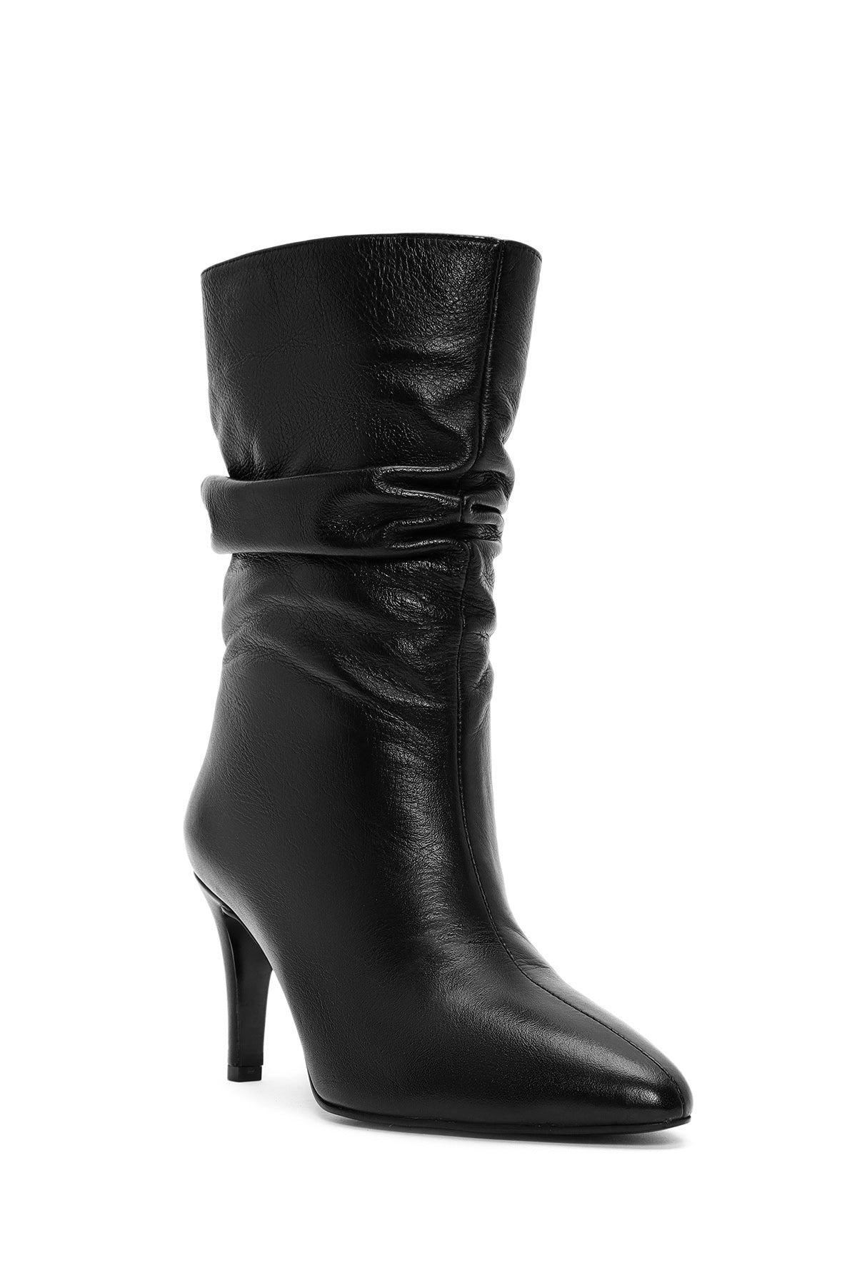 بوت زنانه مشکی چرمی پاشنهدار دری مد