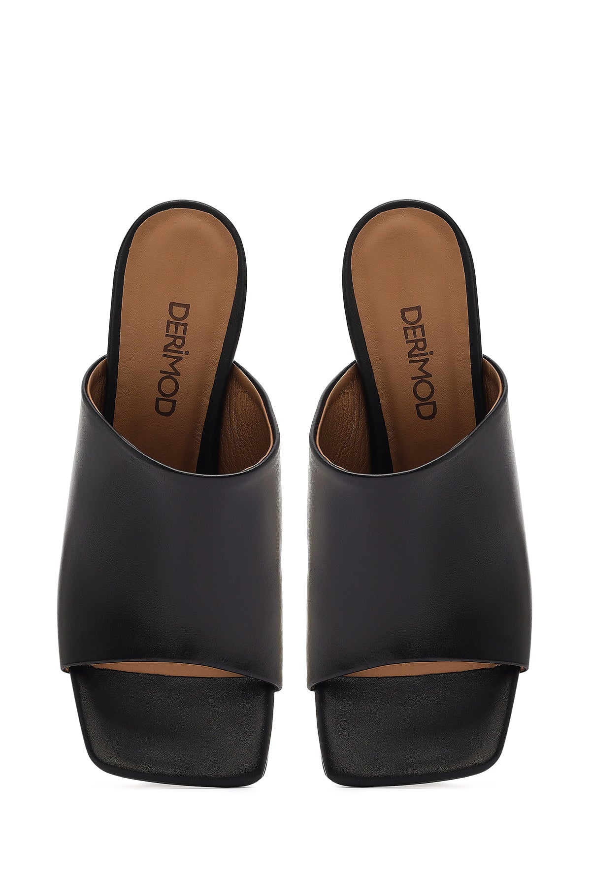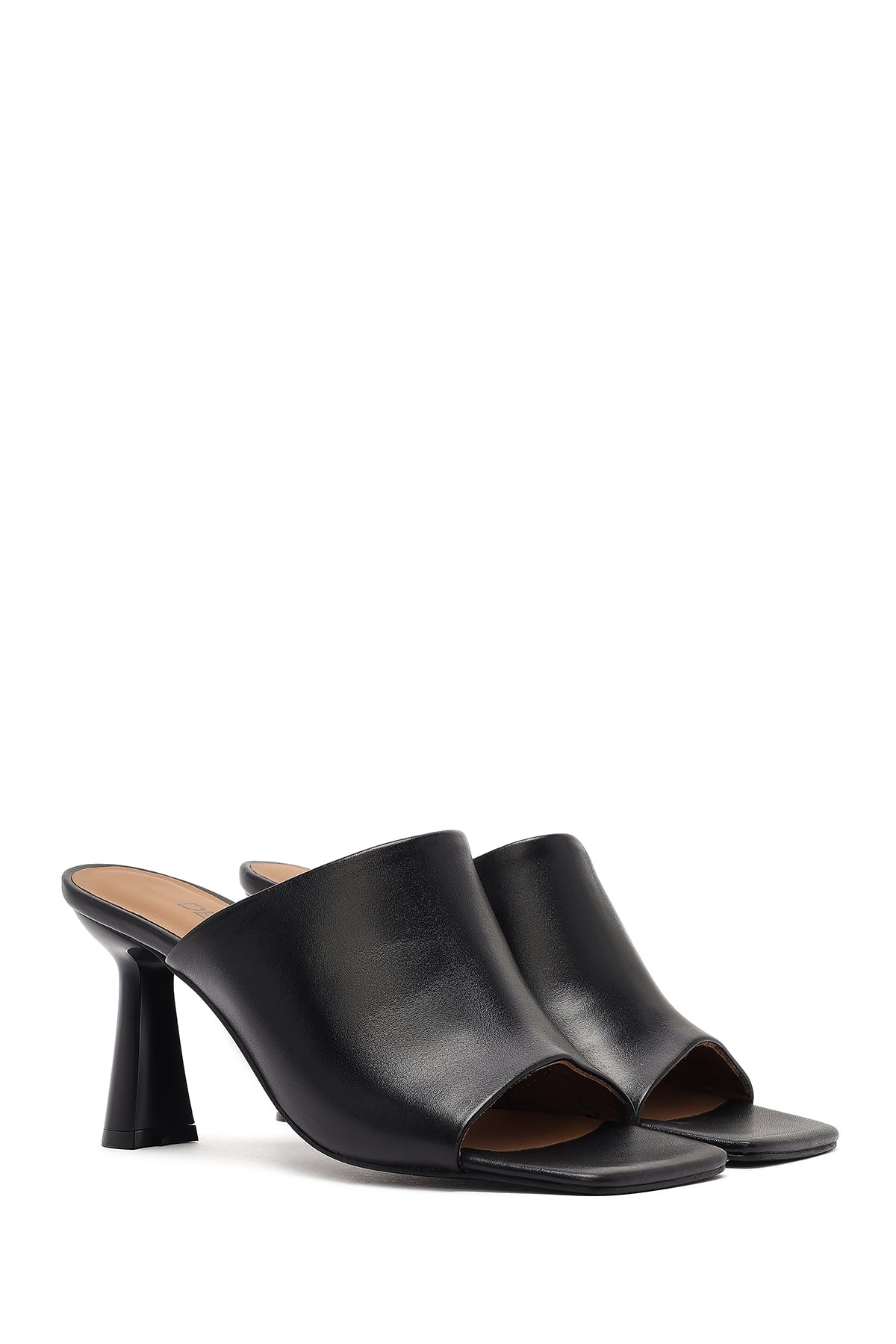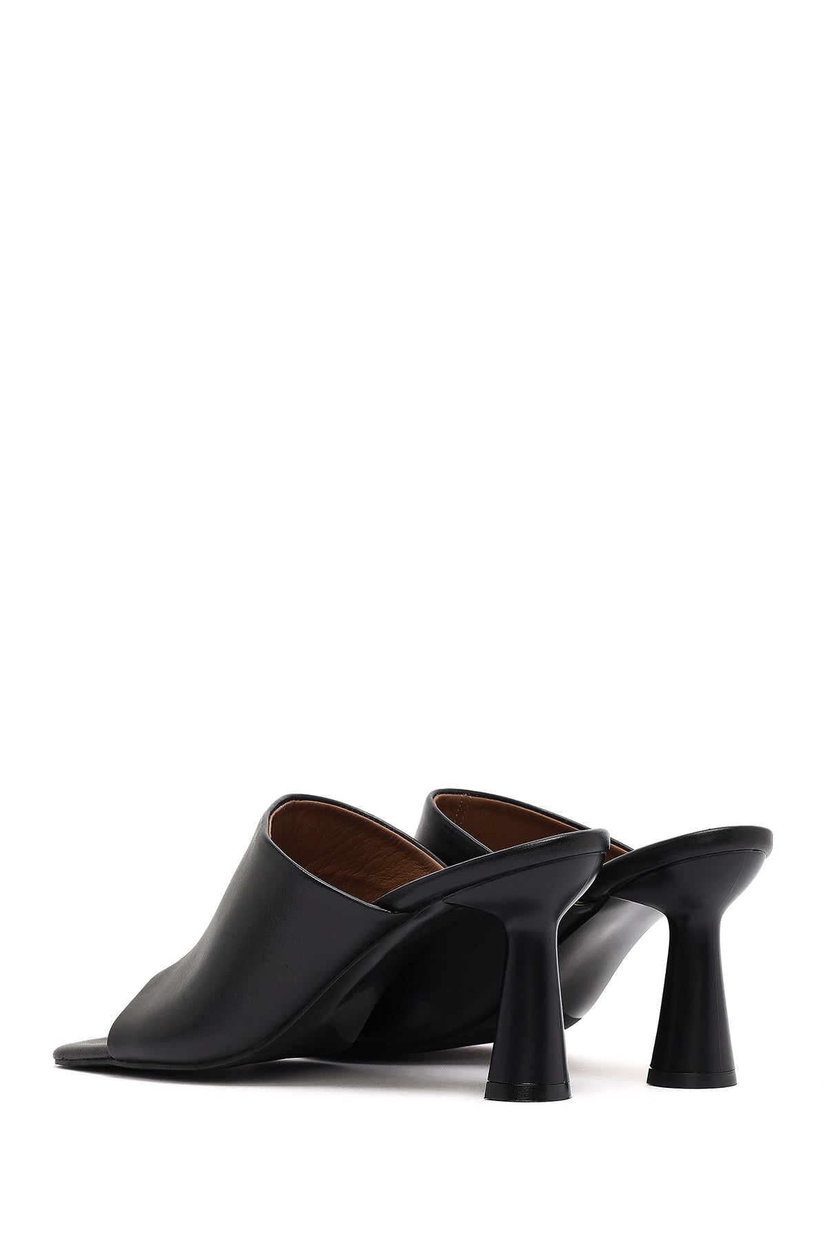 Kadın Siyah Topuklu Deri Terlik