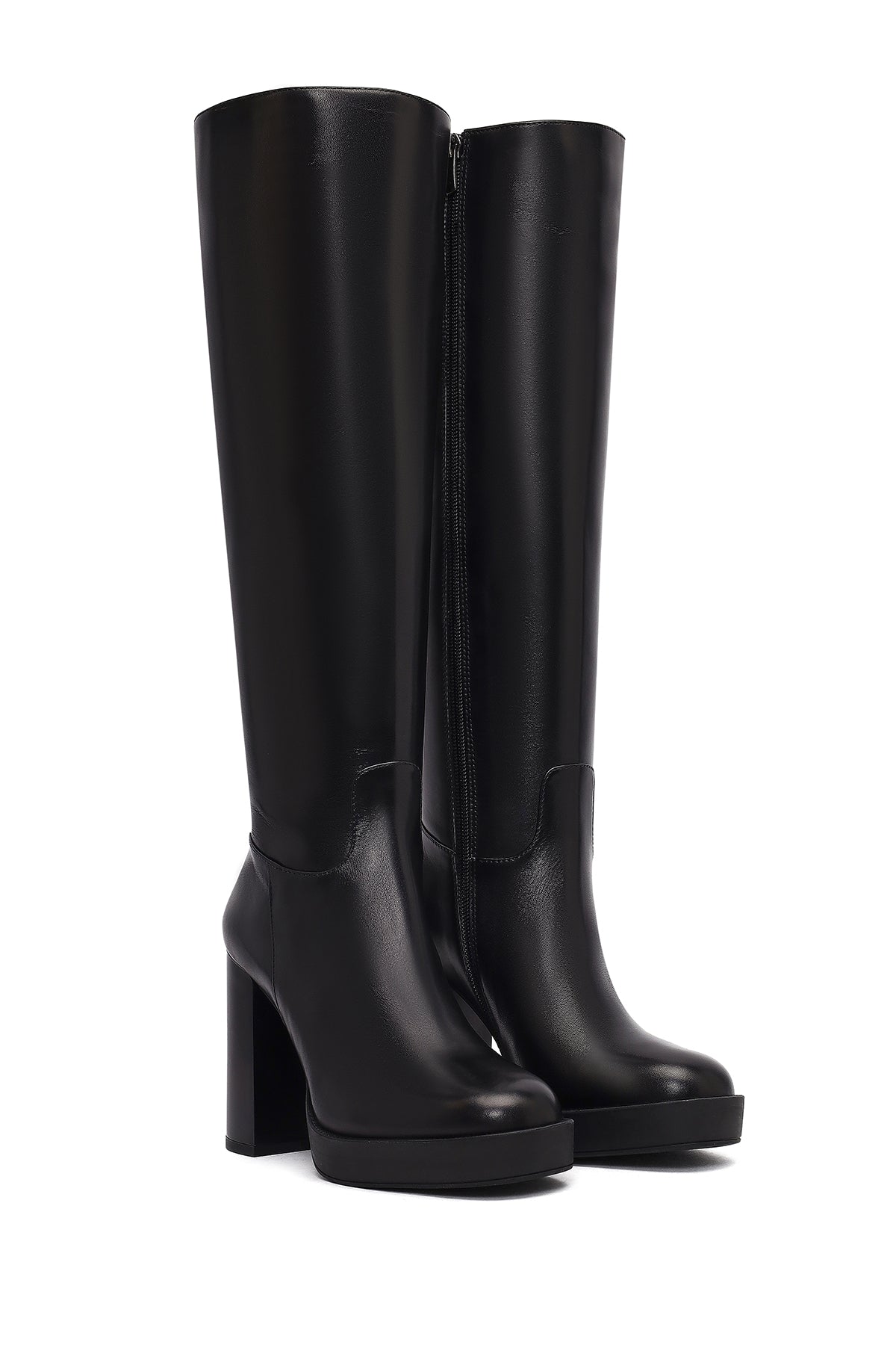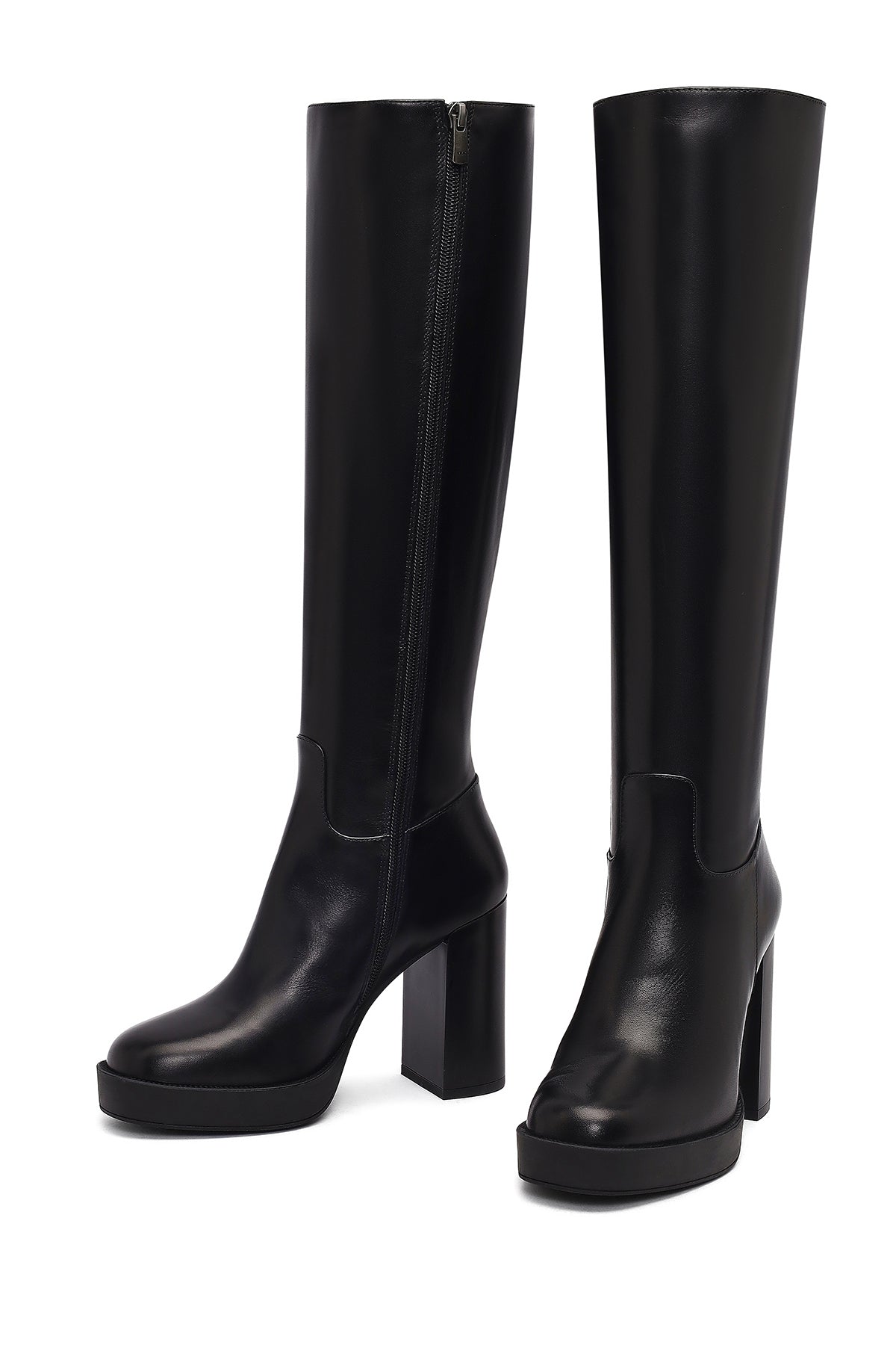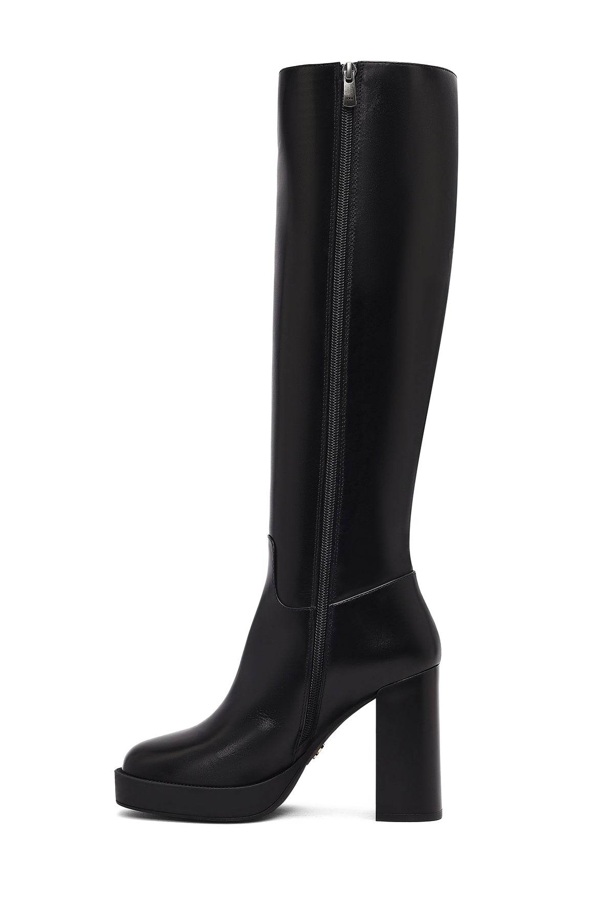 Kadın Siyah Fermuarlı Yüksek Topuklu Deri Çizme