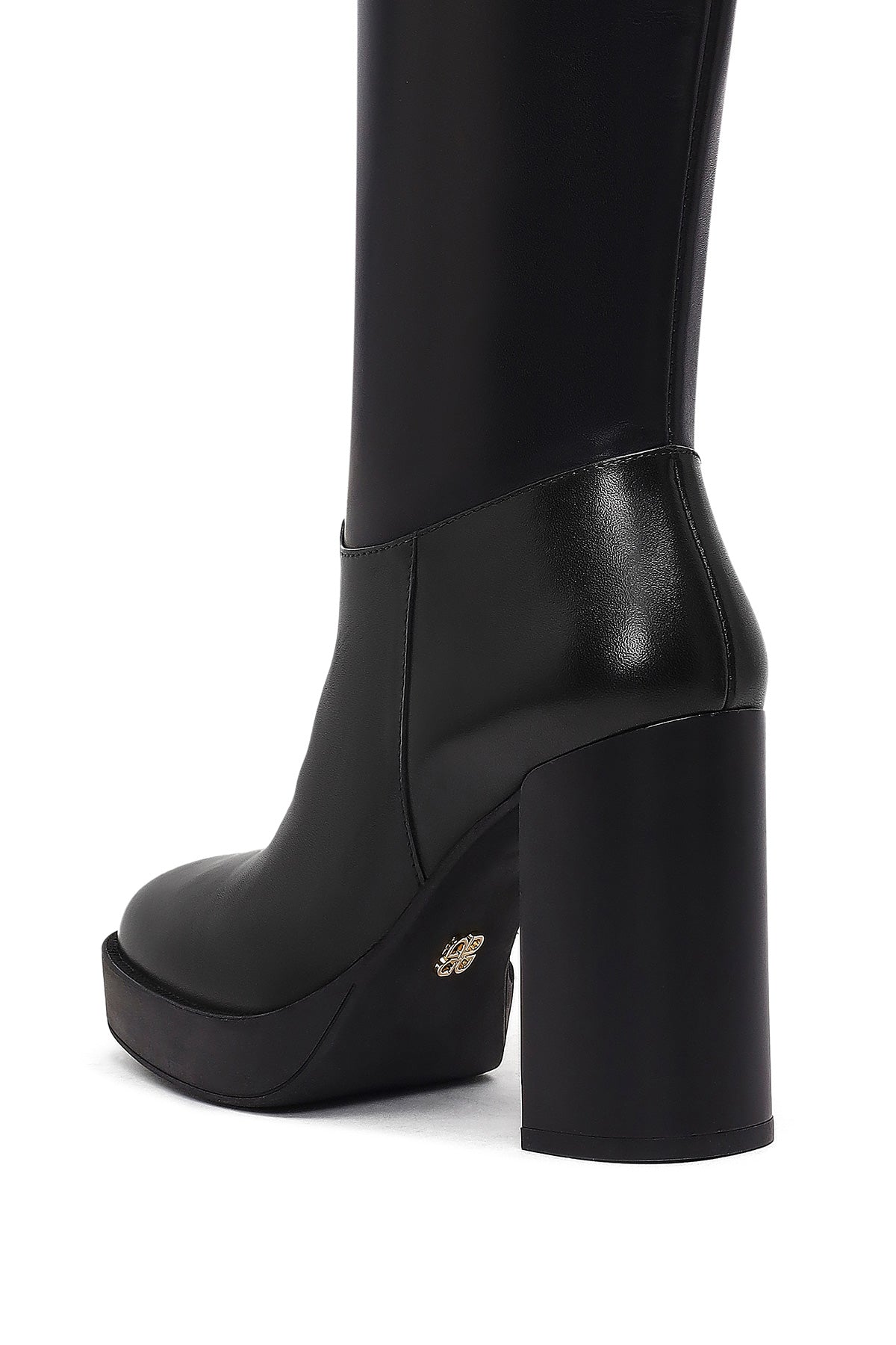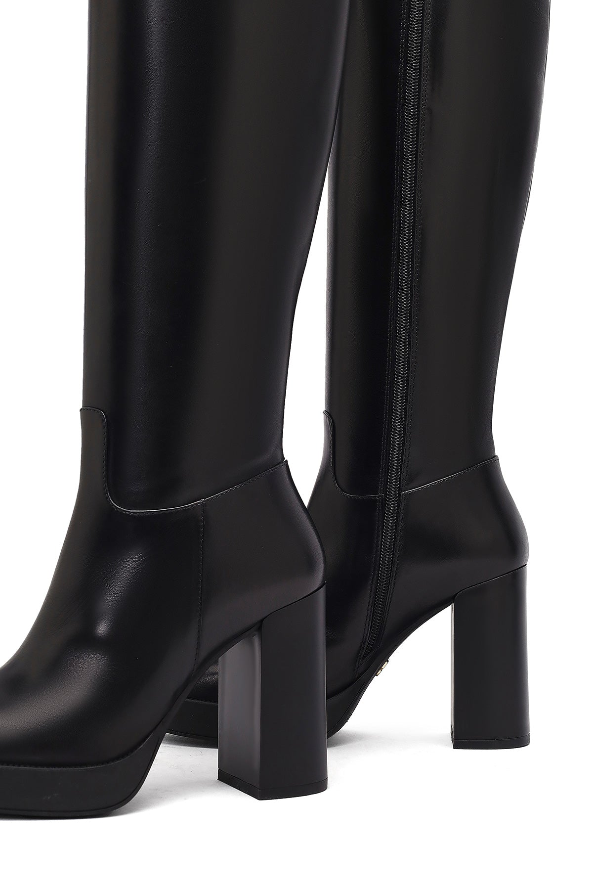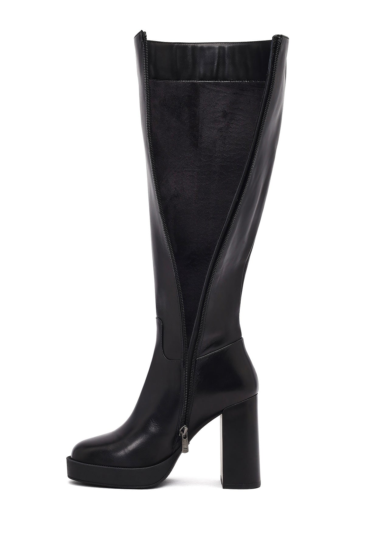 Kadın Siyah Fermuarlı Yüksek Topuklu Deri Çizme