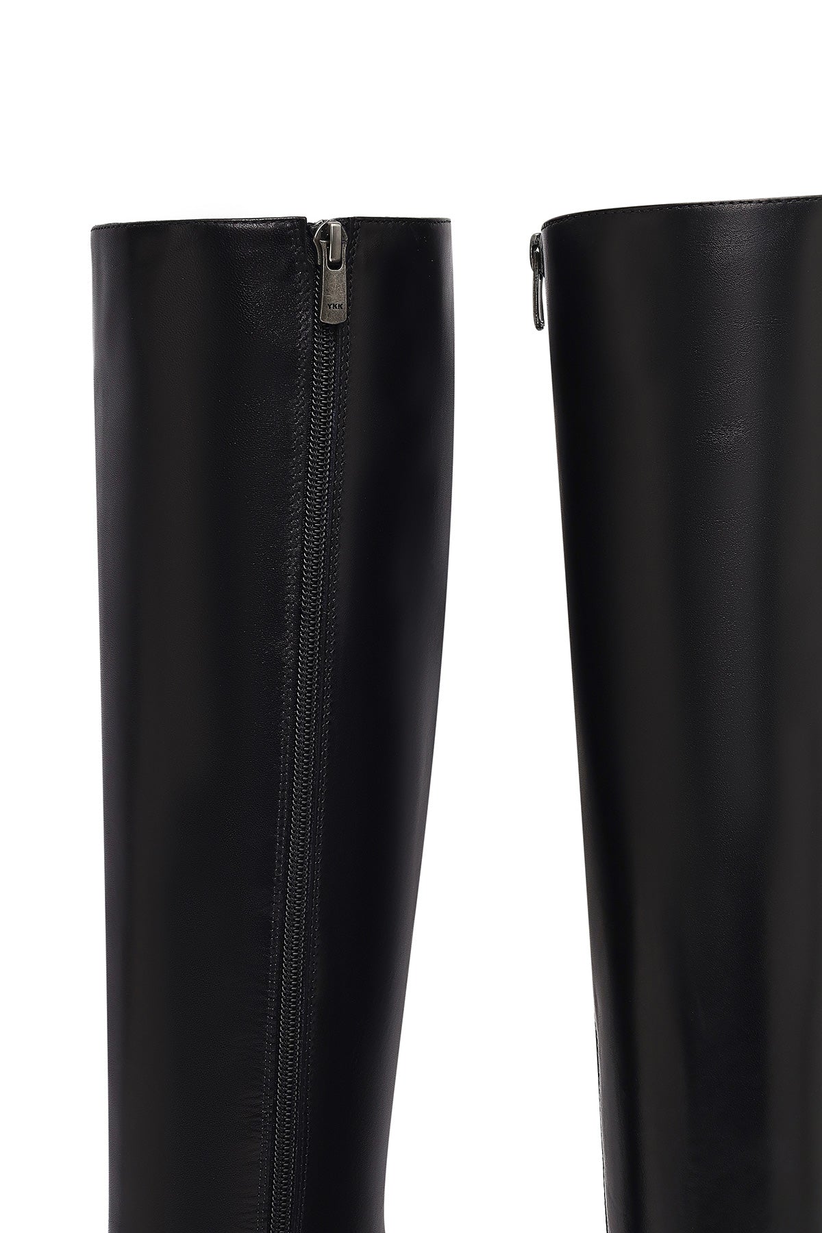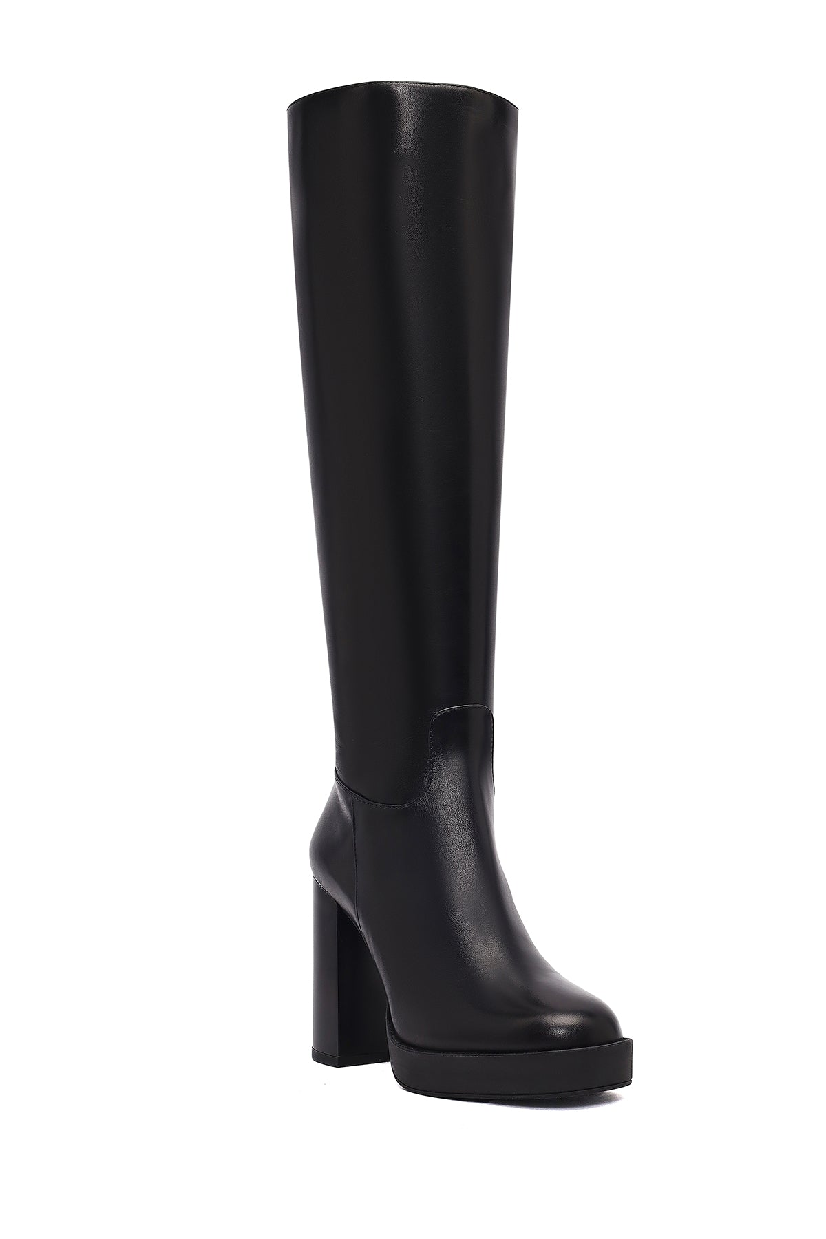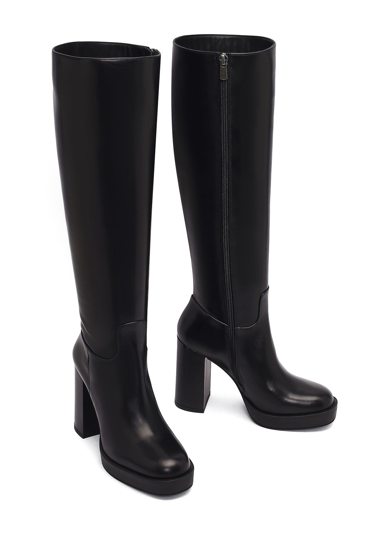 چکمه زنانه چرمی مشکی پاشنهبلند زیپدار دری مد