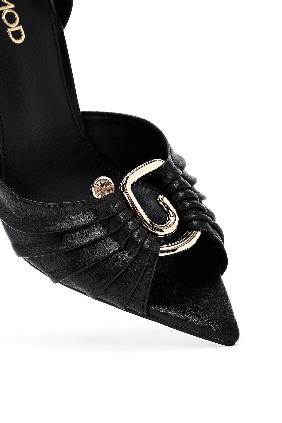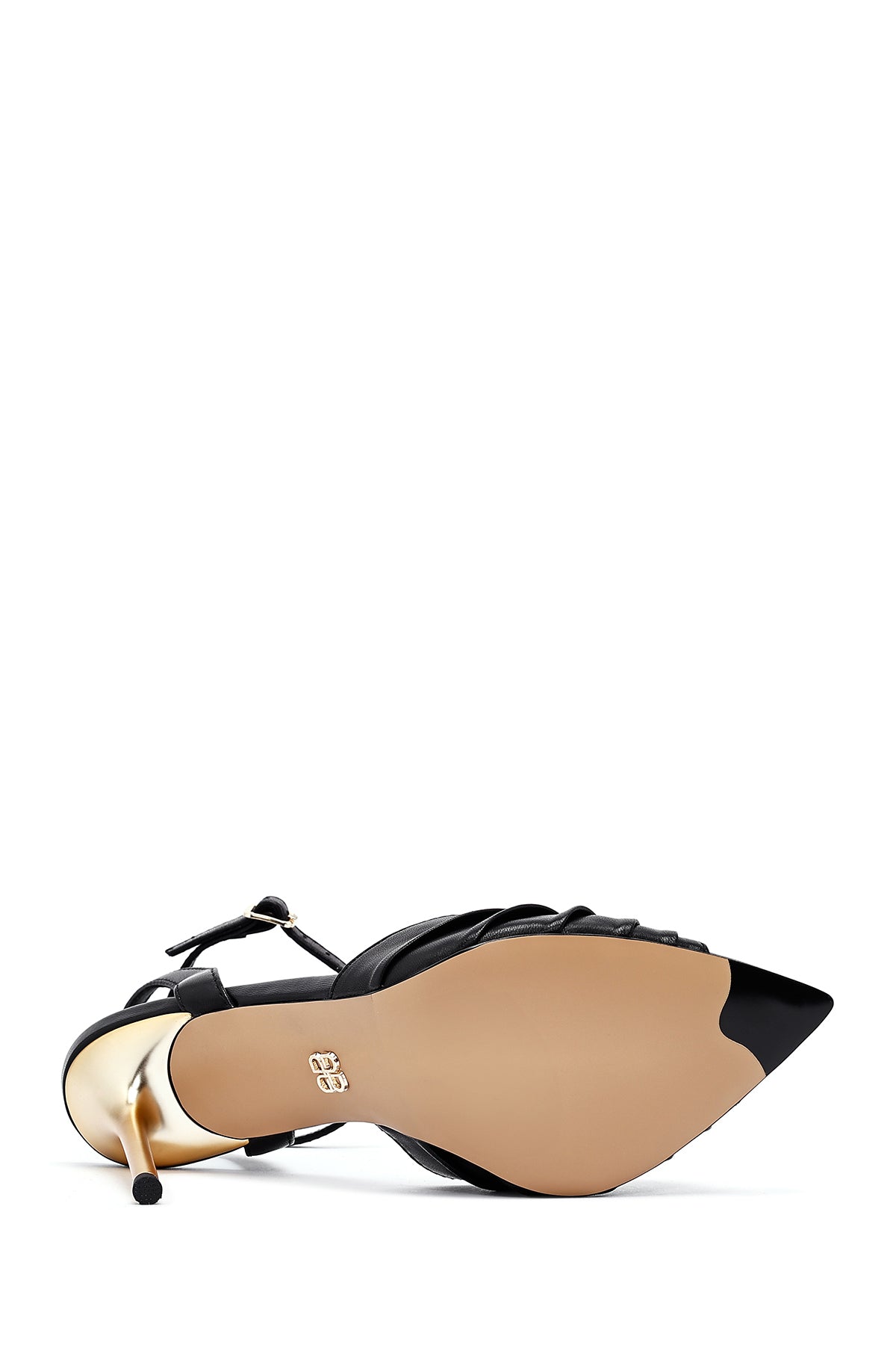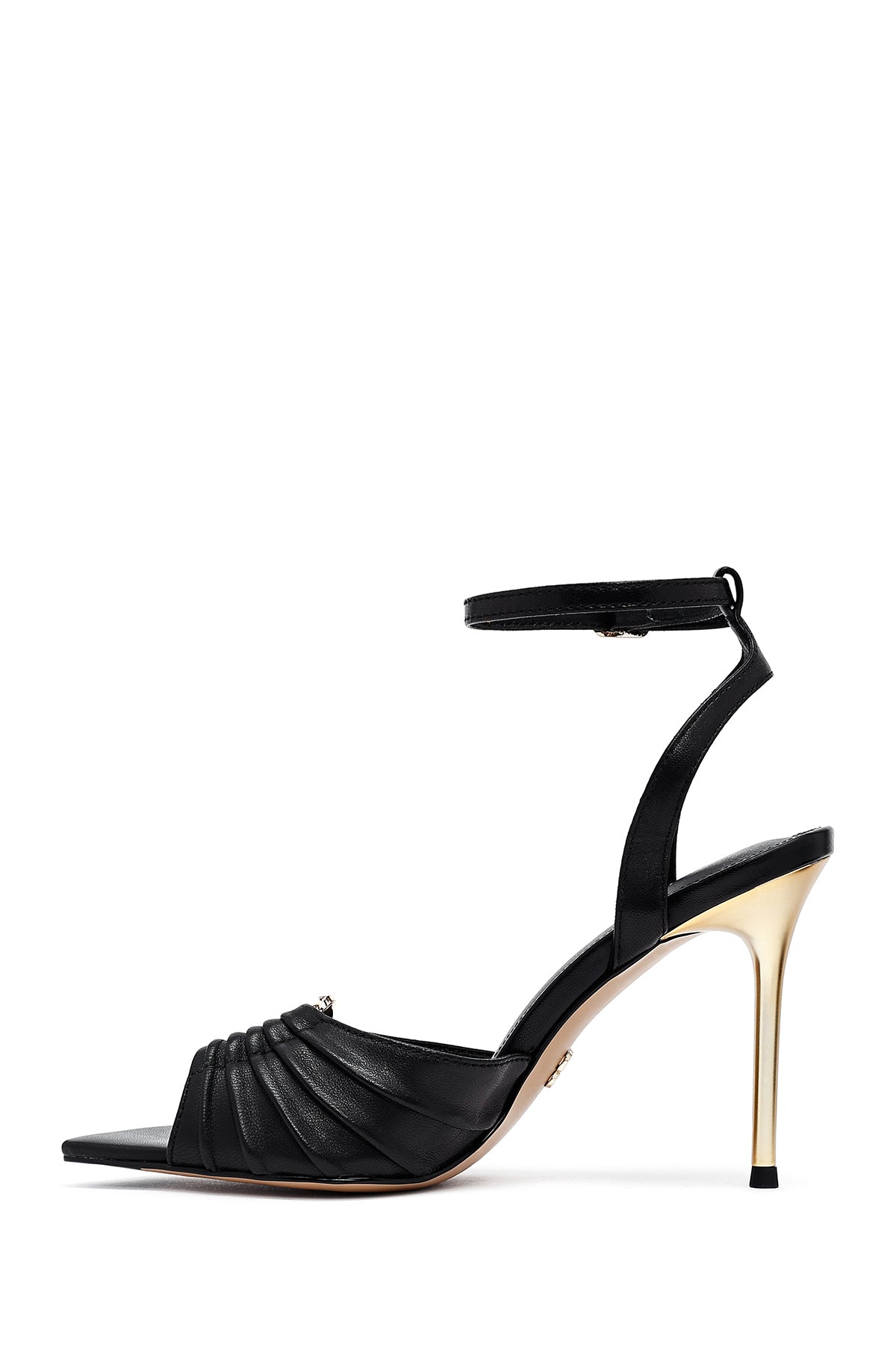 Kadın Siyah Bilekten Tokalı Yüksek İnce Topuklu Deri Sandalet