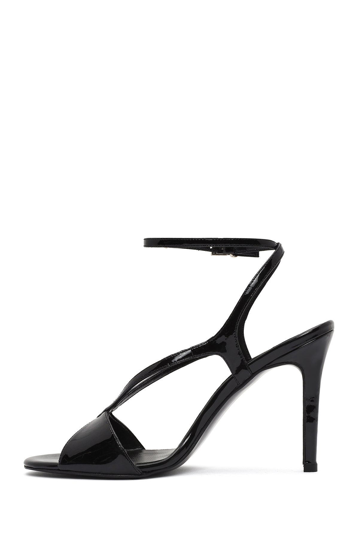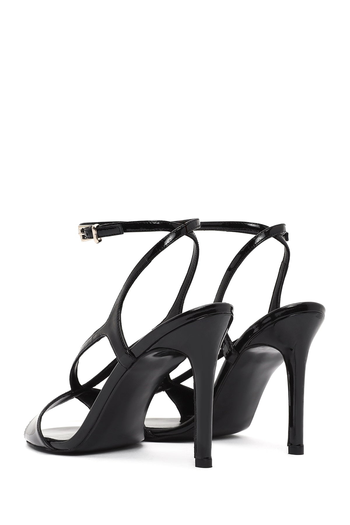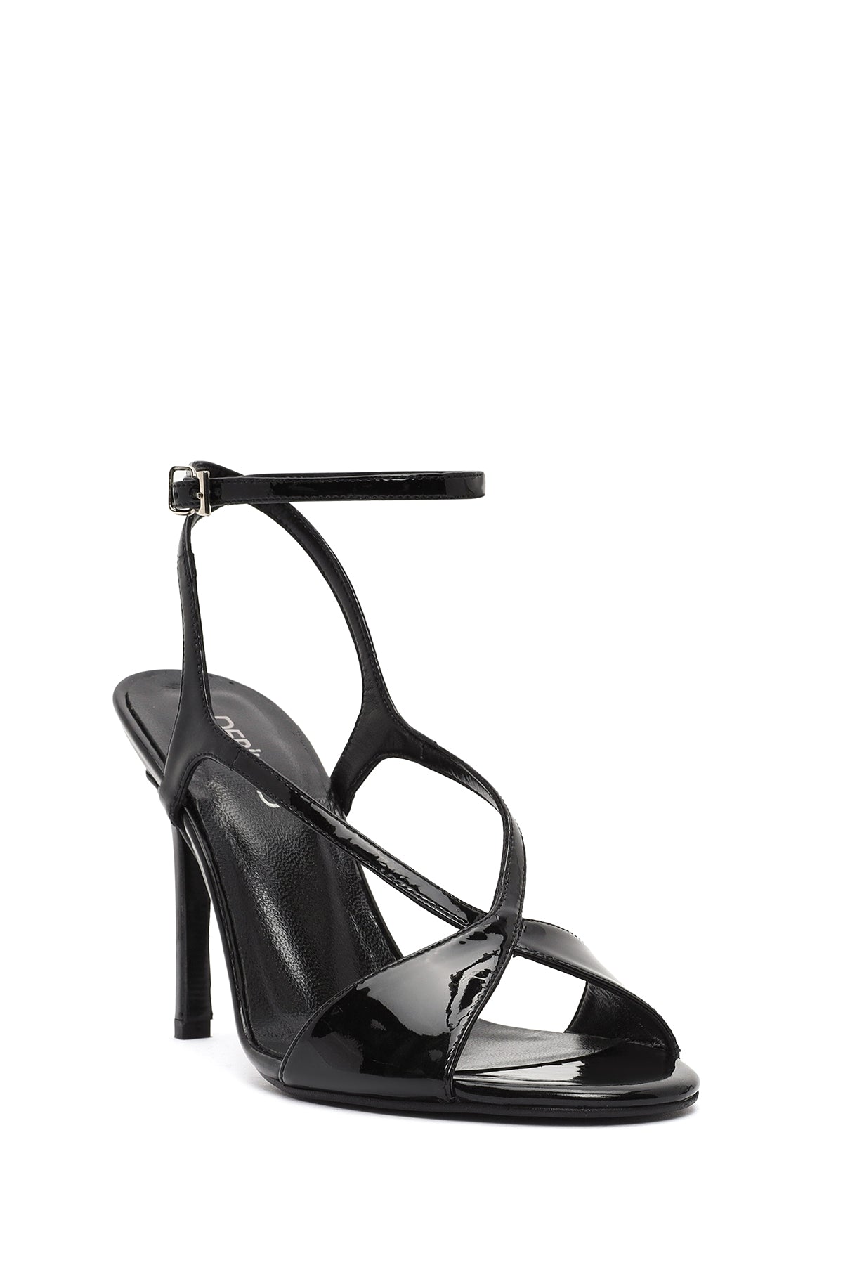 Kadın Siyah Bilekten Bantlı Yüksek İnce Topuklu Deri Sandalet