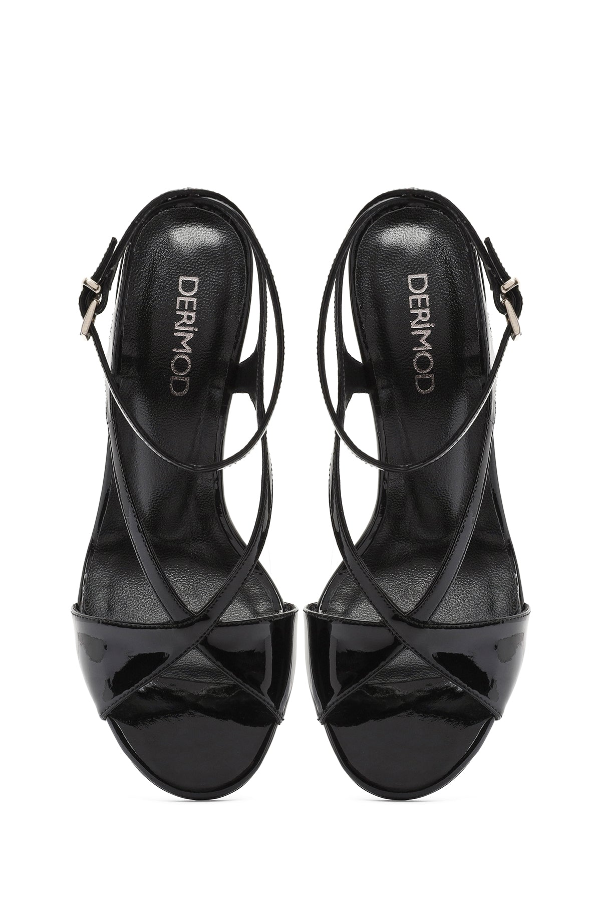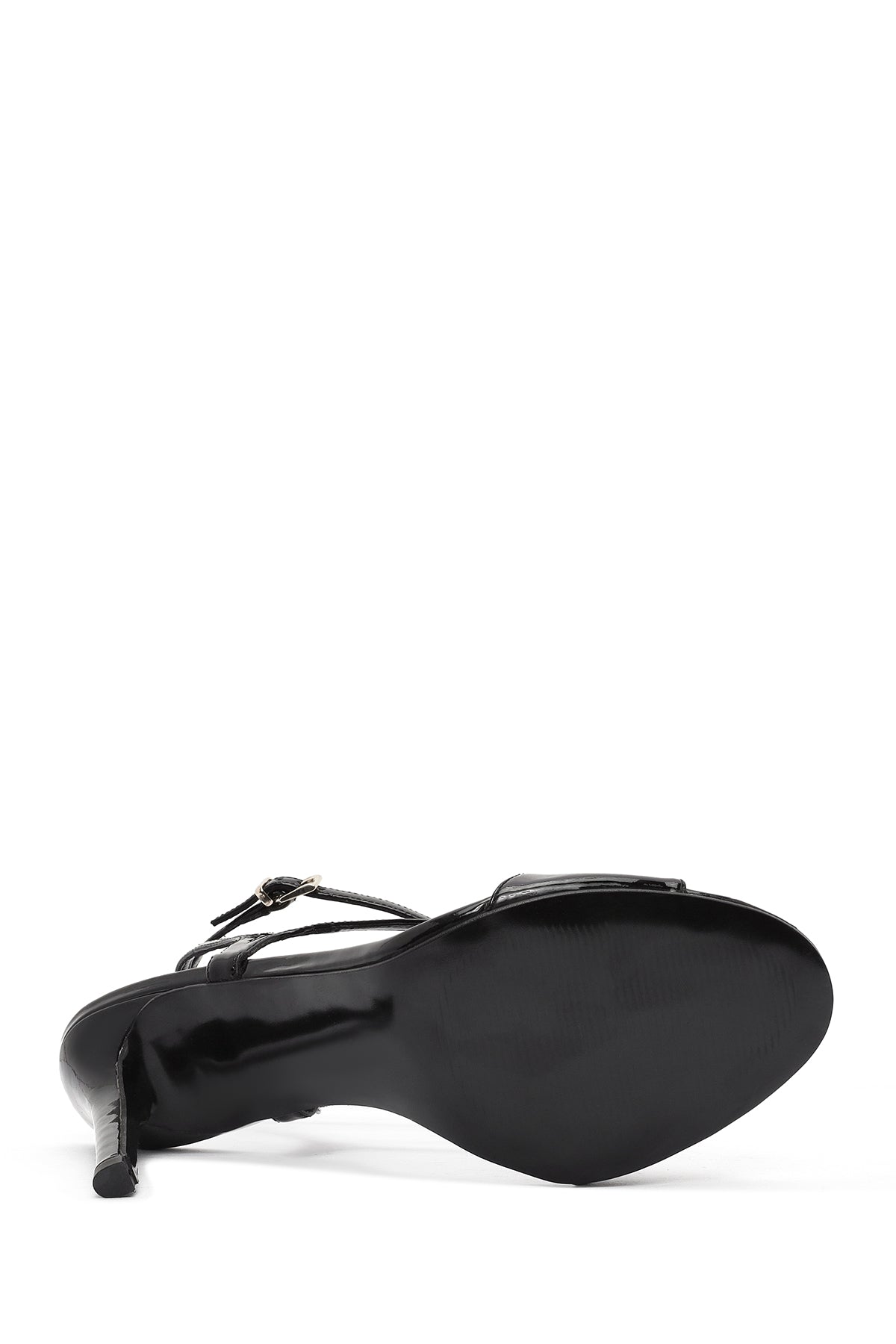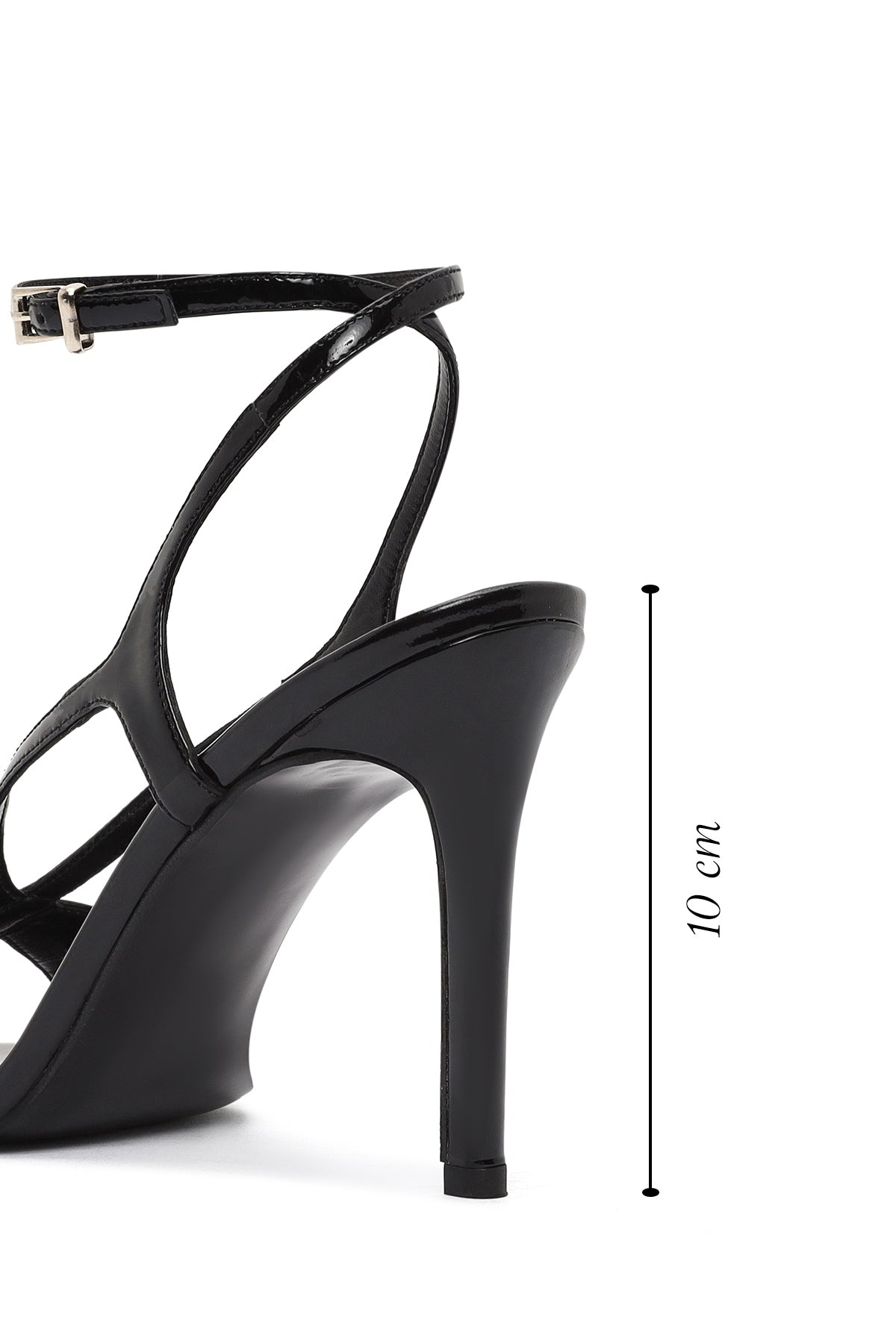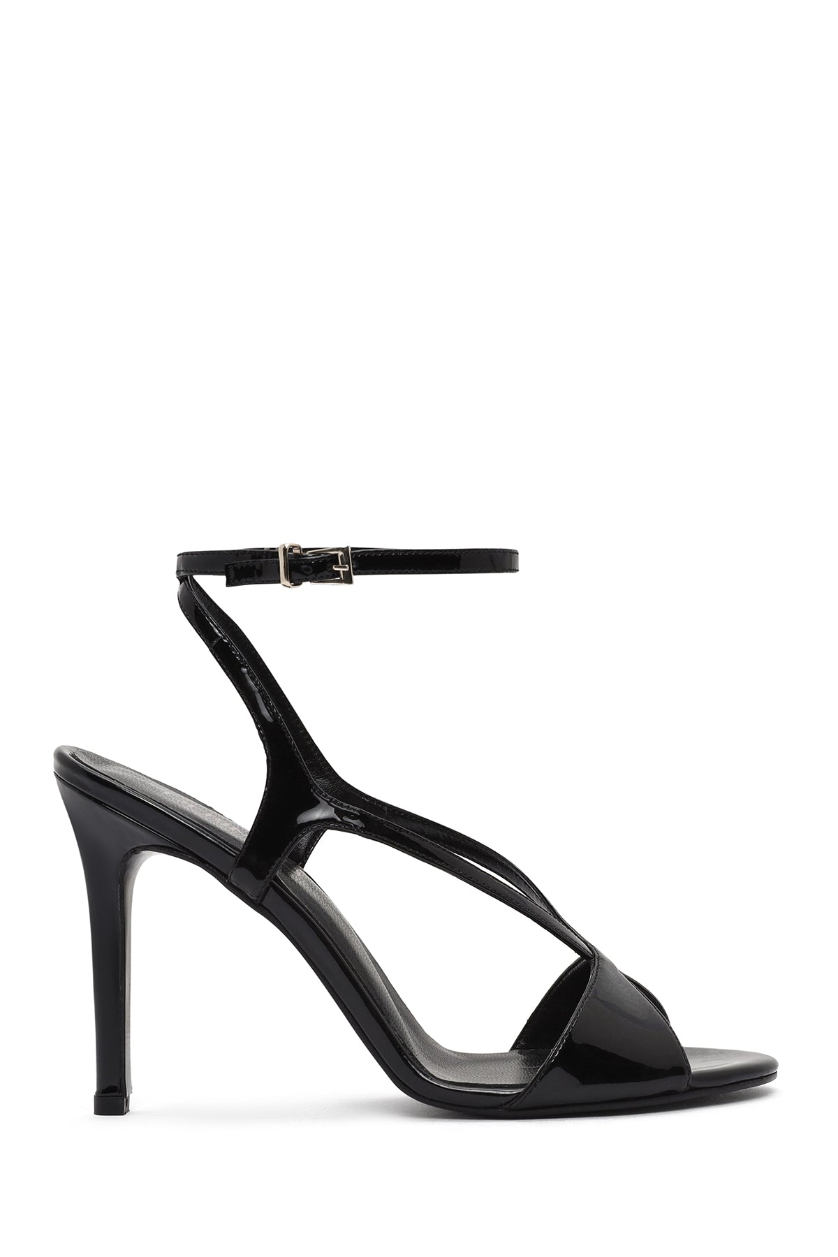 Kadın Siyah Bilekten Bantlı Yüksek İnce Topuklu Deri Sandalet