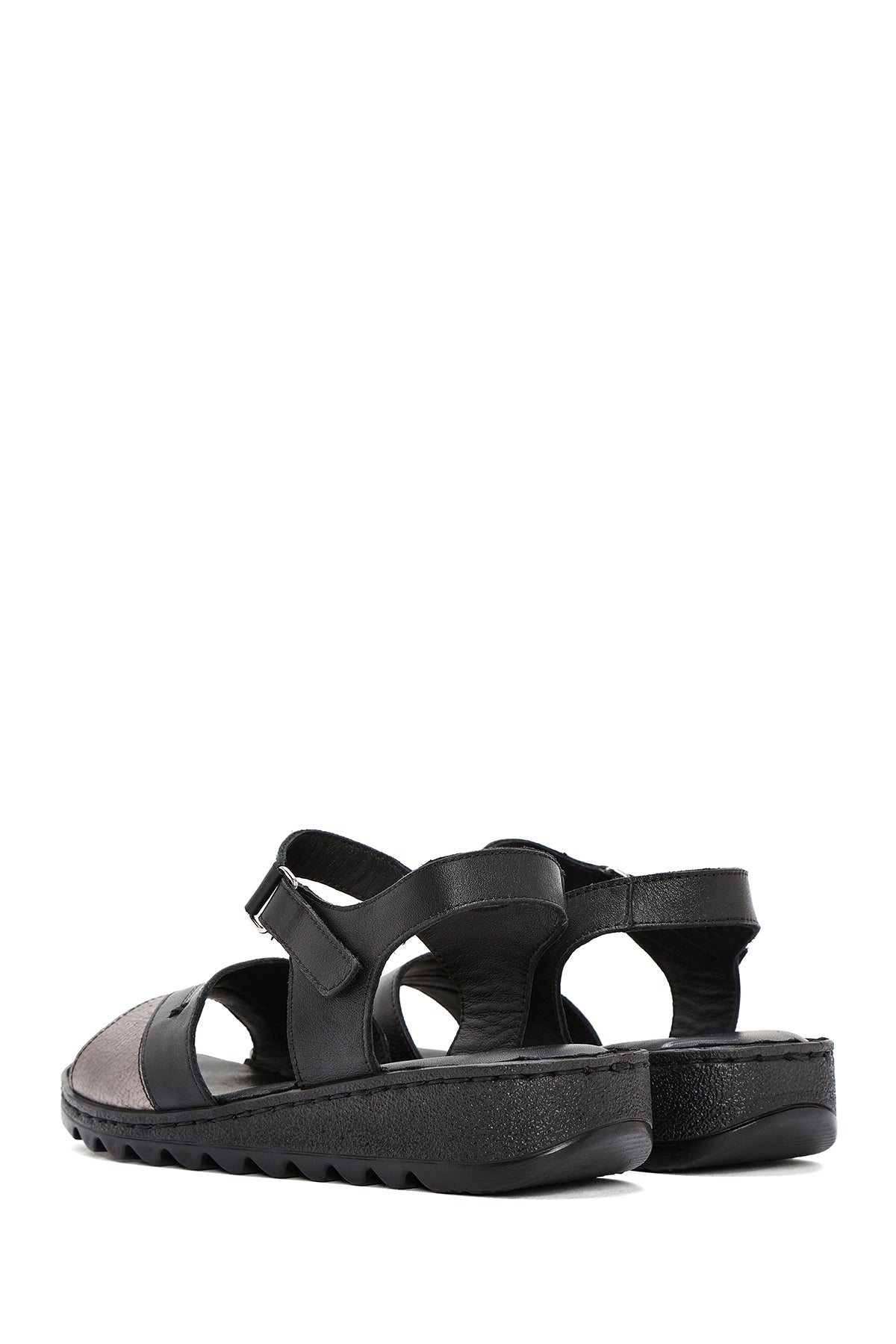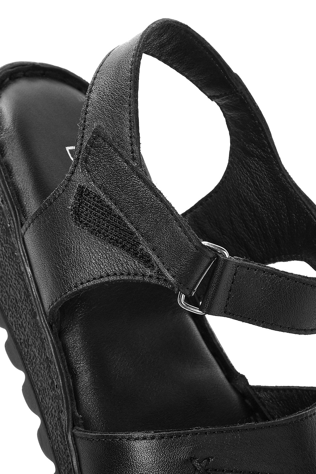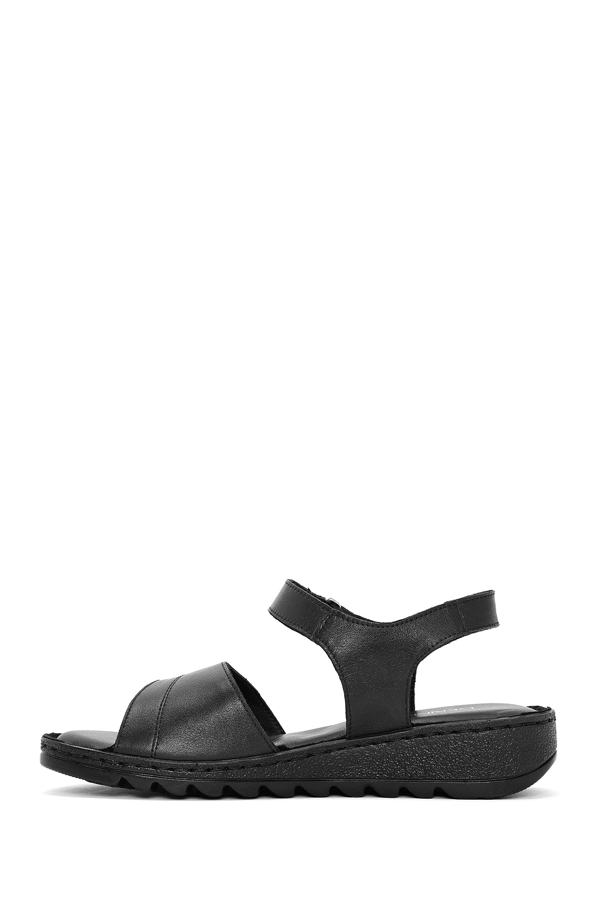 Kadın Siyah Bilekten Bağlamalı Comfort Deri Sandalet