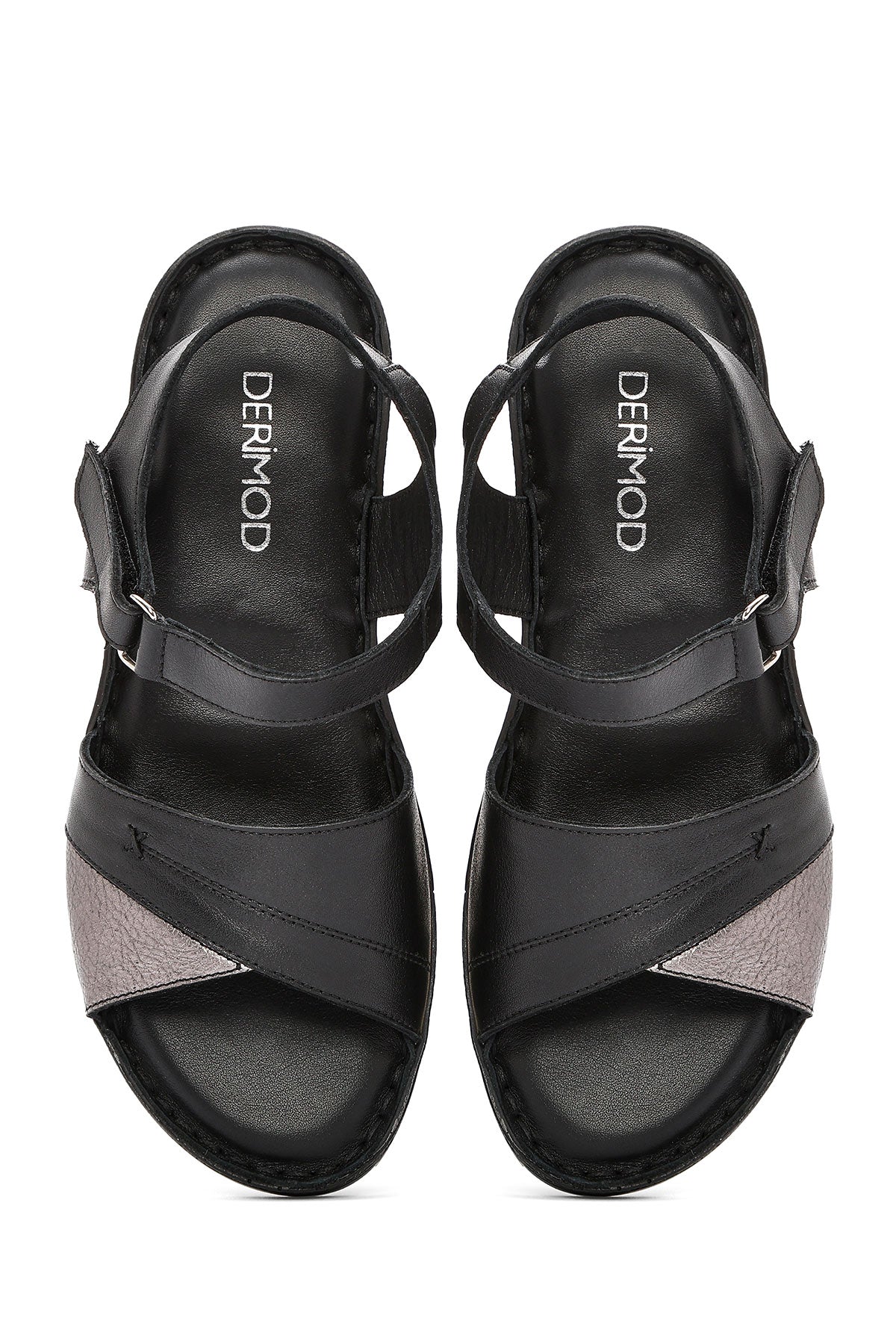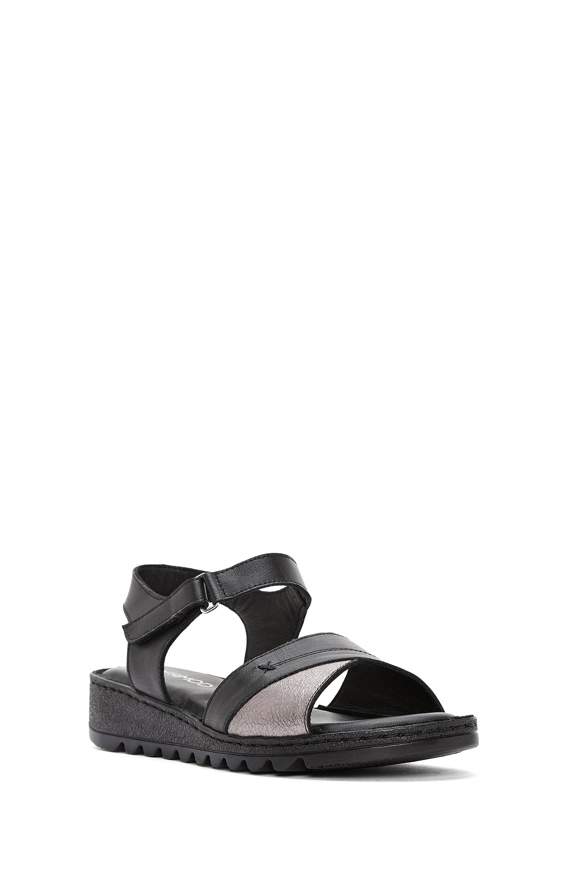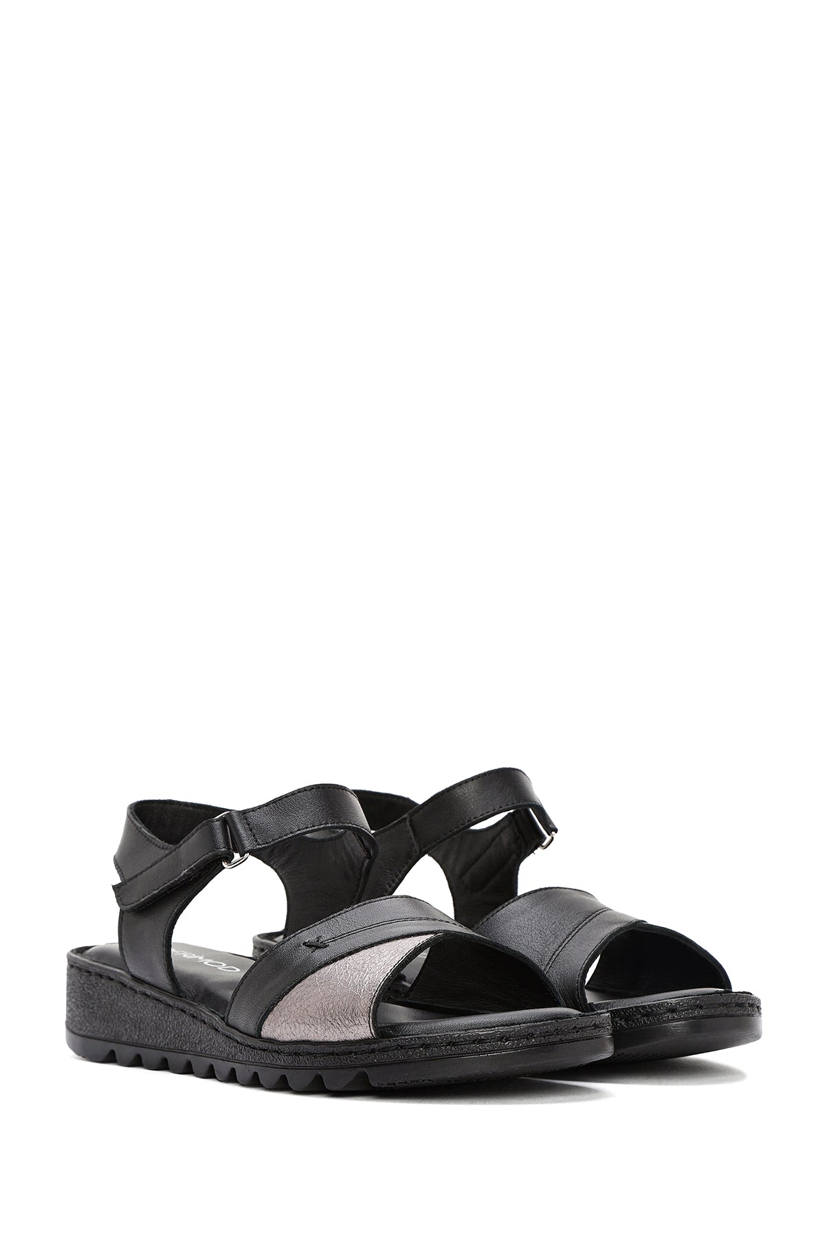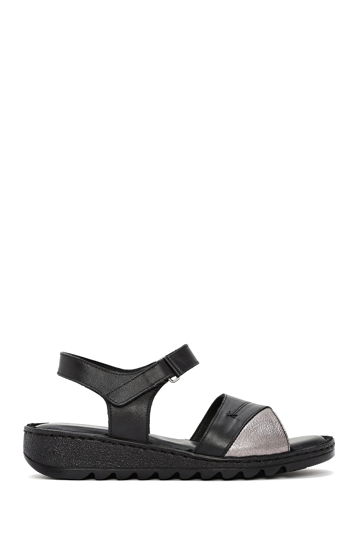 Kadın Siyah Bilekten Bağlamalı Comfort Deri Sandalet