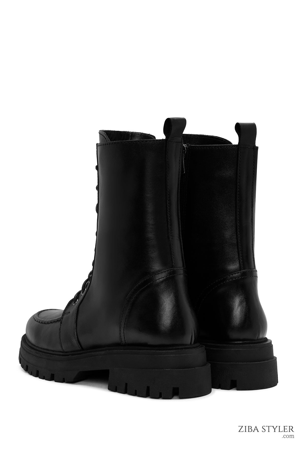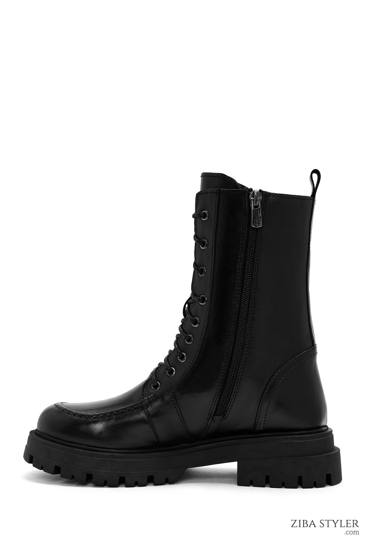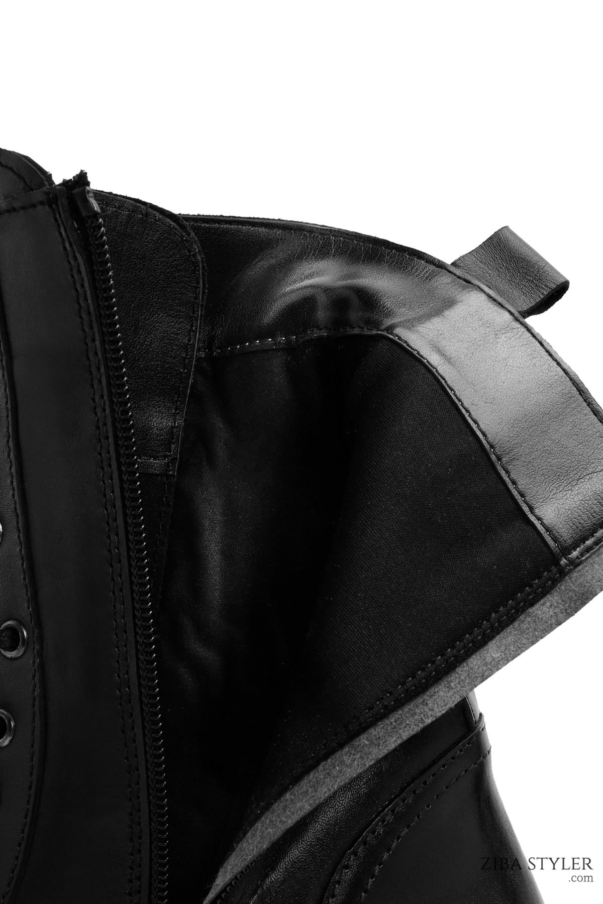 پوتین زنانه چرمی مشکی بندی زیپدار دری مد