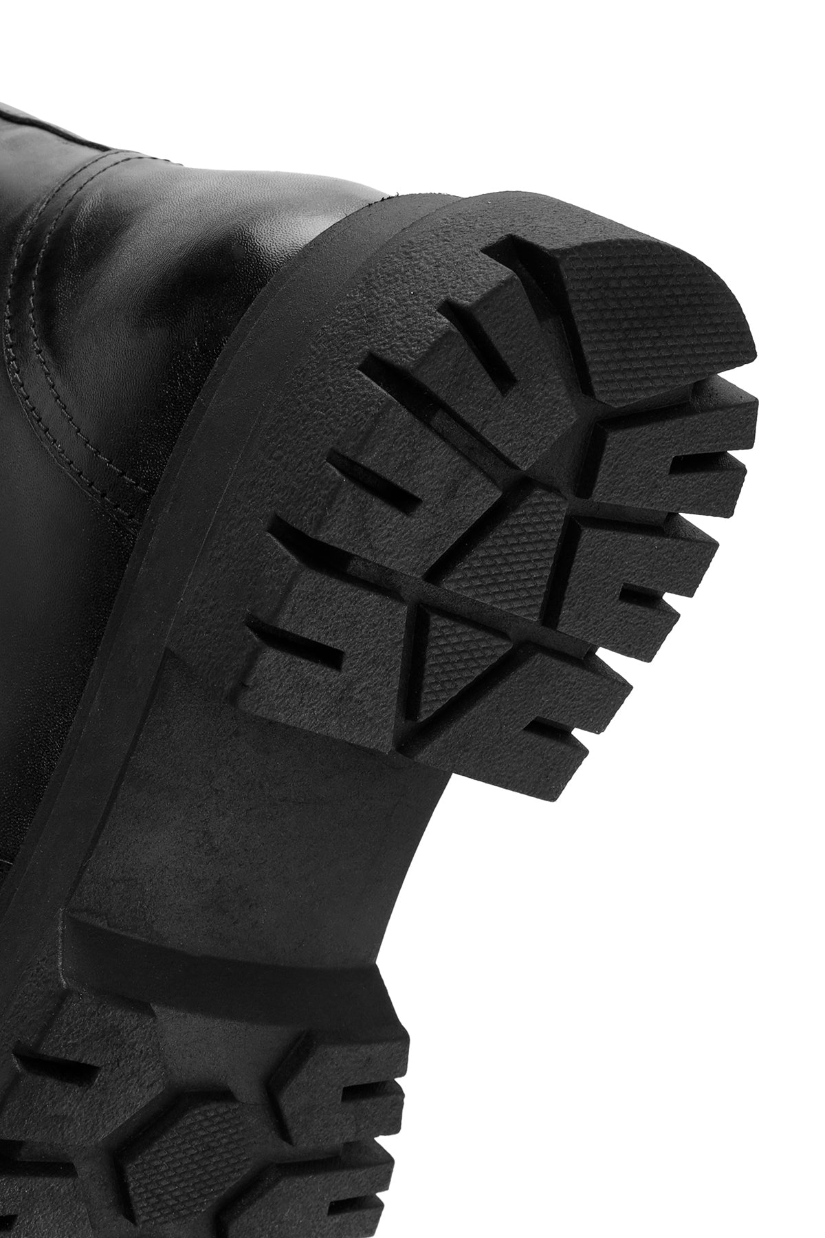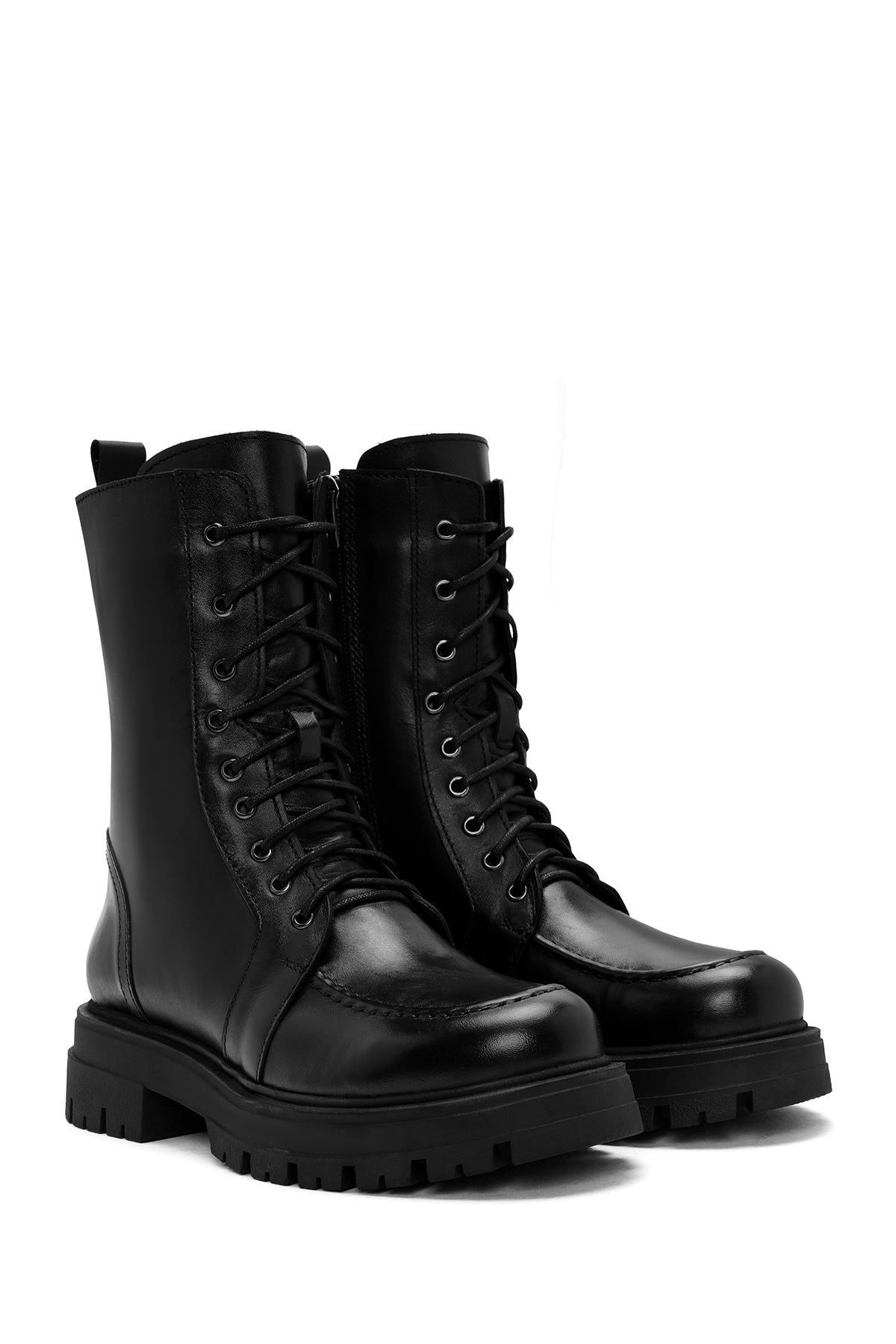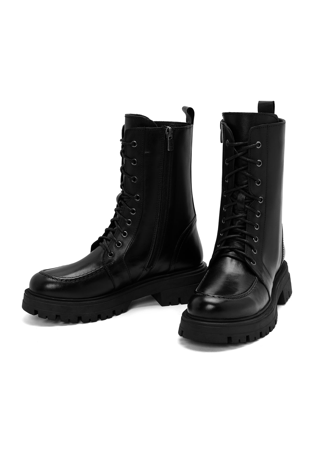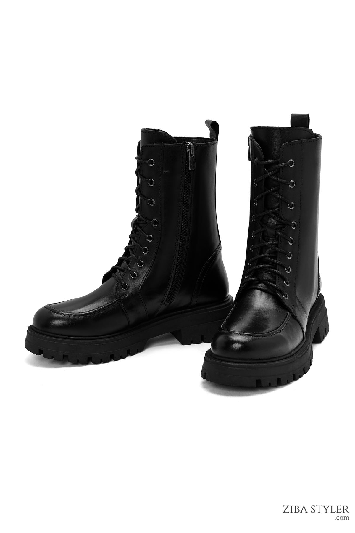 پوتین زنانه چرمی مشکی بندی زیپدار دری مد
