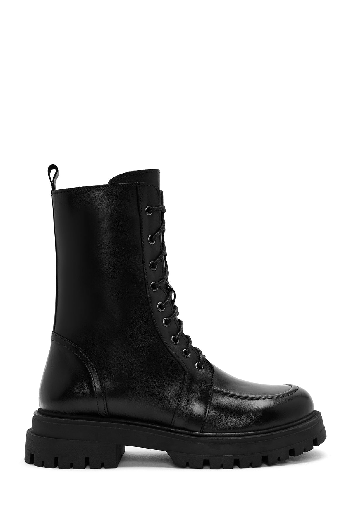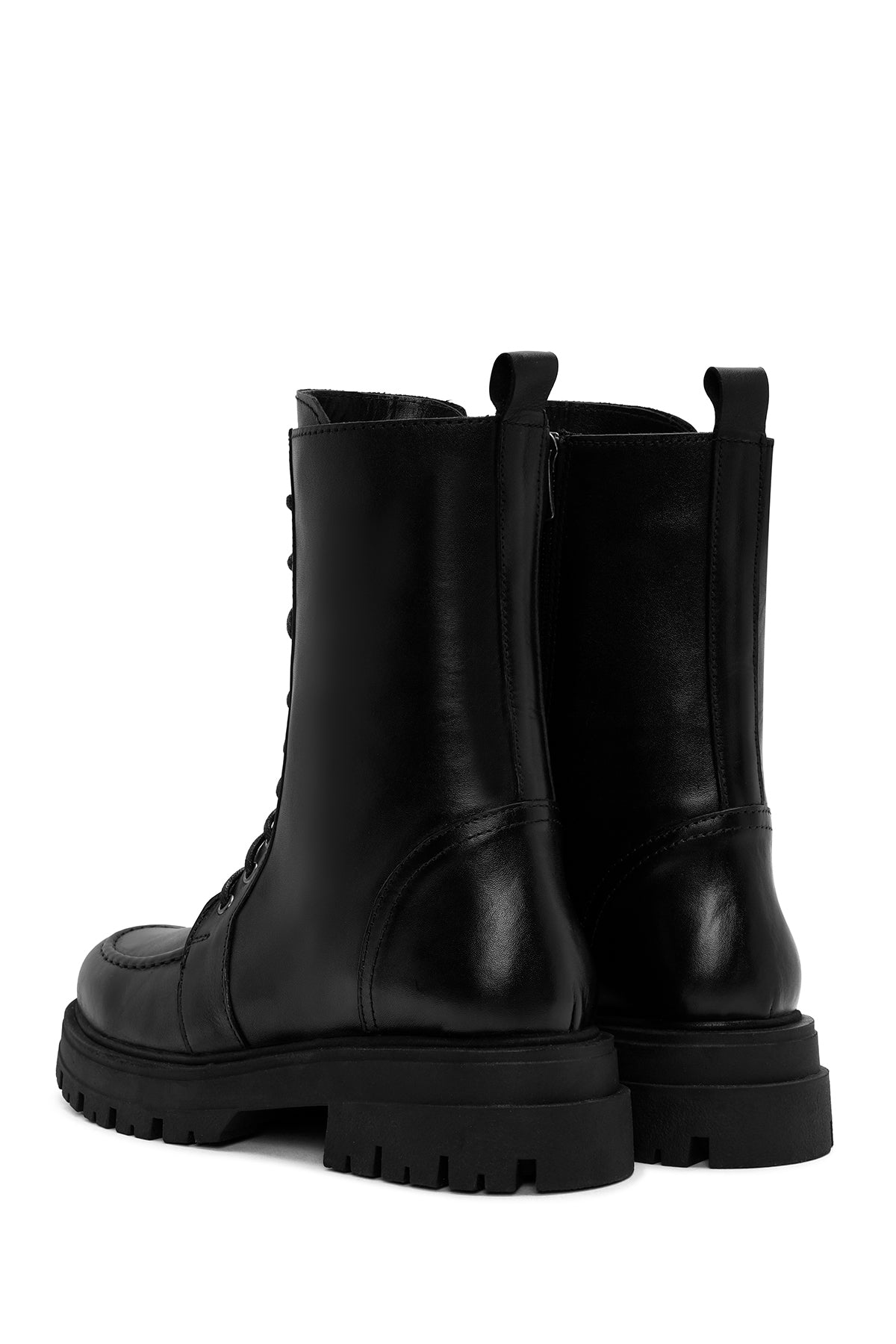 Kadın Siyah Bağcıklı Fermuar Detaylı Deri Postal Bot