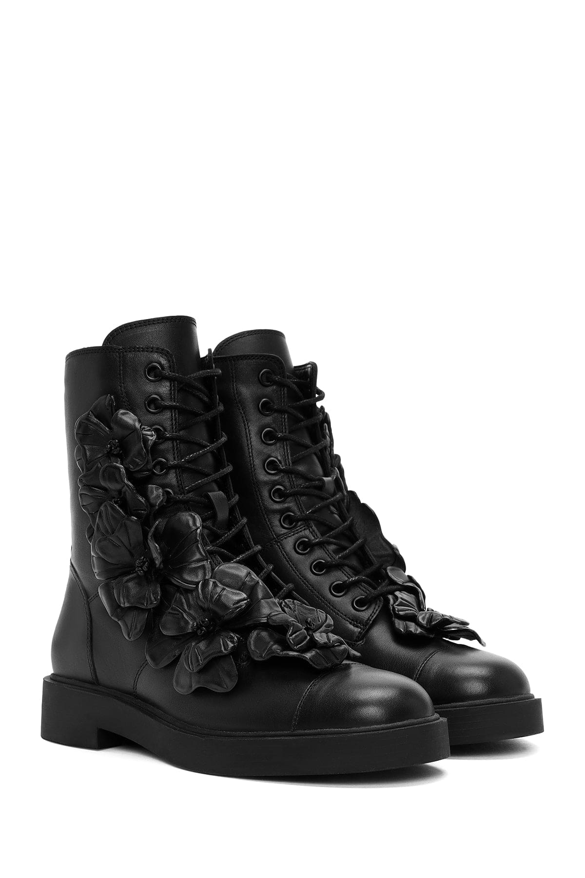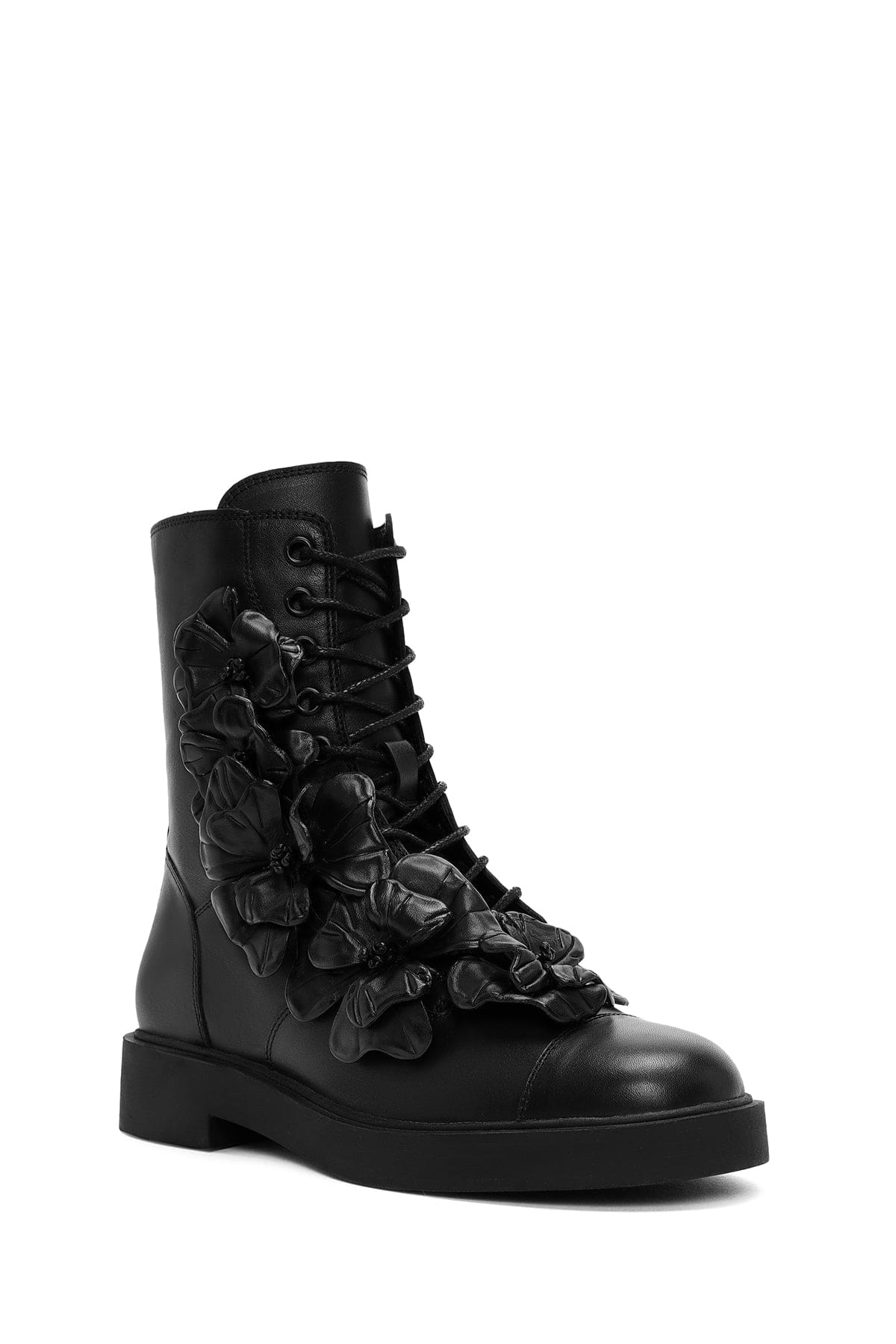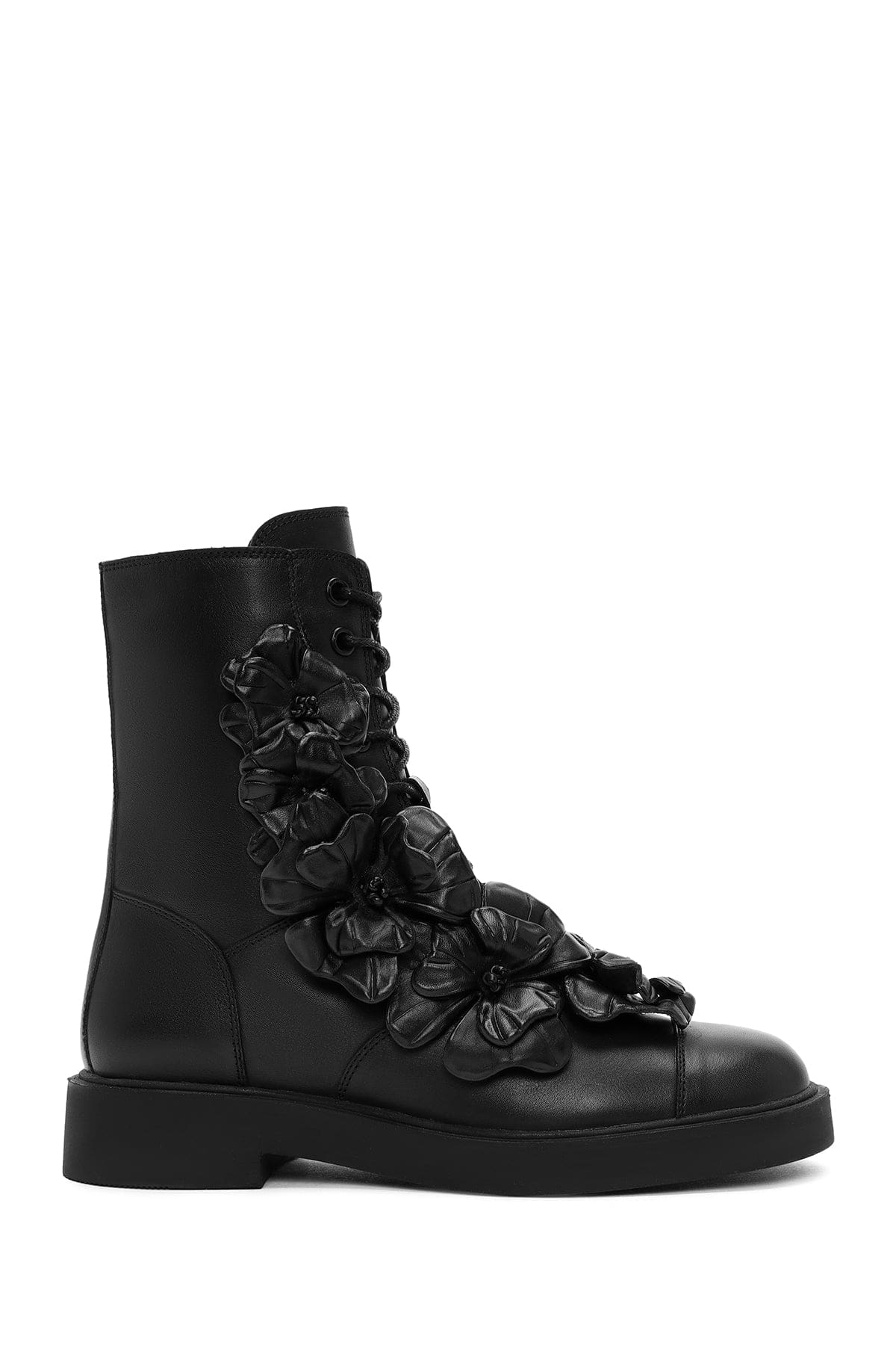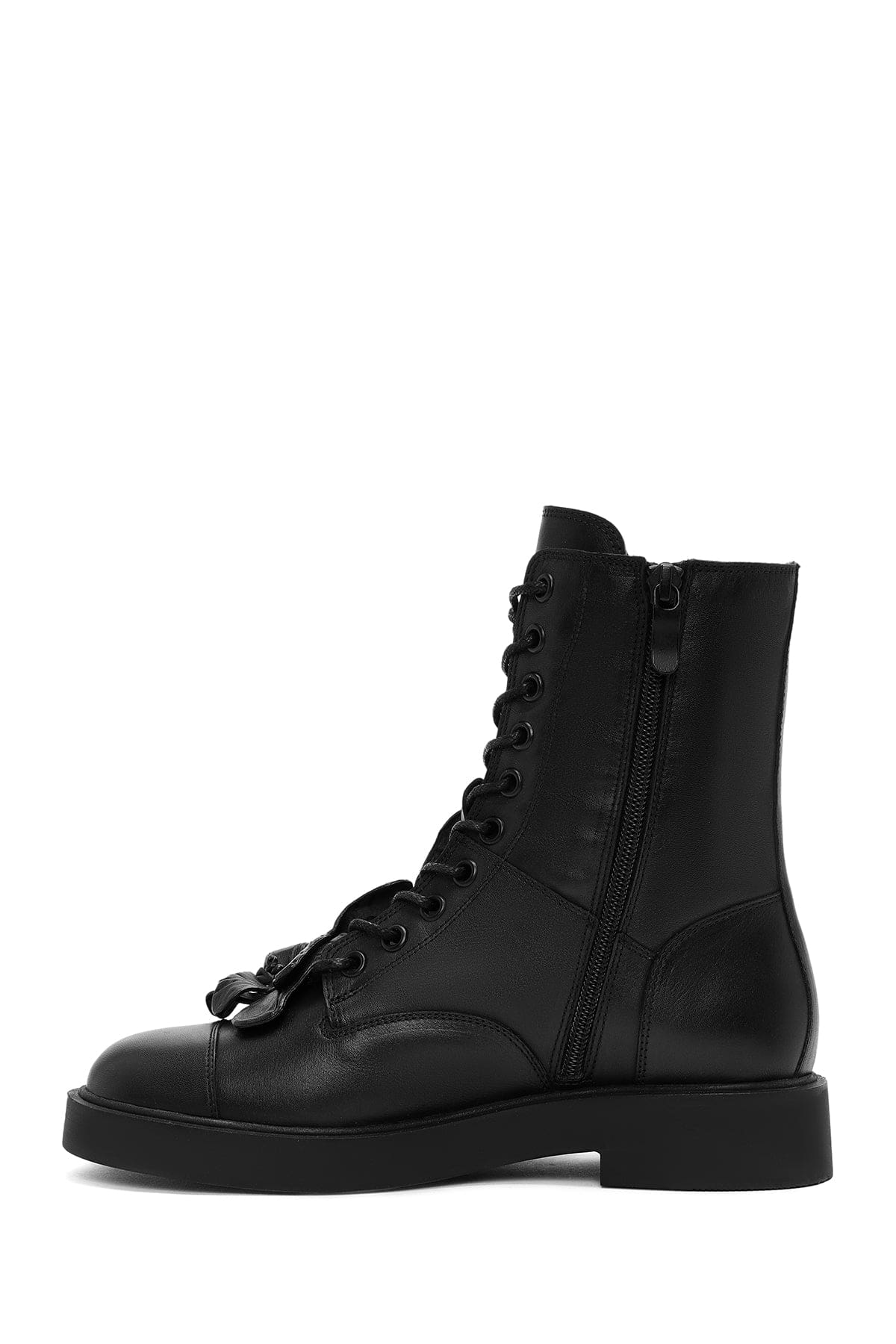 Kadın Siyah Bağcıklı Fermuar Detaylı Deri Postal Bot