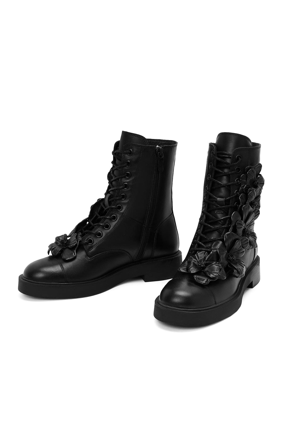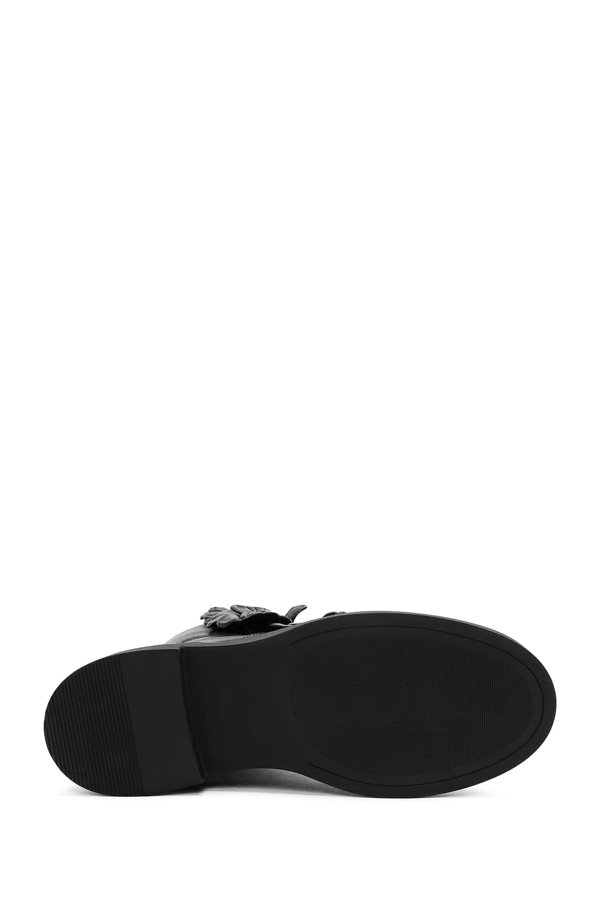 بوت زنانه مشکی چرمی بنددار زیپدار جزئیات دری مد