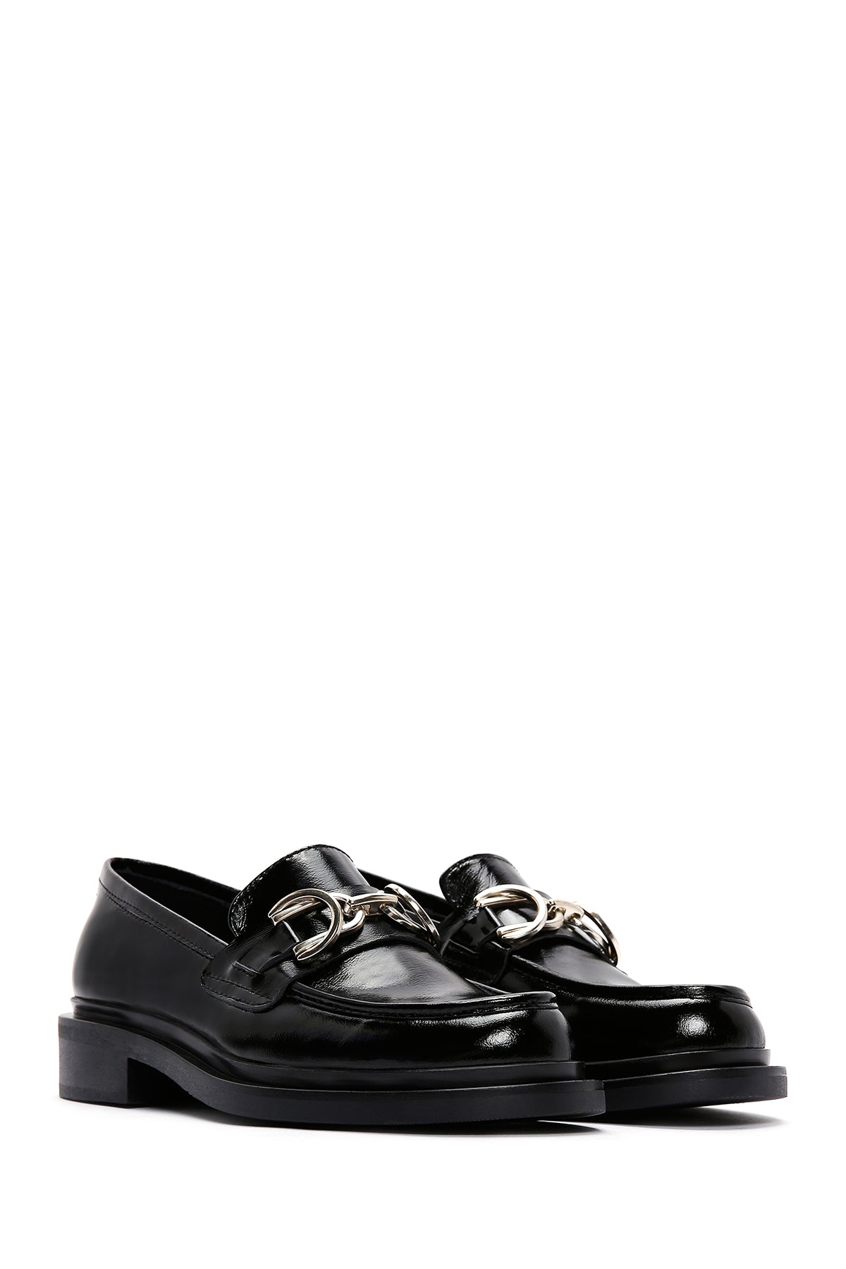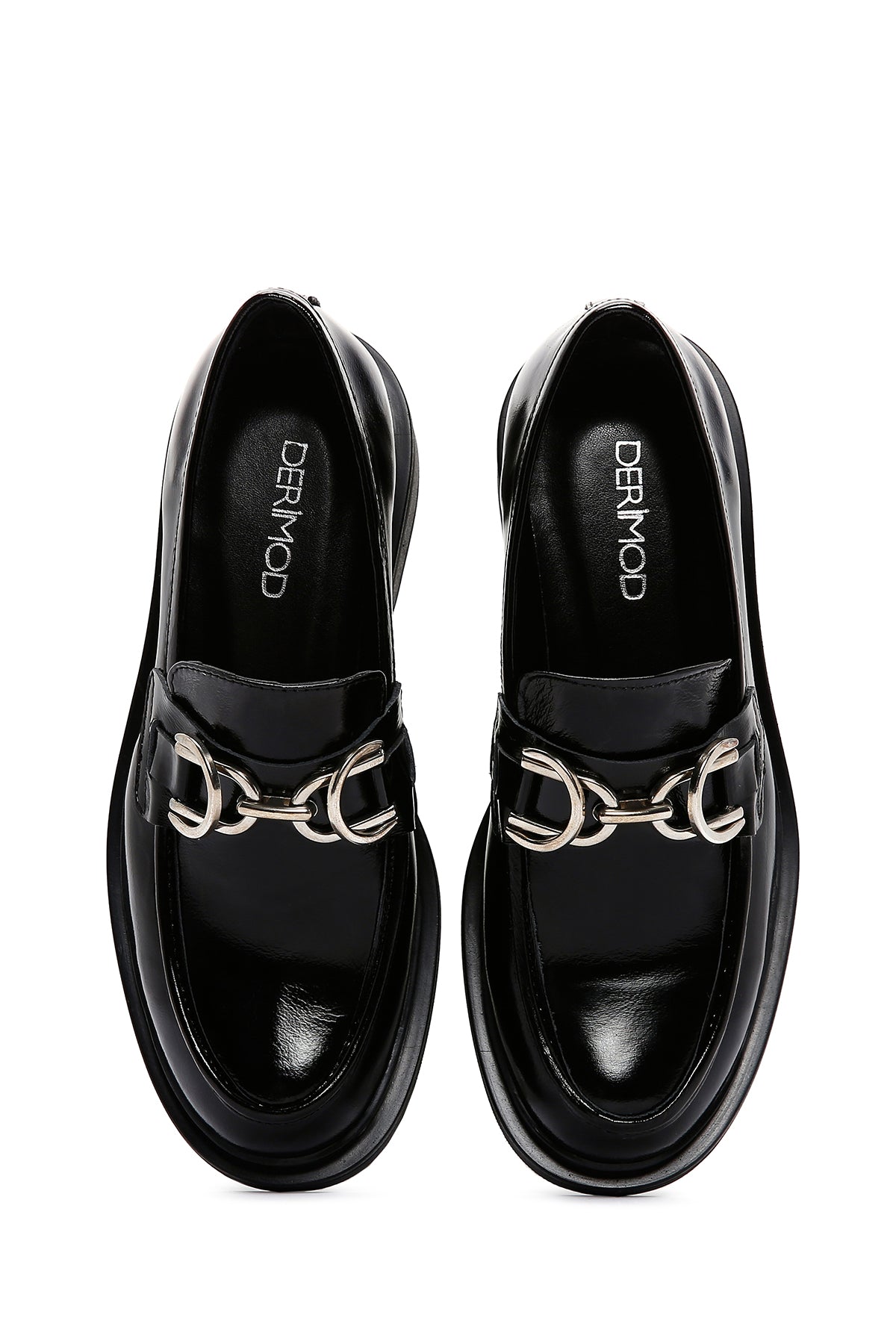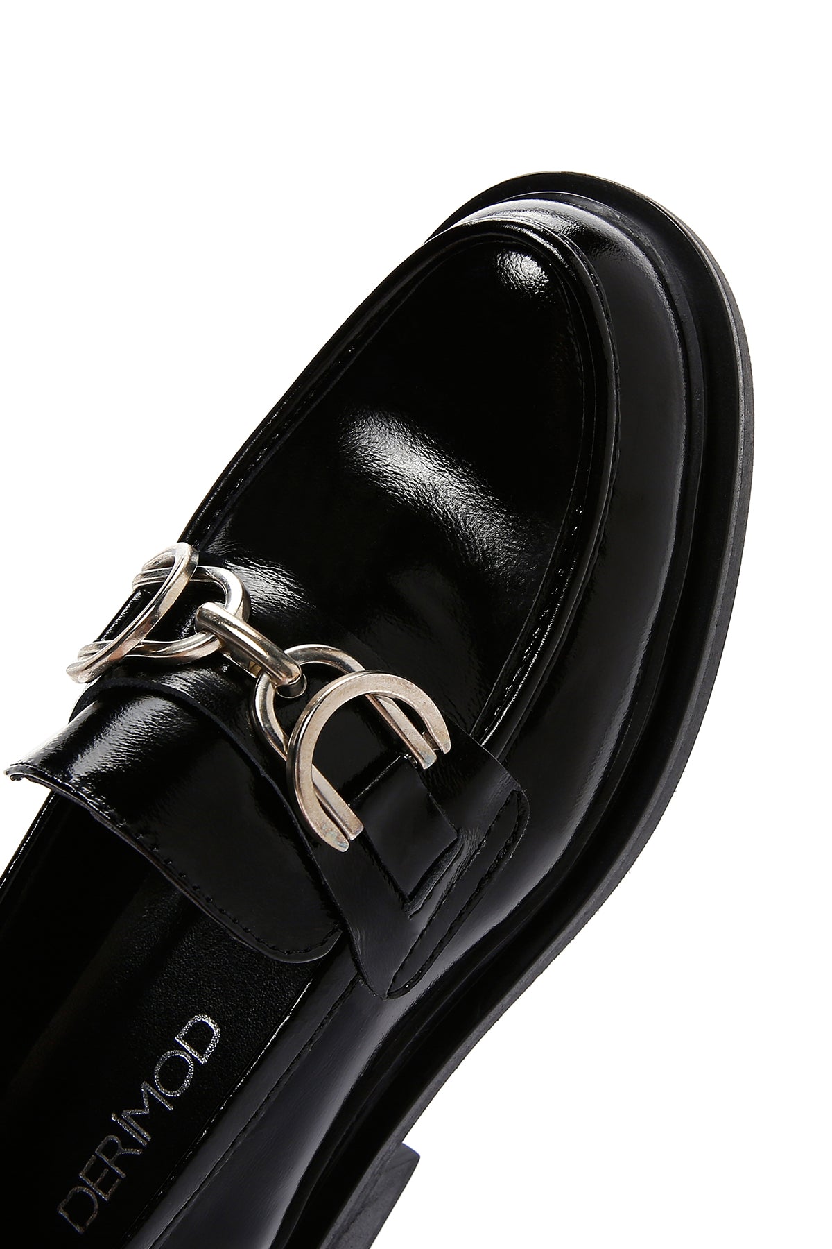 Kadın Siyah Zincir Detaylı Deri Maskülen Loafer