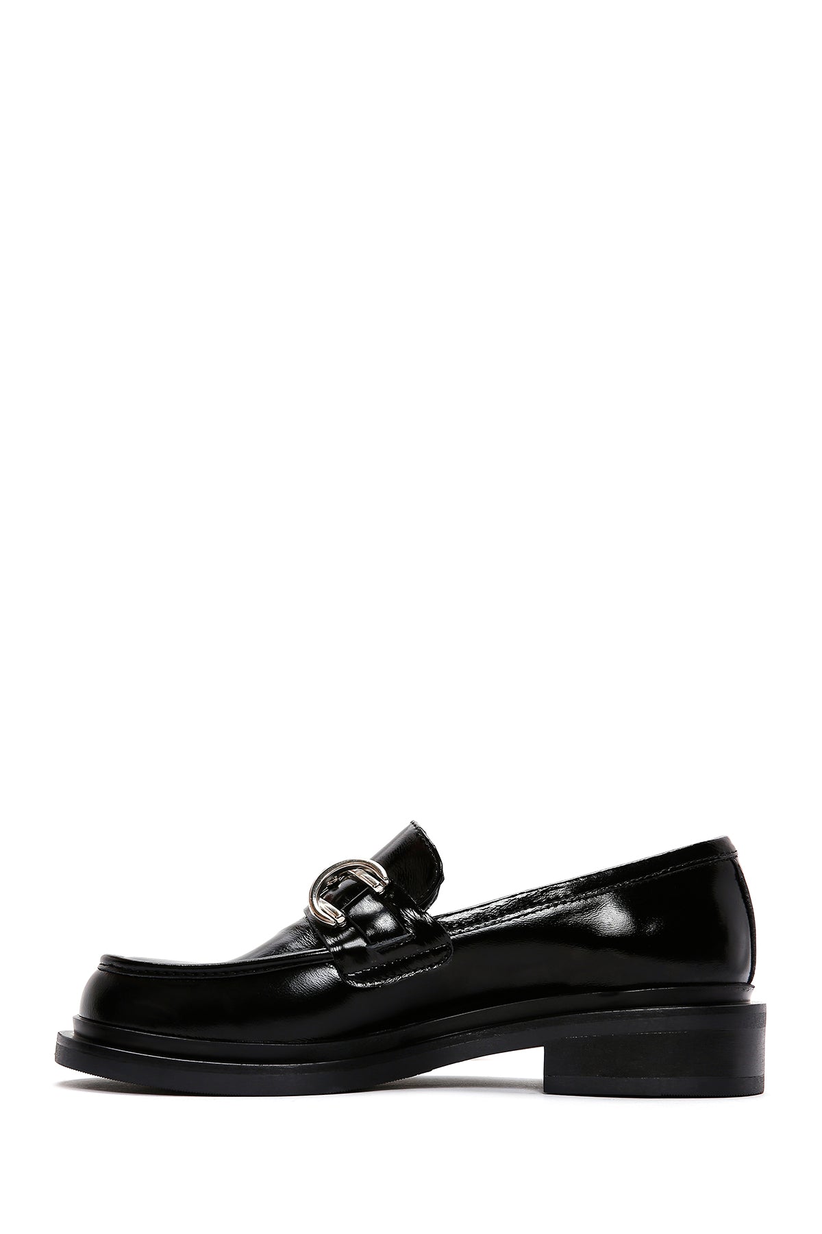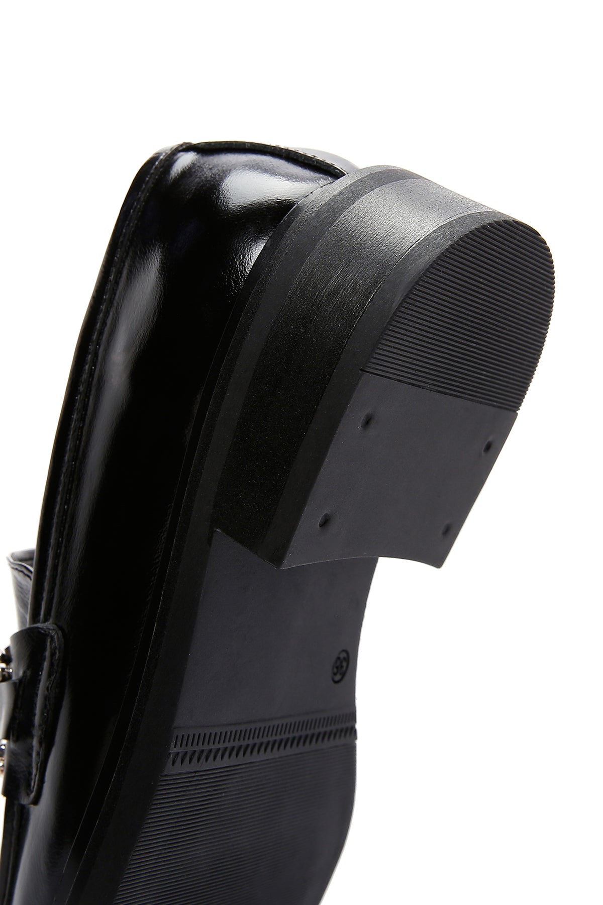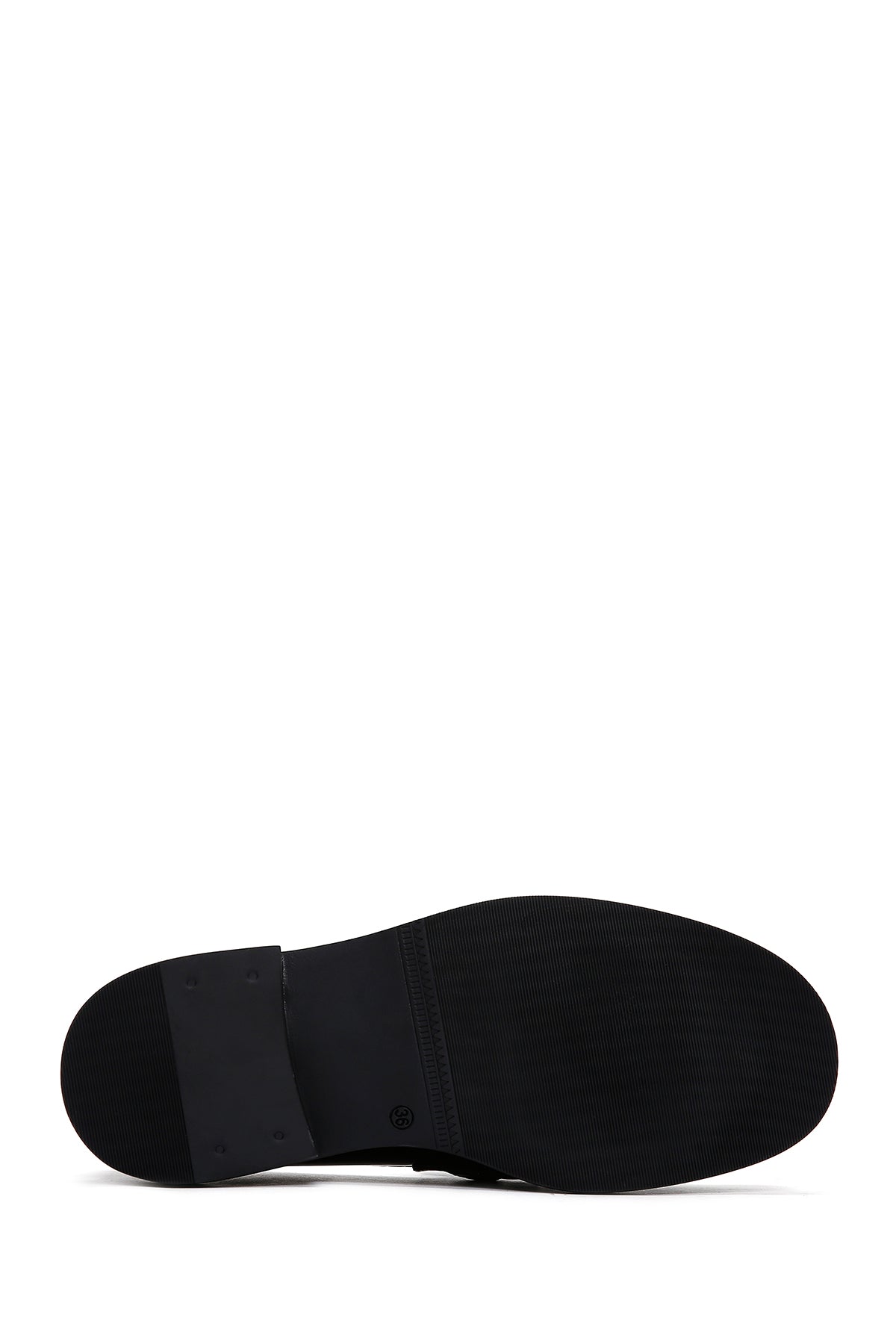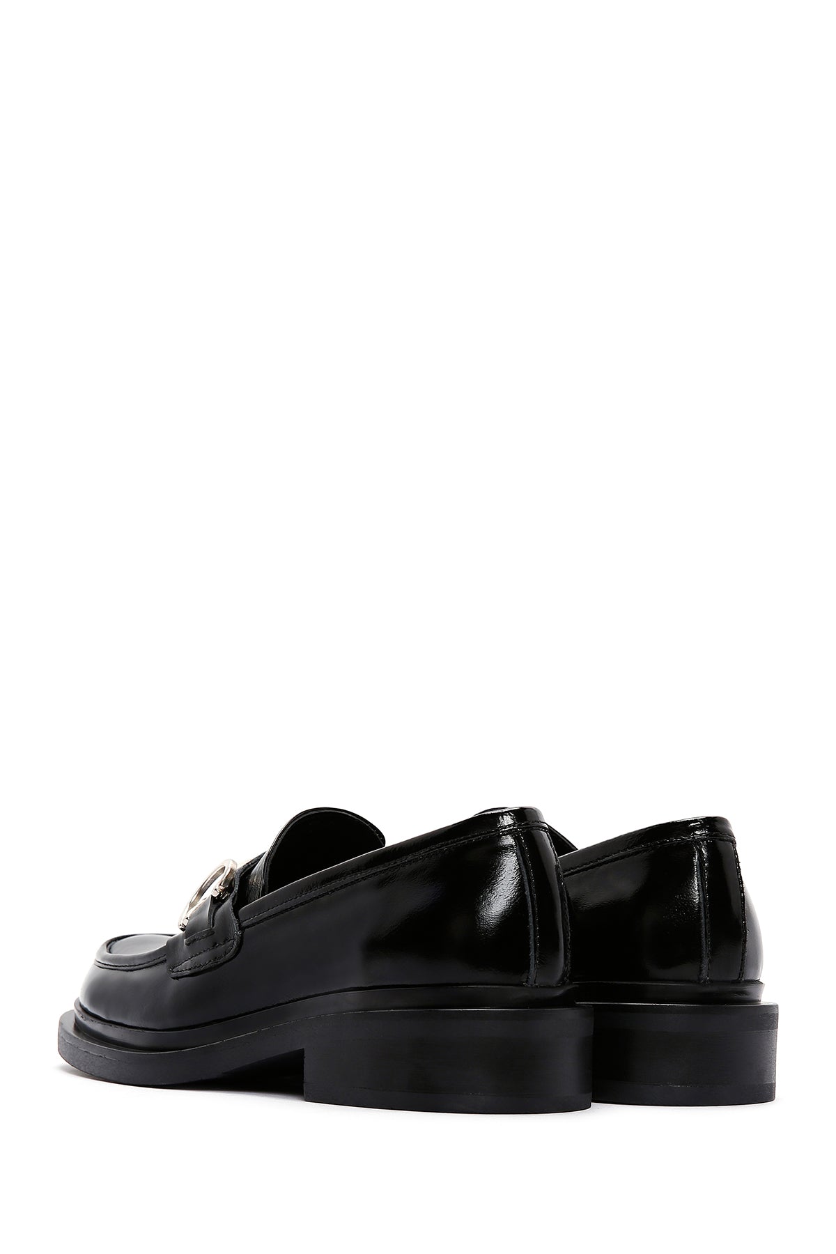 Kadın Siyah Zincir Detaylı Deri Maskülen Loafer