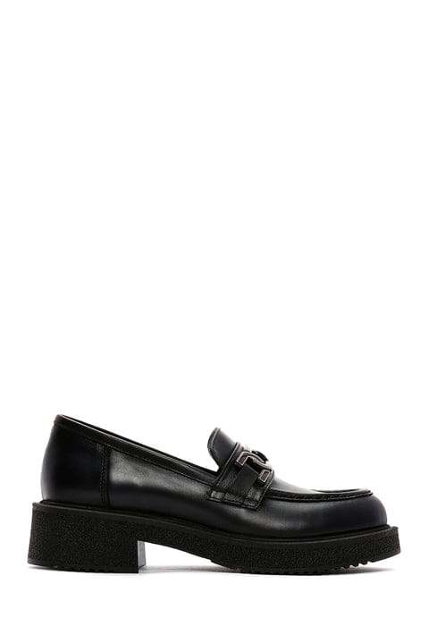 Kadın Siyah Zincir Detaylı Deri Maskülen Loafer