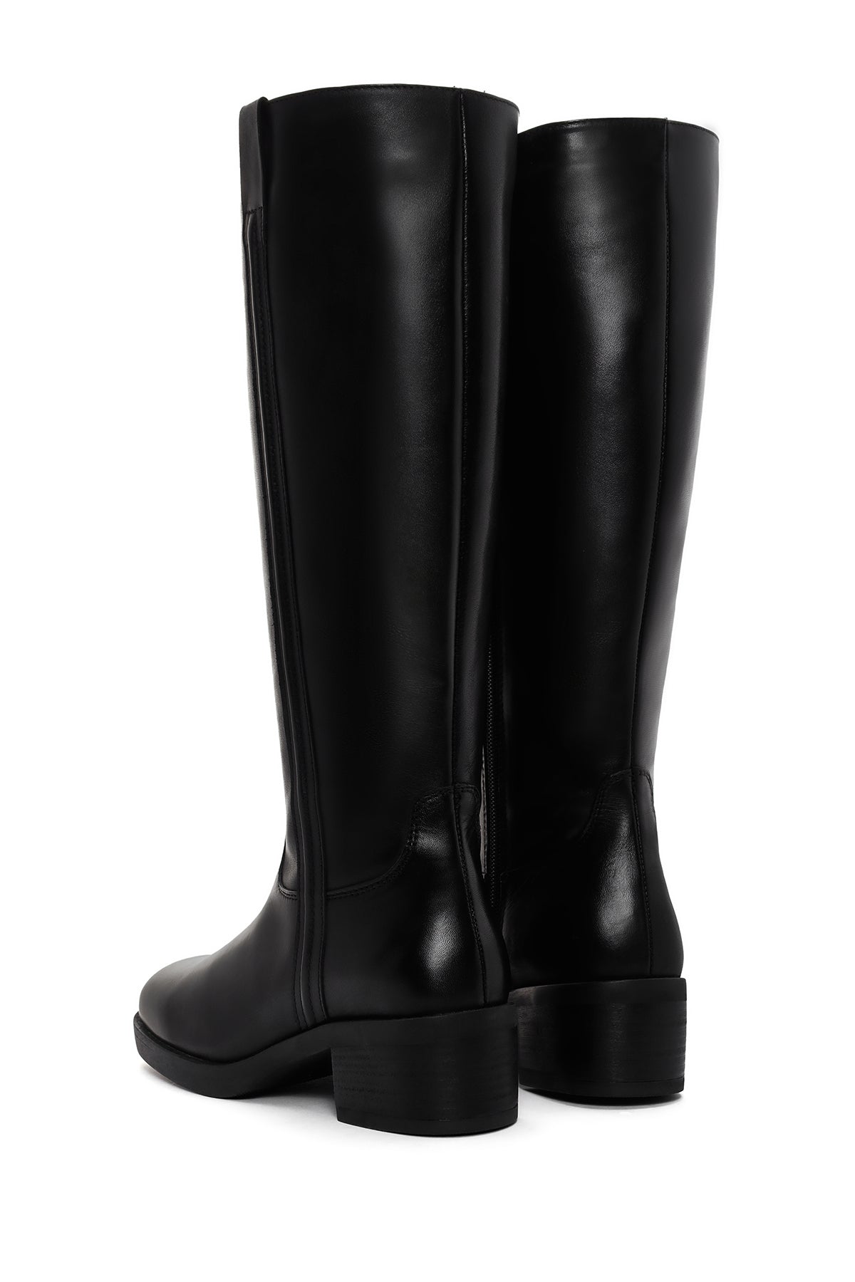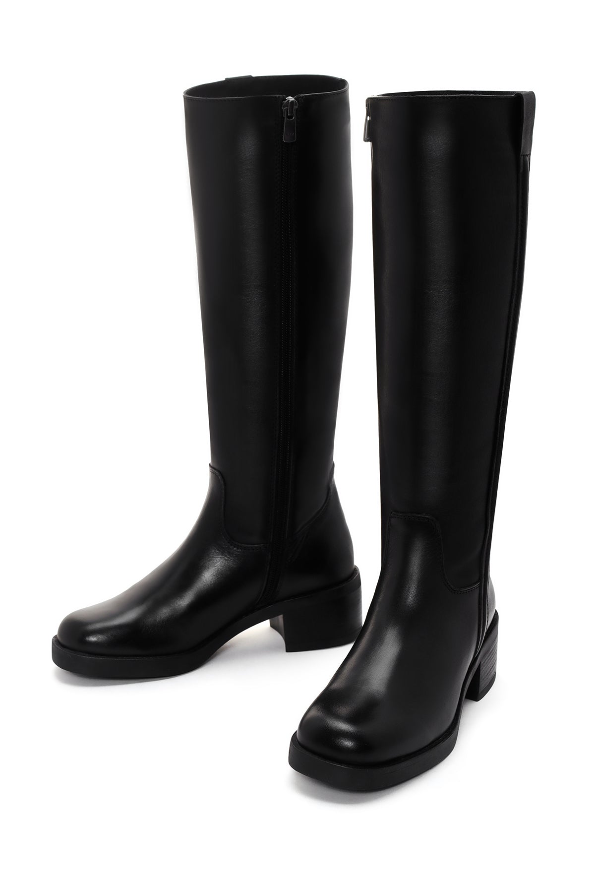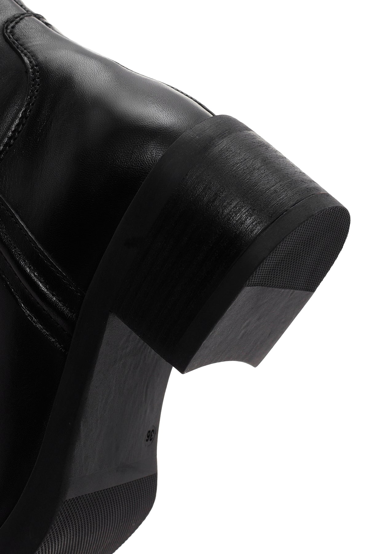 چکمه زنانه چرمی مشکی پاشنهکوتاه ضخیم زیپدار دری مد