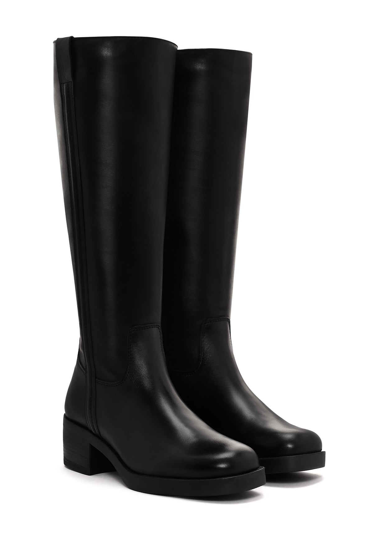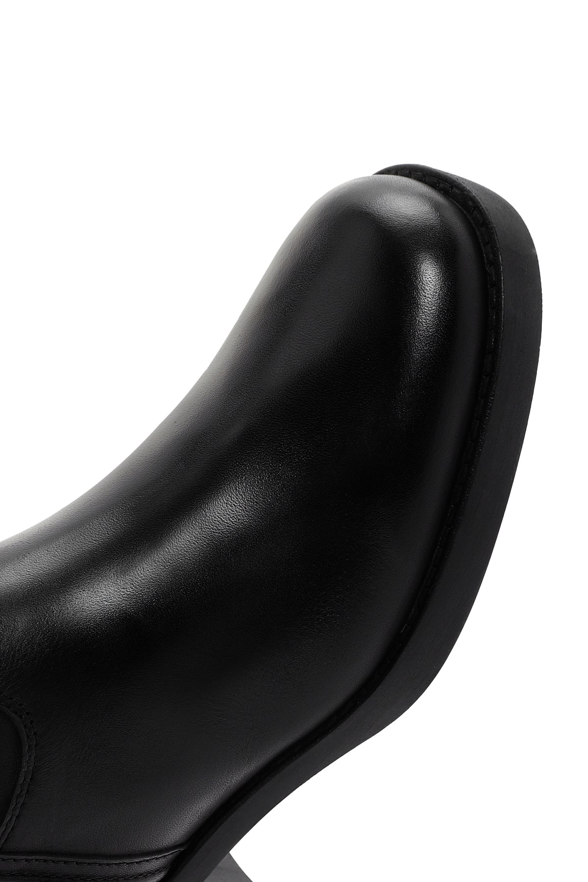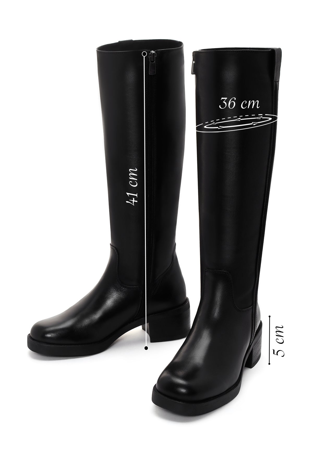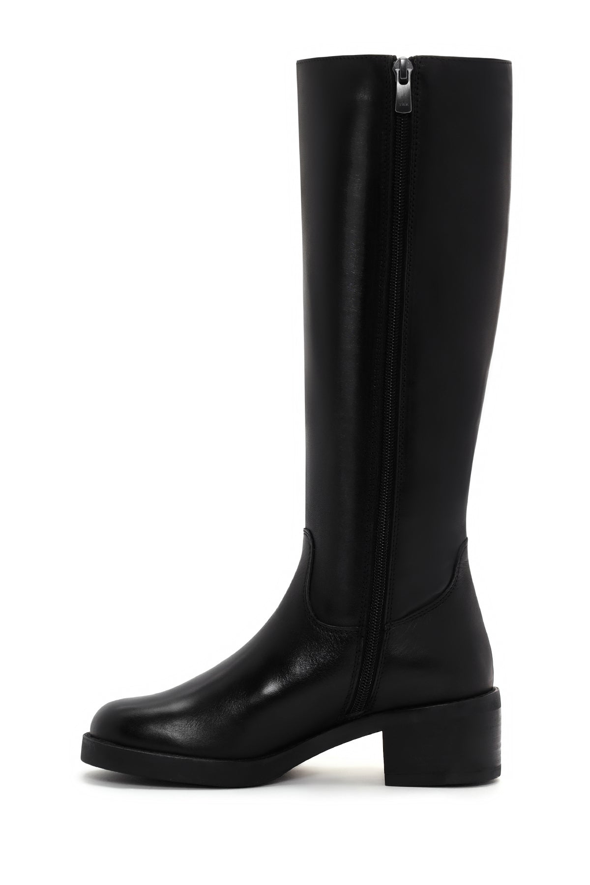 چکمه زنانه چرمی مشکی پاشنهکوتاه ضخیم زیپدار دری مد