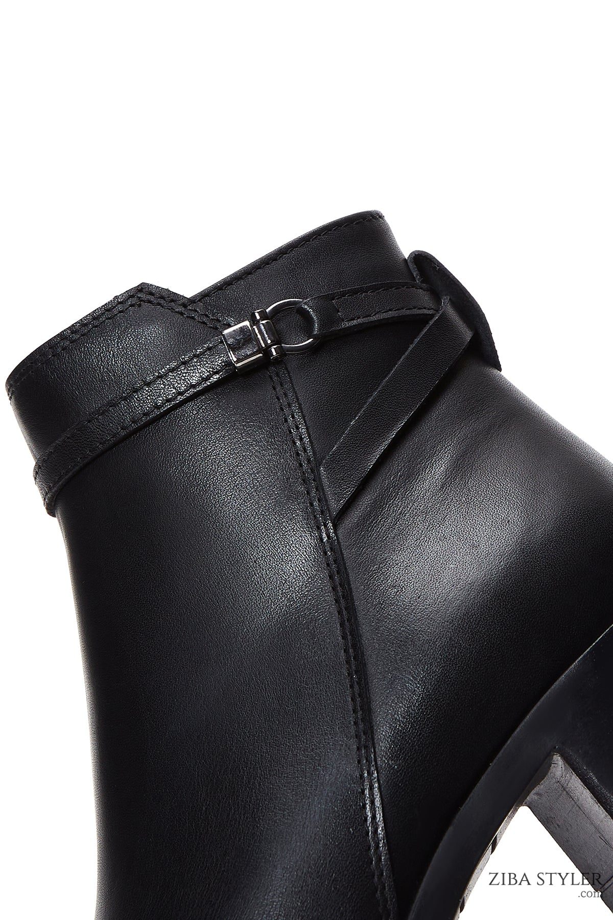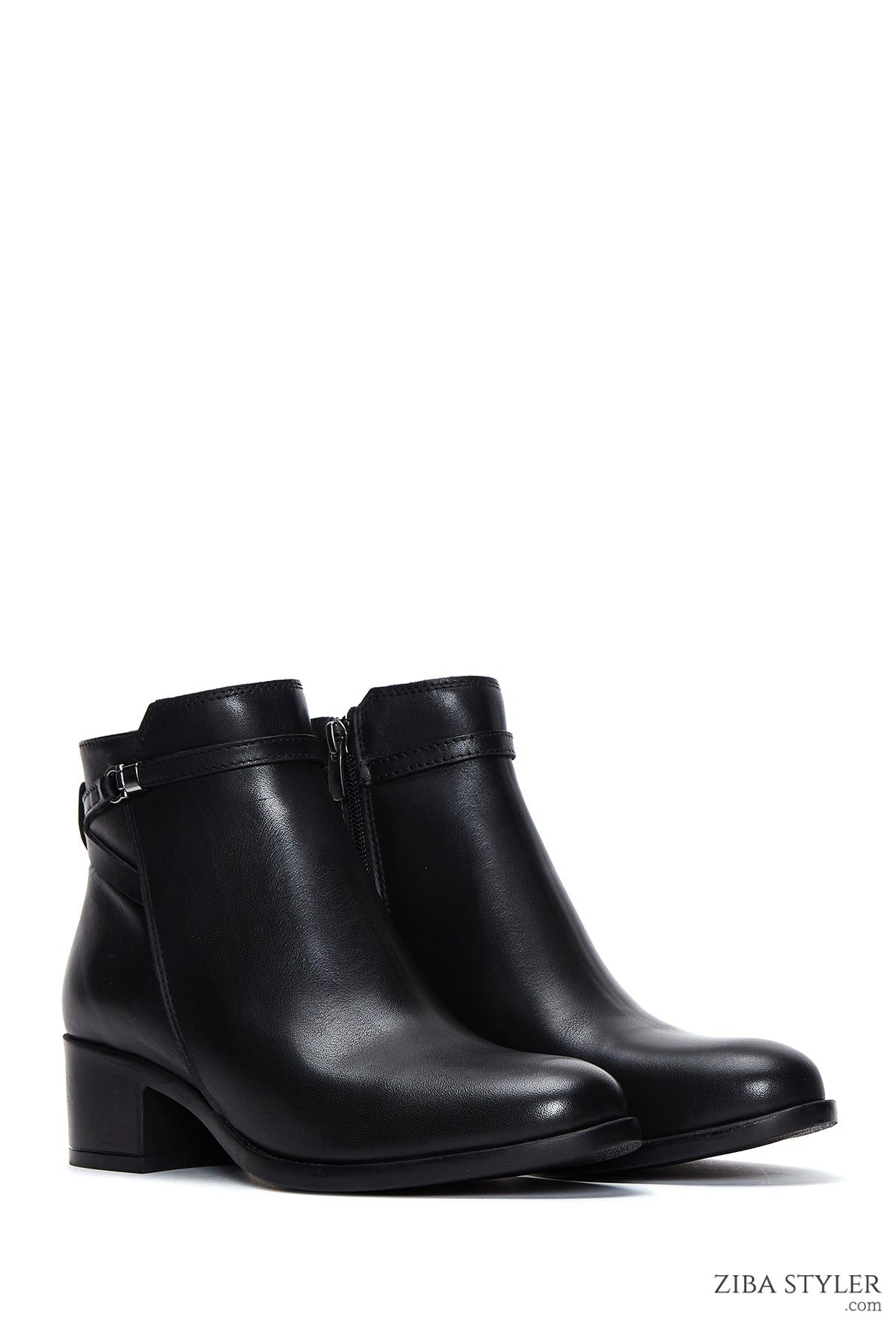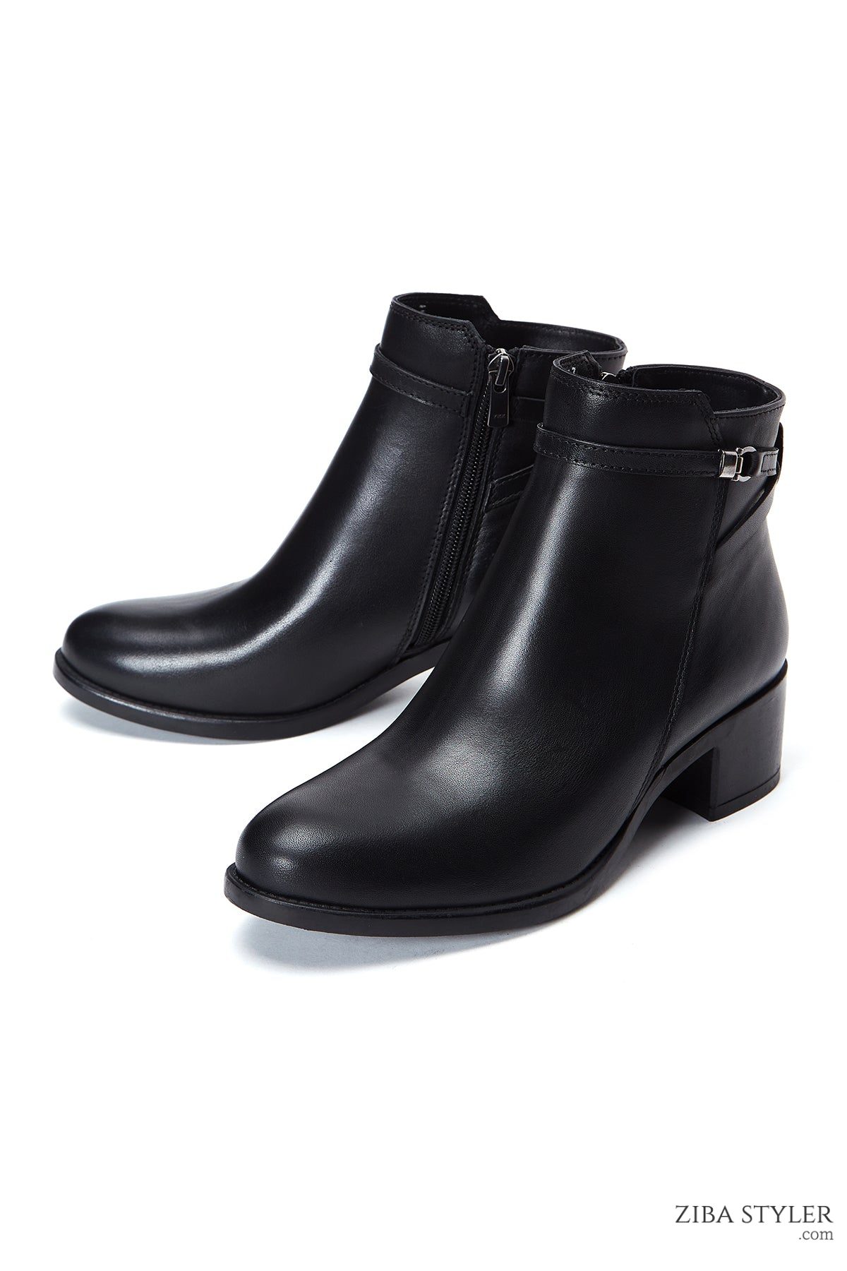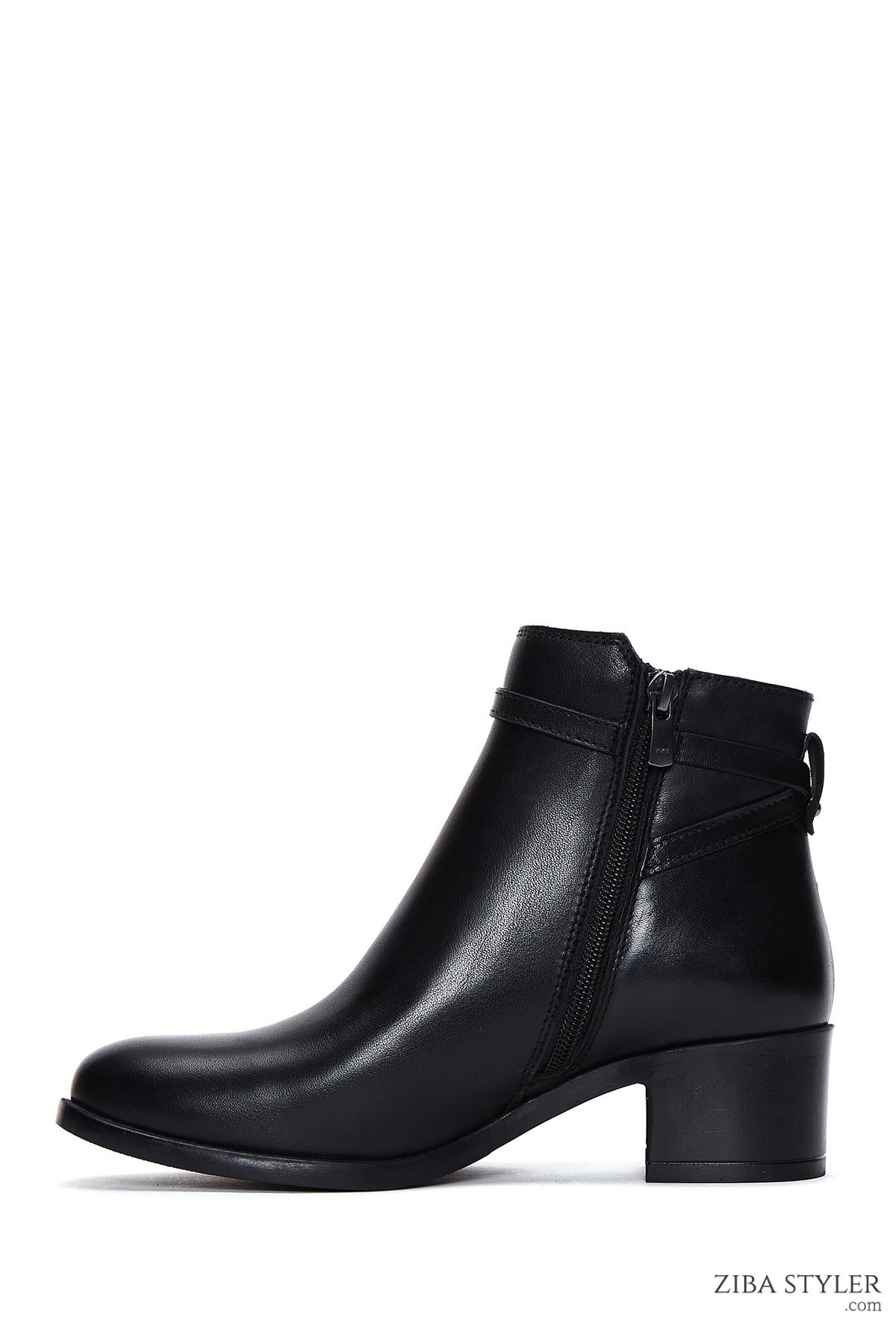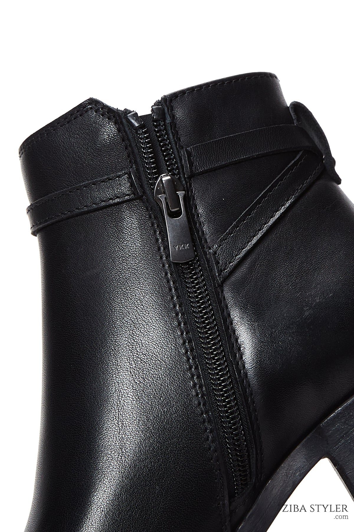 بوت زنانه مشکی چرمی زیپدار پاشنه کوتاه دری مد
