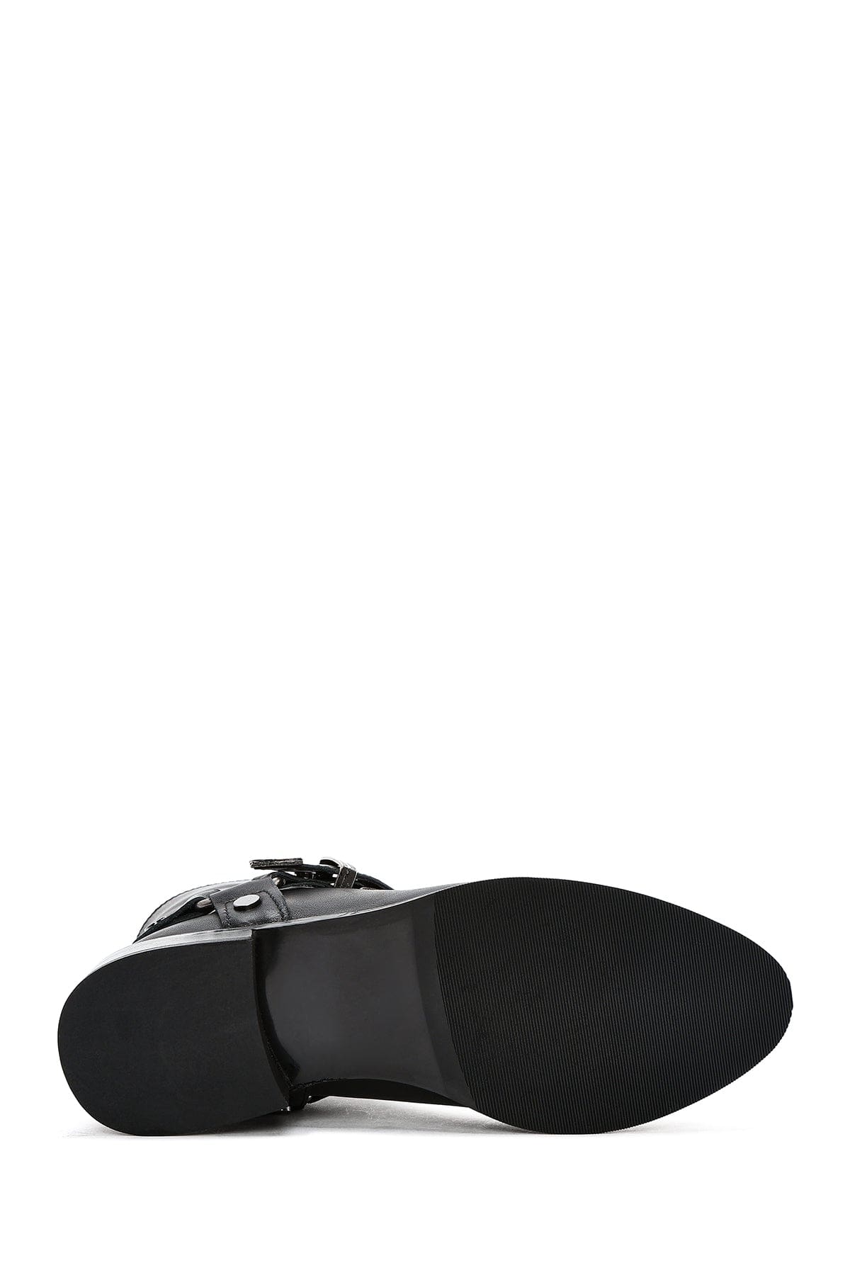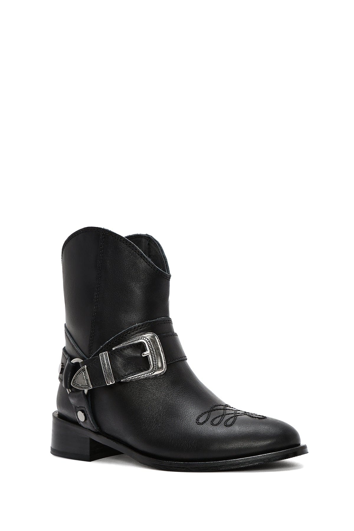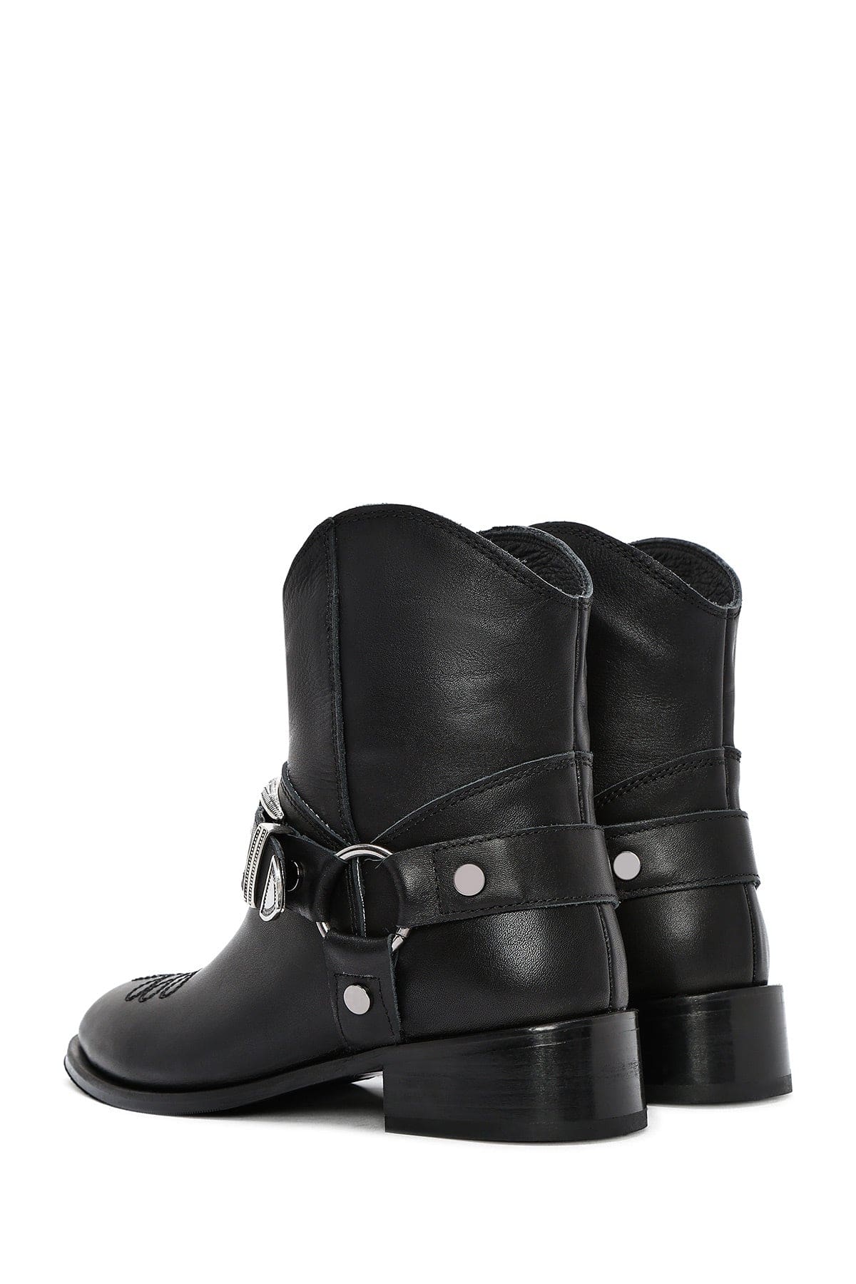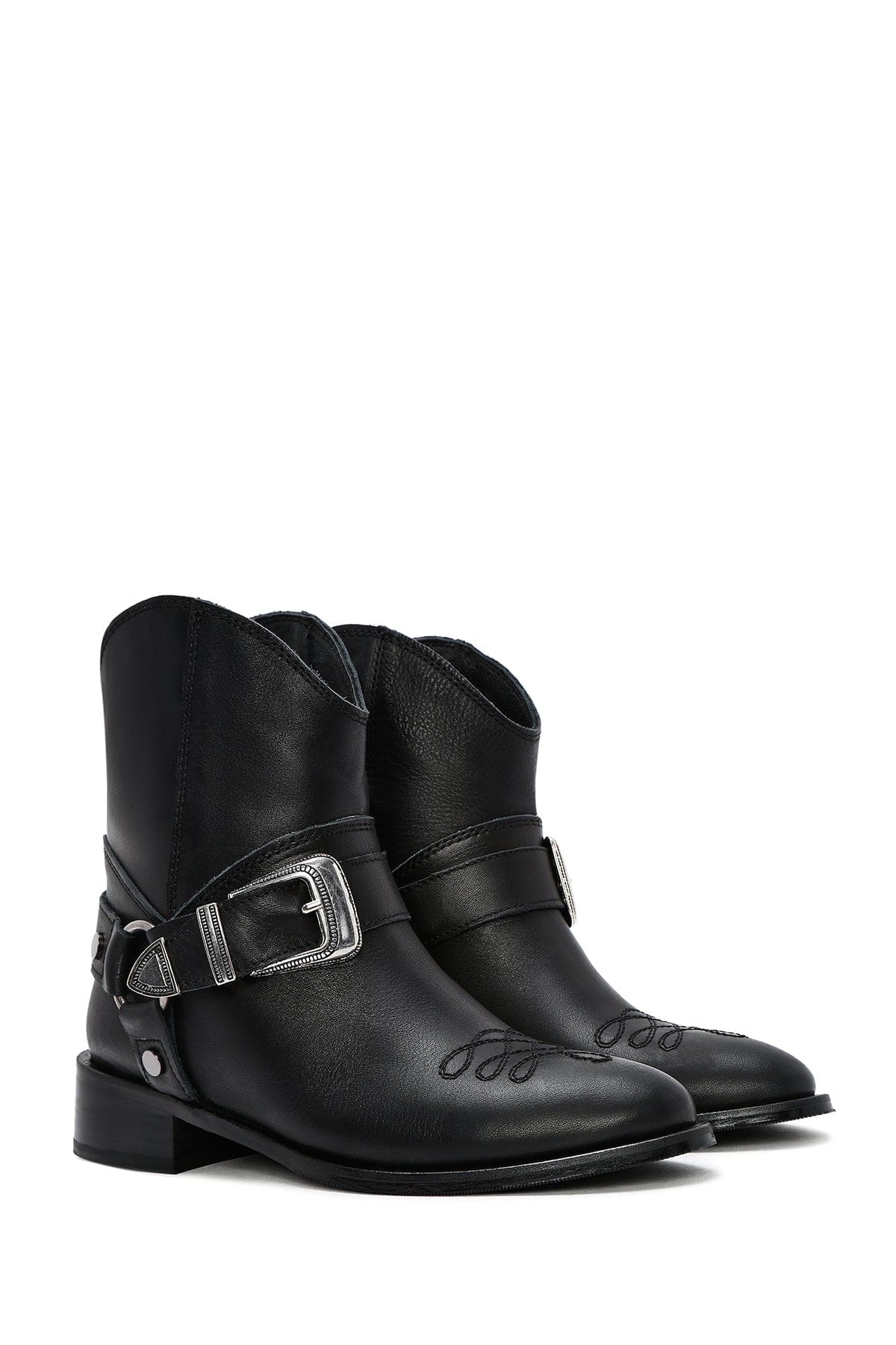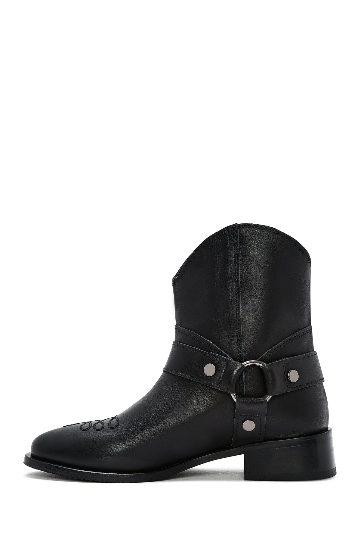 Kadın Siyah Metal Detaylı Deri Kovboy Bot