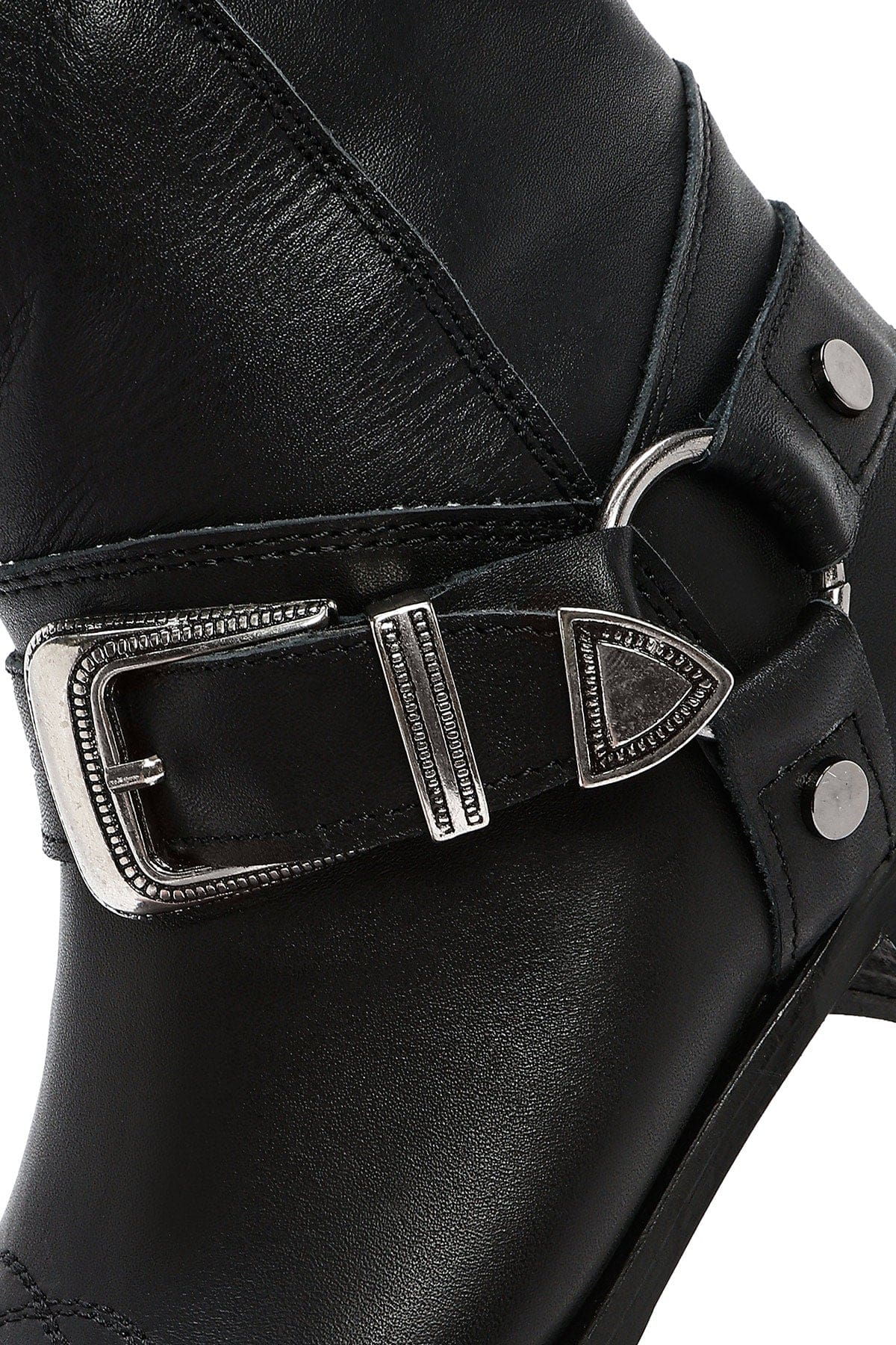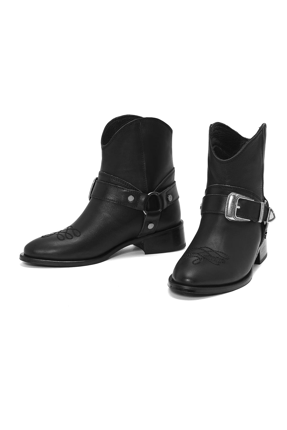 بوت زنانه مشکی چرمی کابوی با جزئیات فلزی دری مد