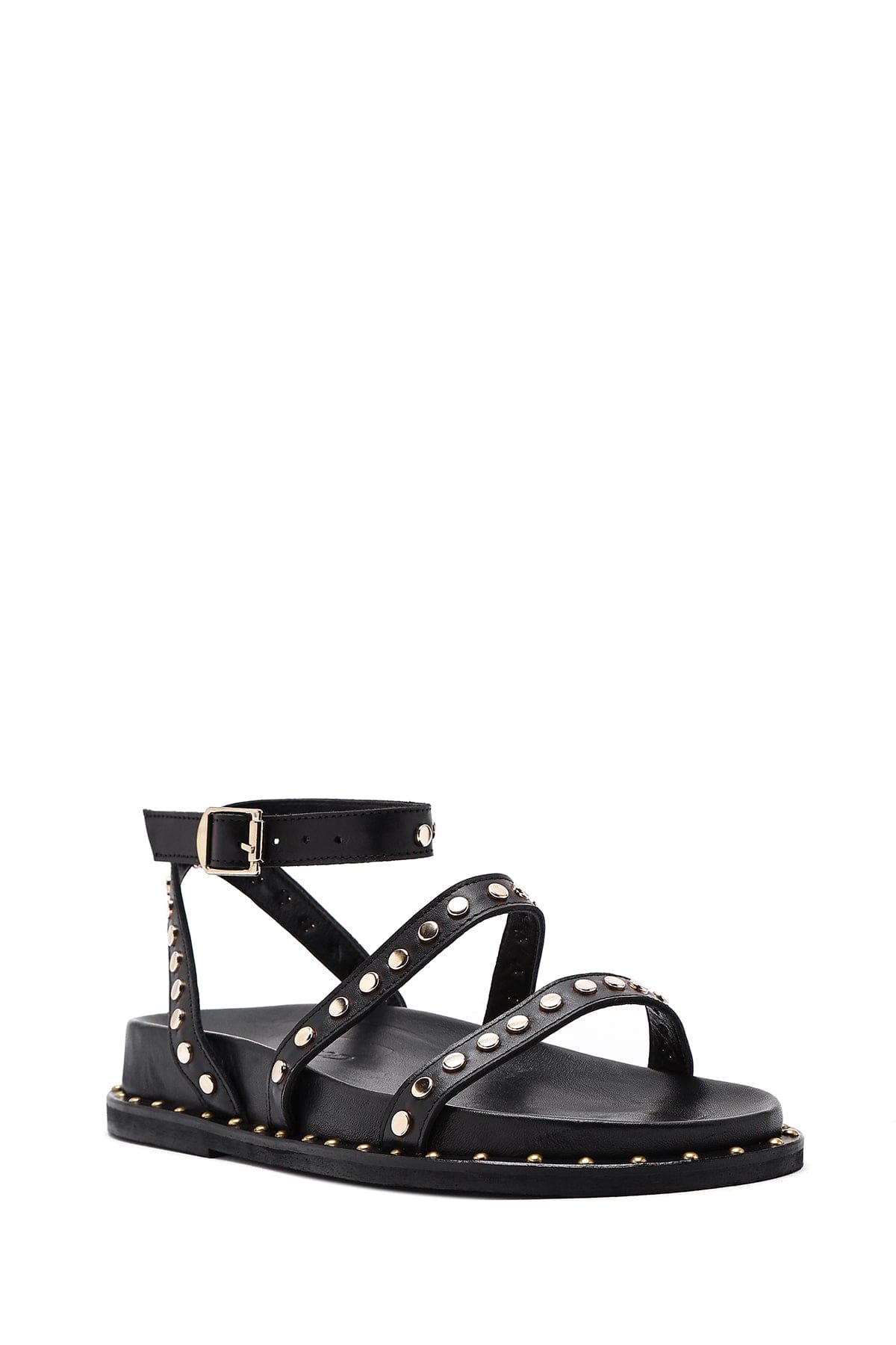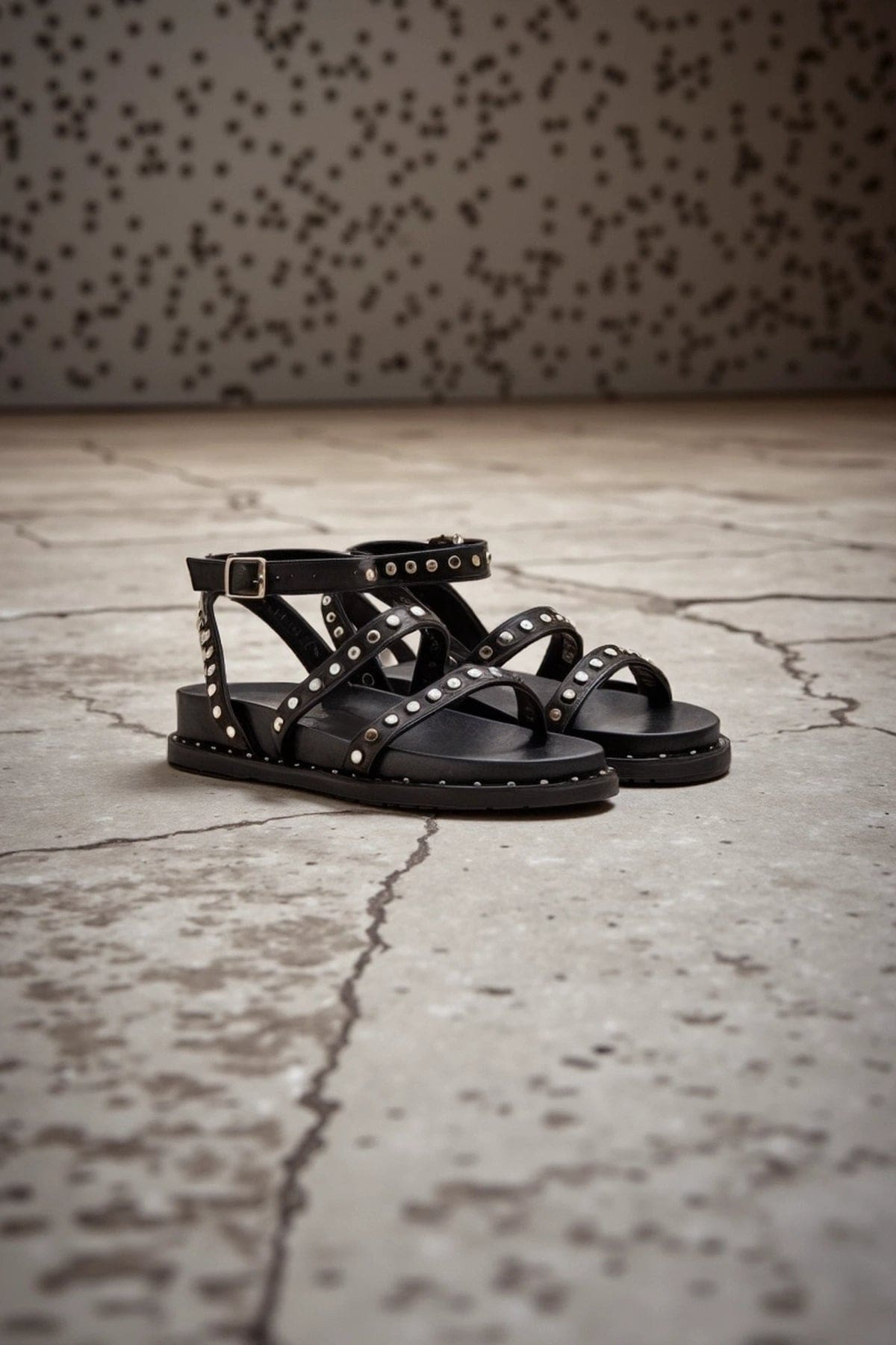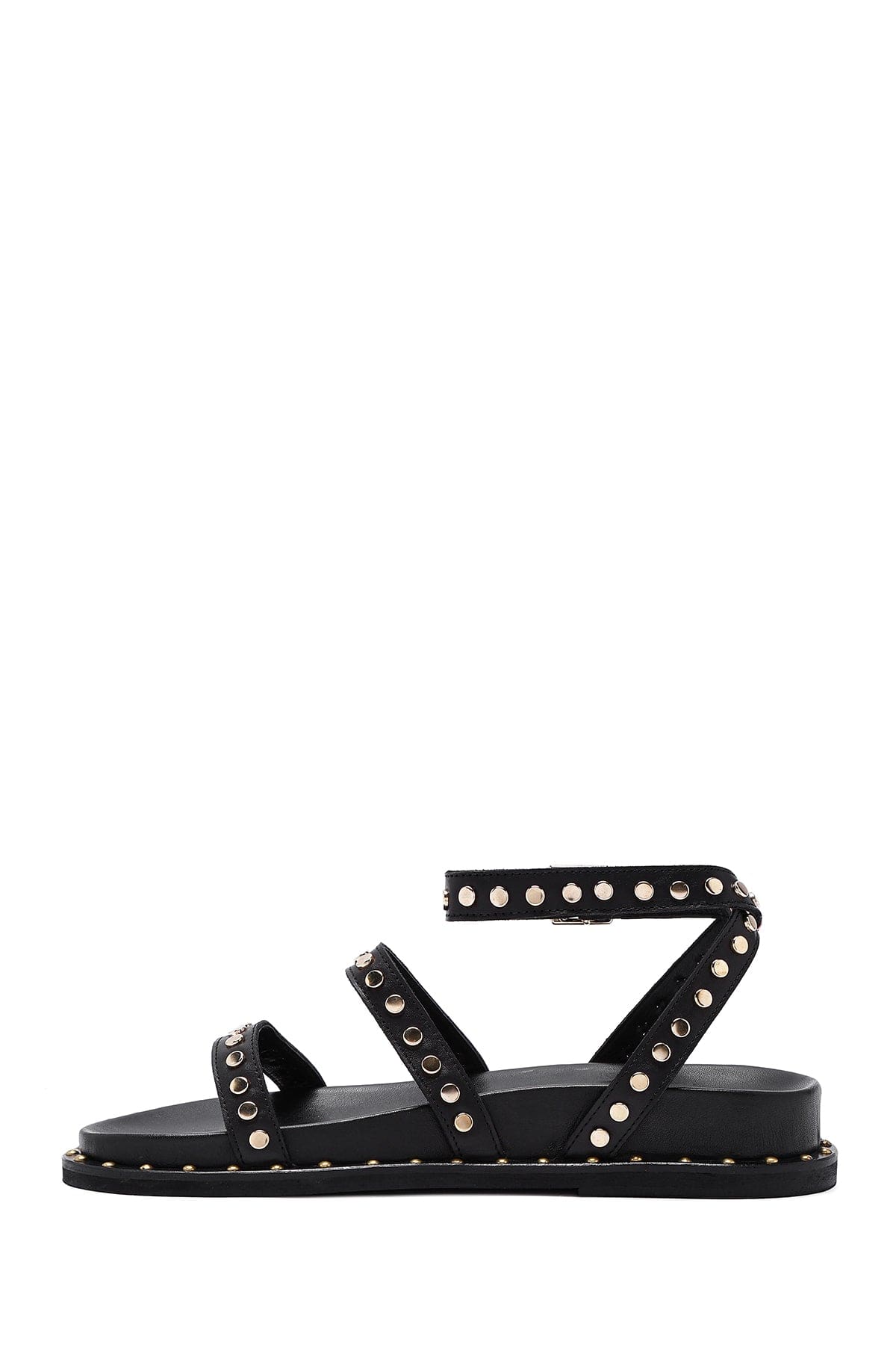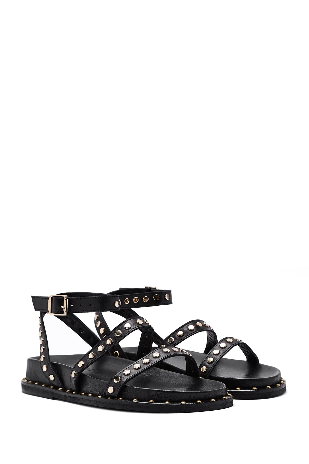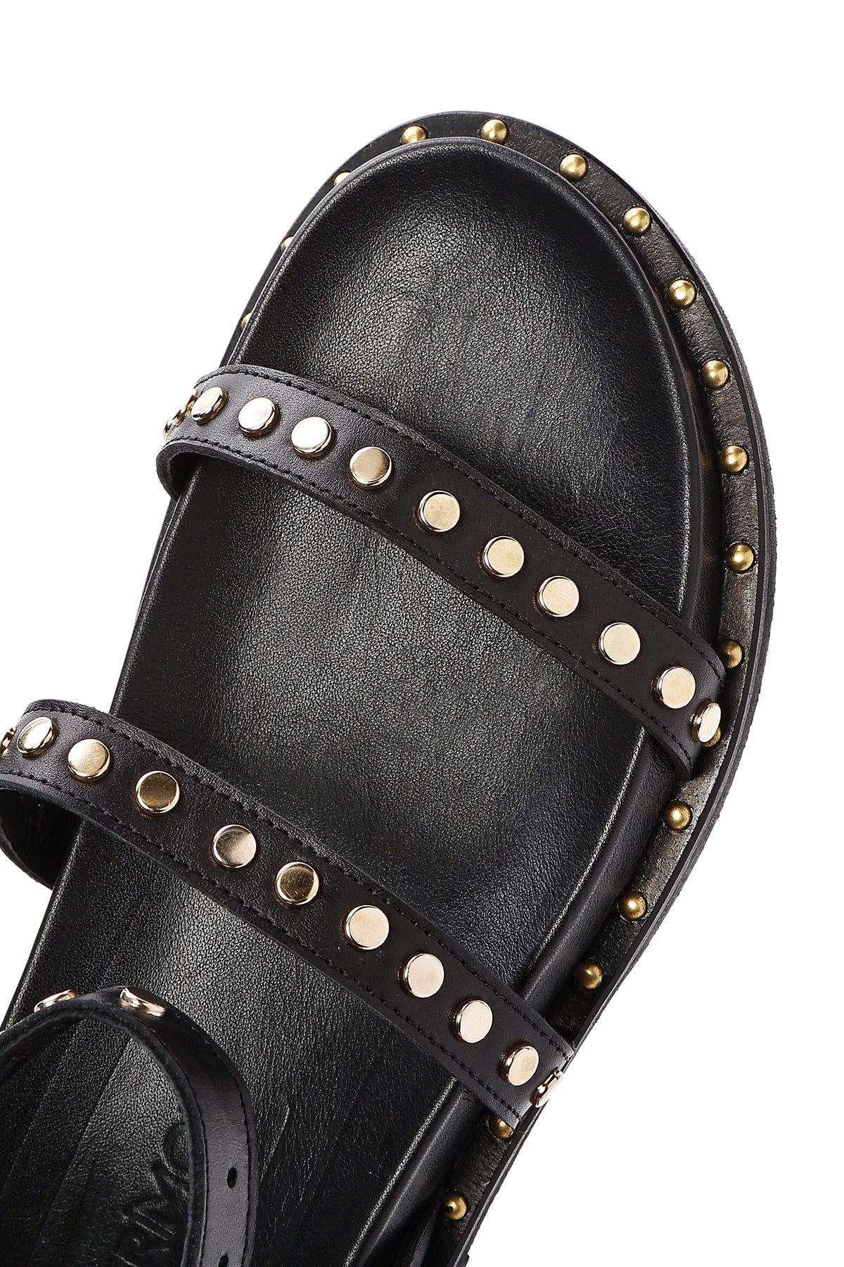 Kadın Siyah Bilekten Bağlamalı Metal Detaylı Deri Sandalet